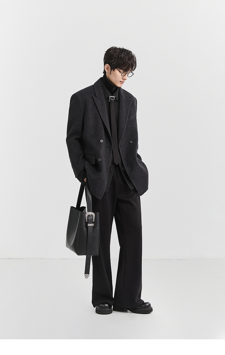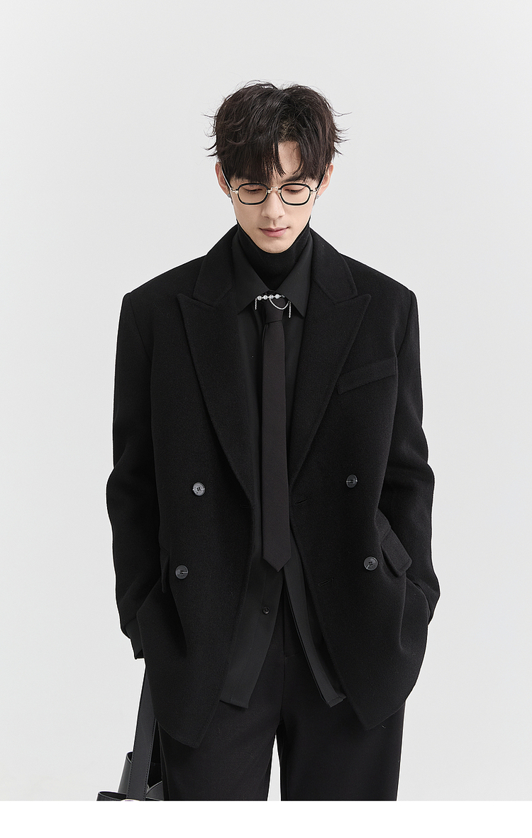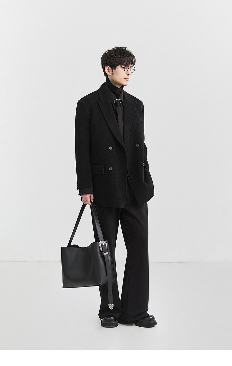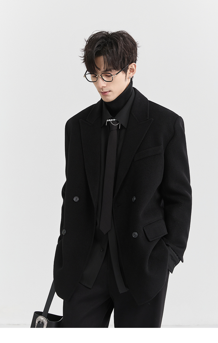 High-End Custom-Woven 100% Wool Bjze25 Winter Double-Sided Woolen Suit for Men with Shoulder Pads and Thickened Woolen Coat