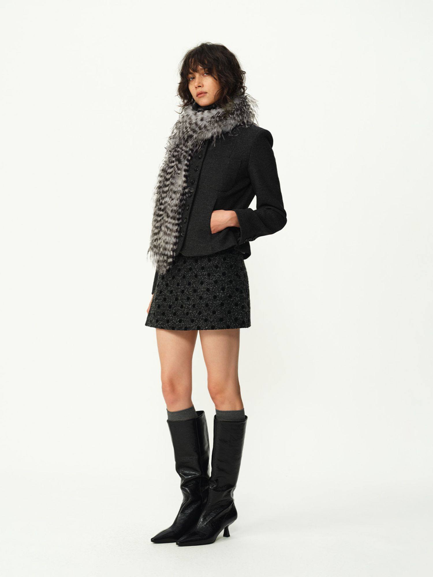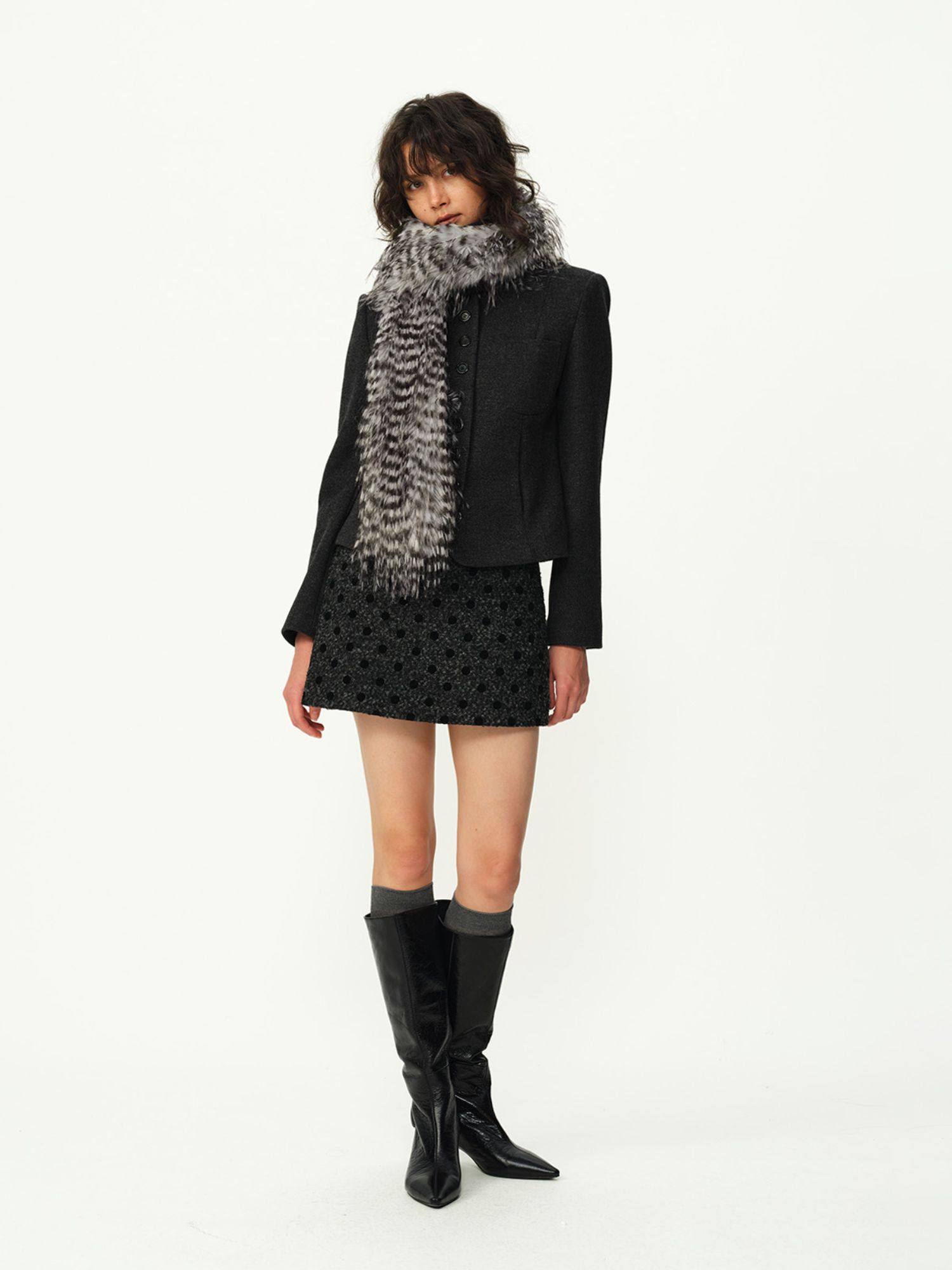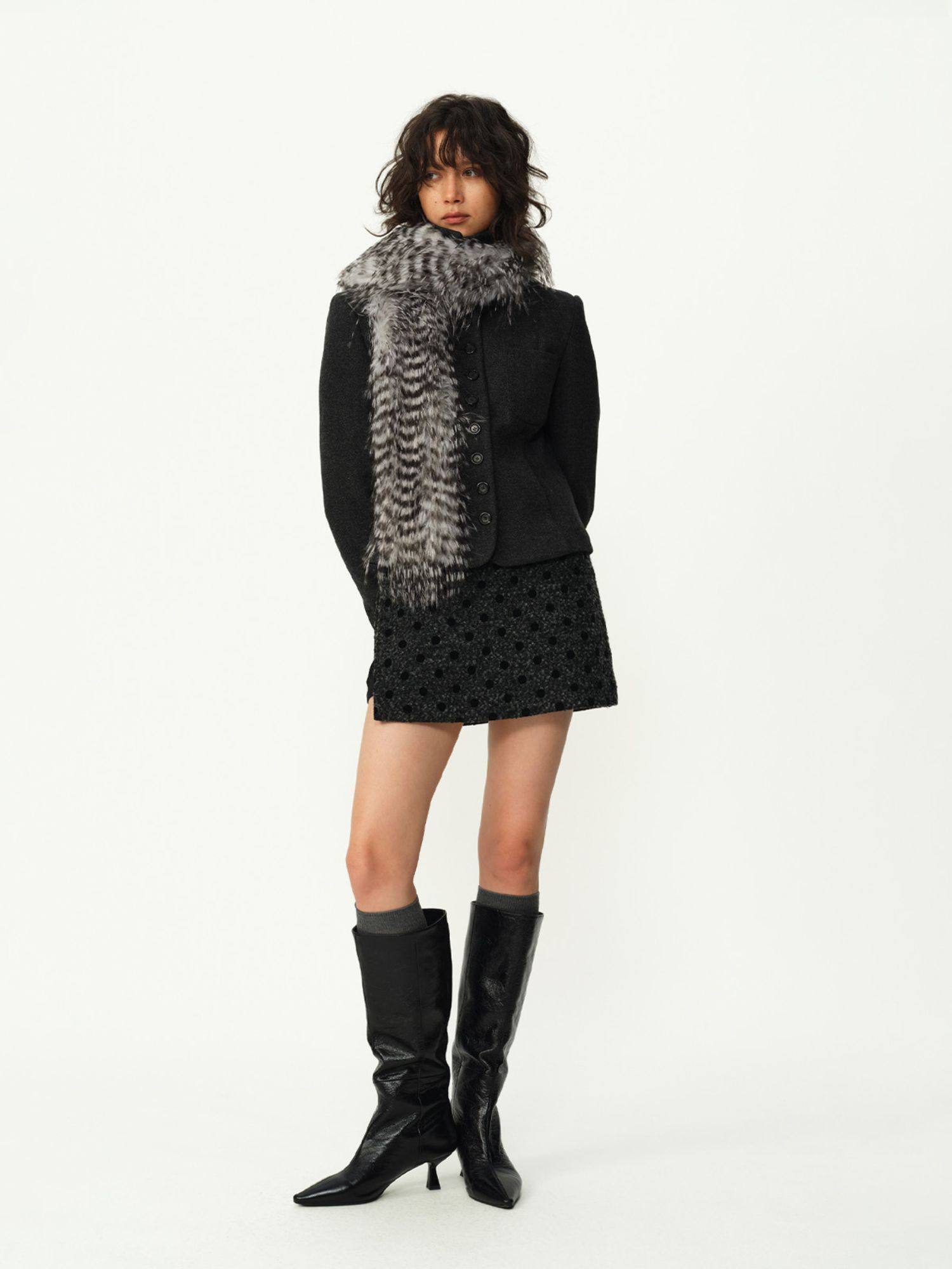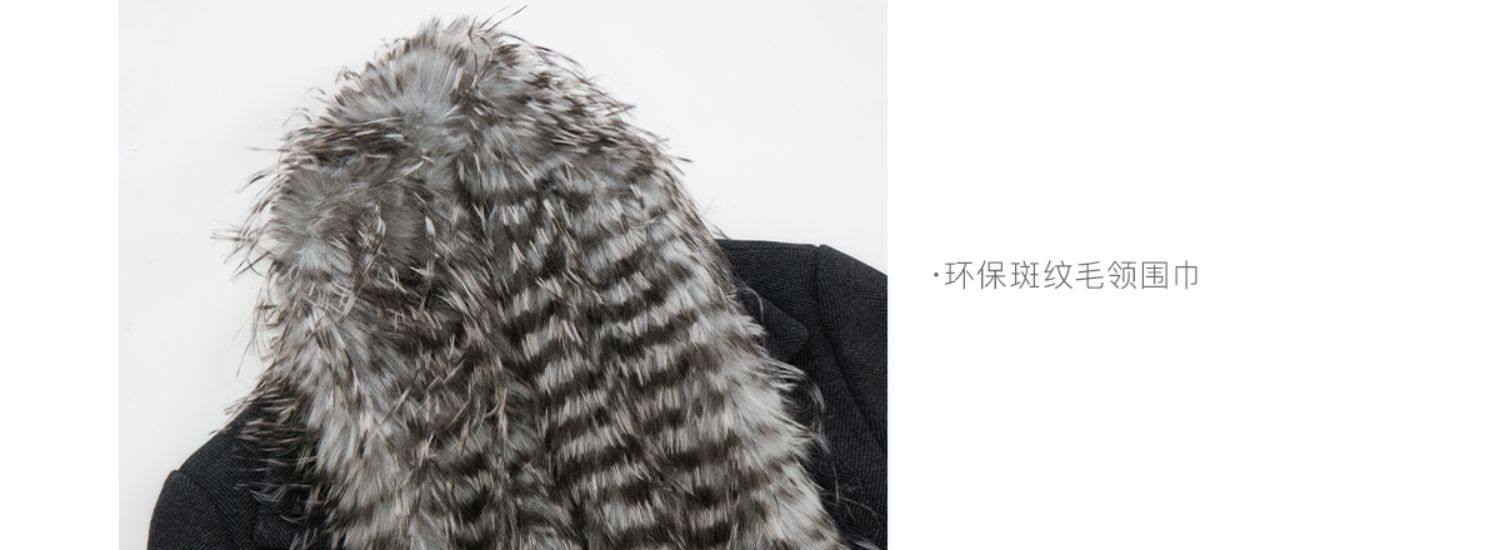 Evistub Retro Wool Herringbone Pattern Detachable Fur Collar Casual Fit Regular Shoulder Short Woolen Coat for Autumn and Winter