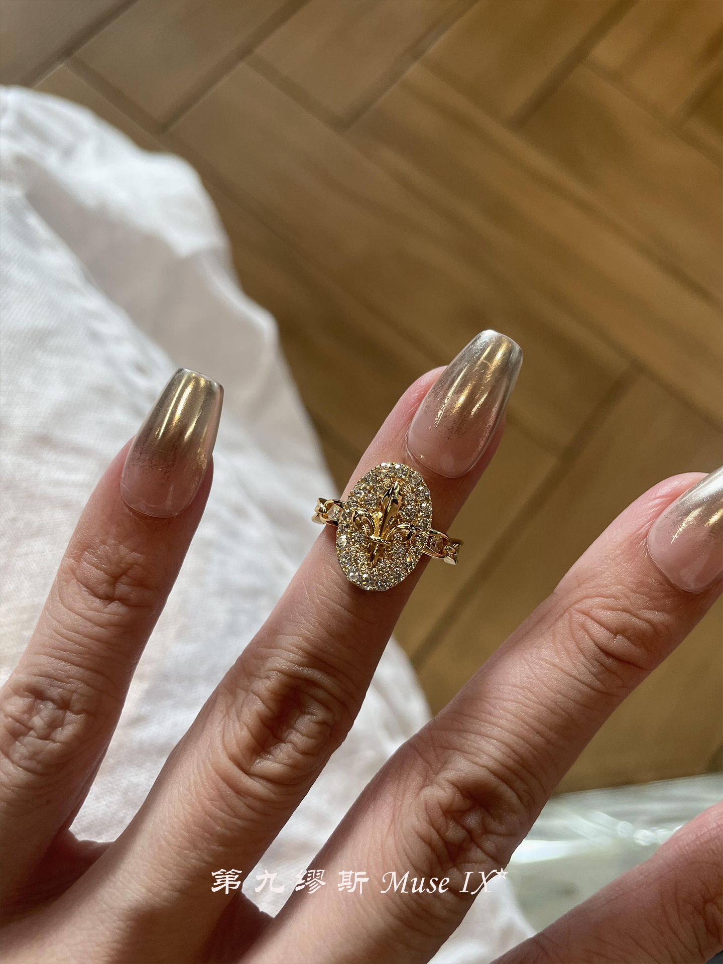 【Ninth Muse】Old Money Style! Vintage Full Diamond Iris Flower Ring for Women, Light Luxury, High-End Feel, Stackable Index Finger Ring