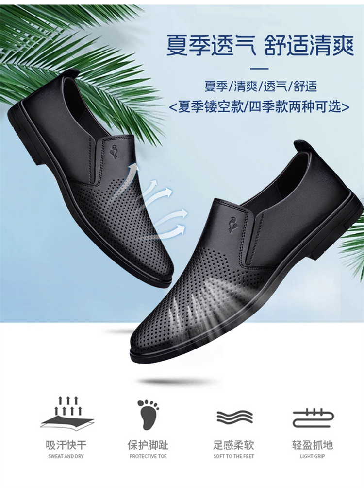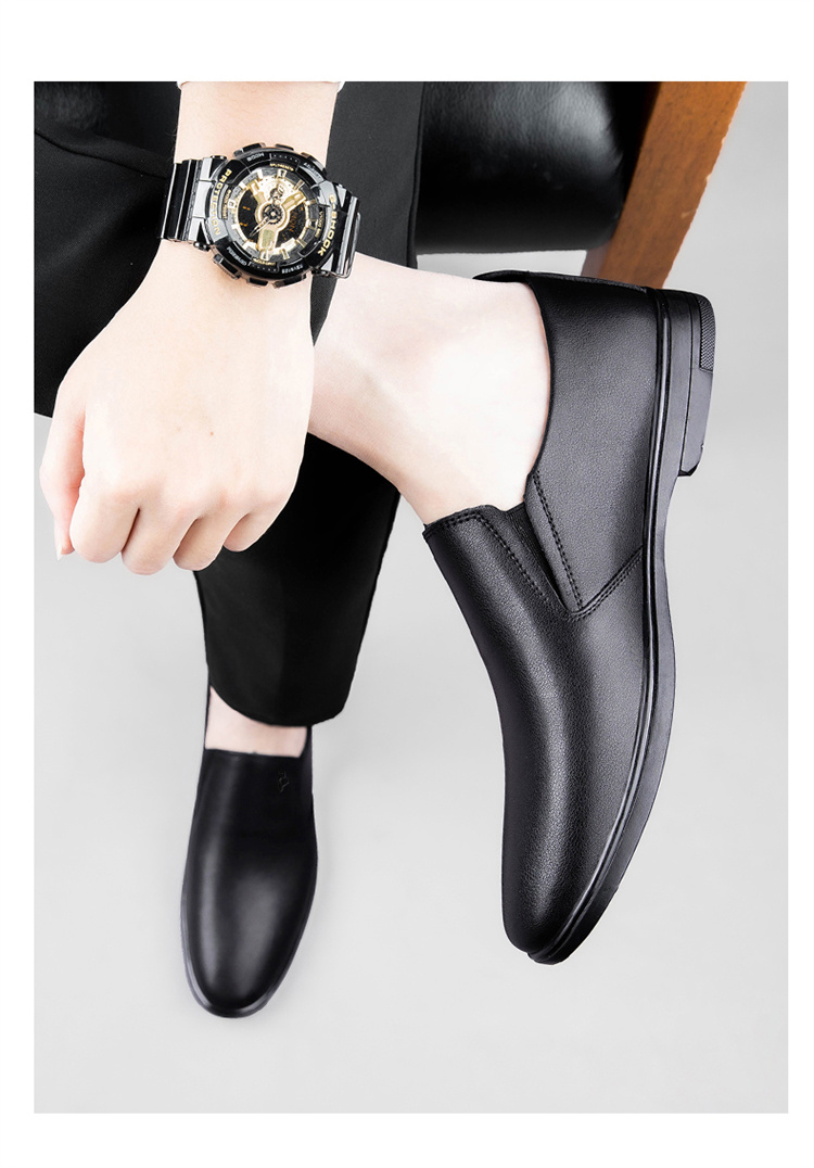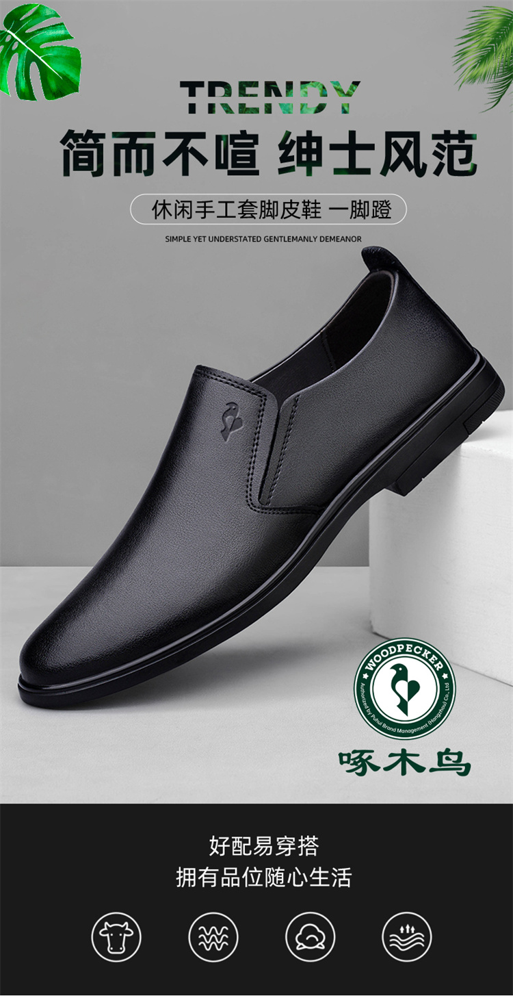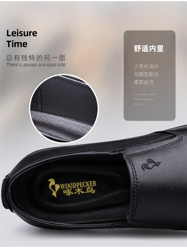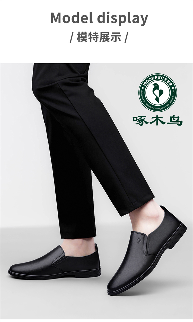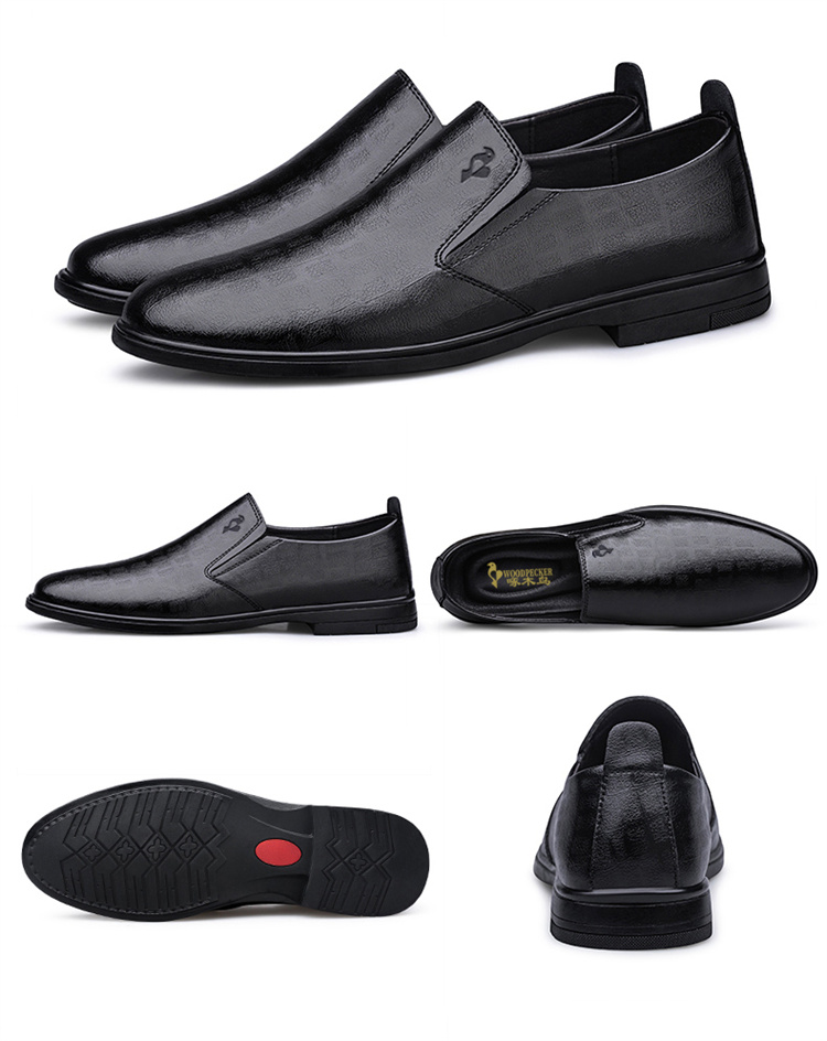 Woodpecker Men's Shoes Autumn Breathable Leather Shoes Men's Genuine Leather Business Easiest for match Soft Leather Slip-on Work Shoes for Dad