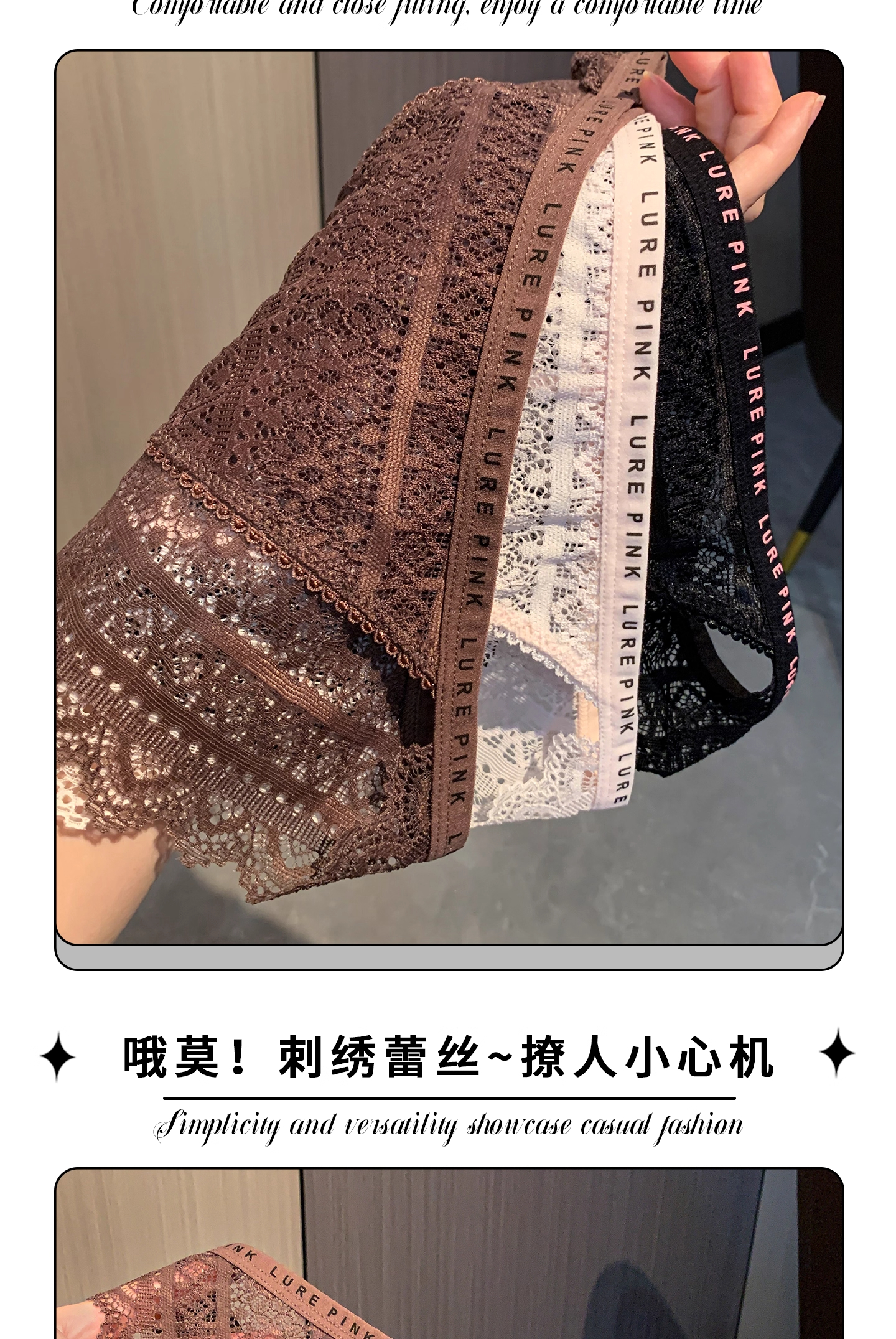 Amber Flow Series ~ Lace Sexy Pure Desire Style Low-Waist Panties for Women, Popular Hollow-Out High-Slit Women's Briefs ~