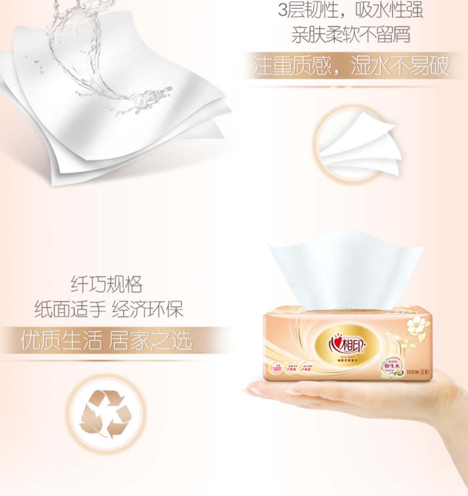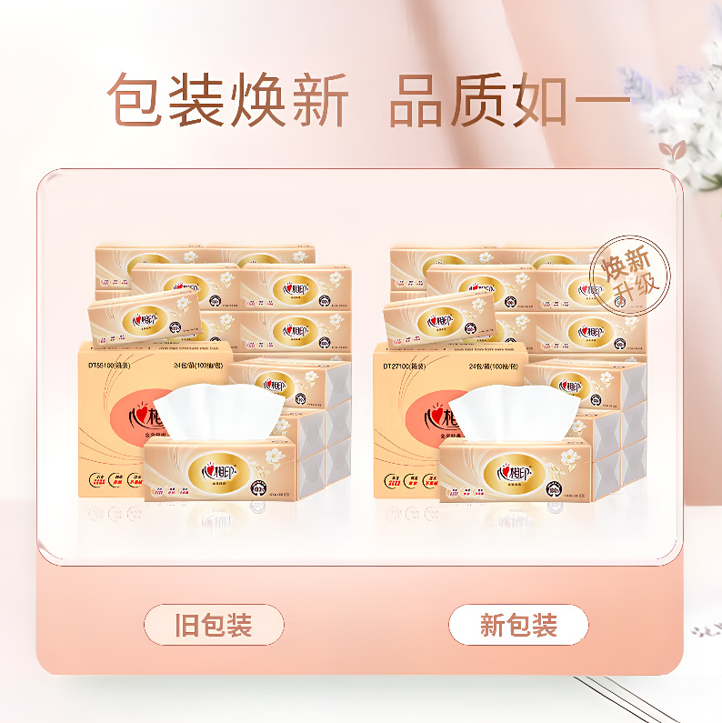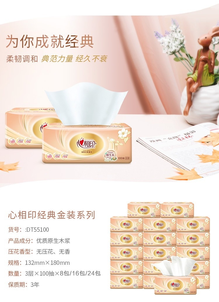 Heart-to-heart printing paper towel Paper 3 layers 100 24 packs of whole boxes of tissue paper toilet paper gold affordable
