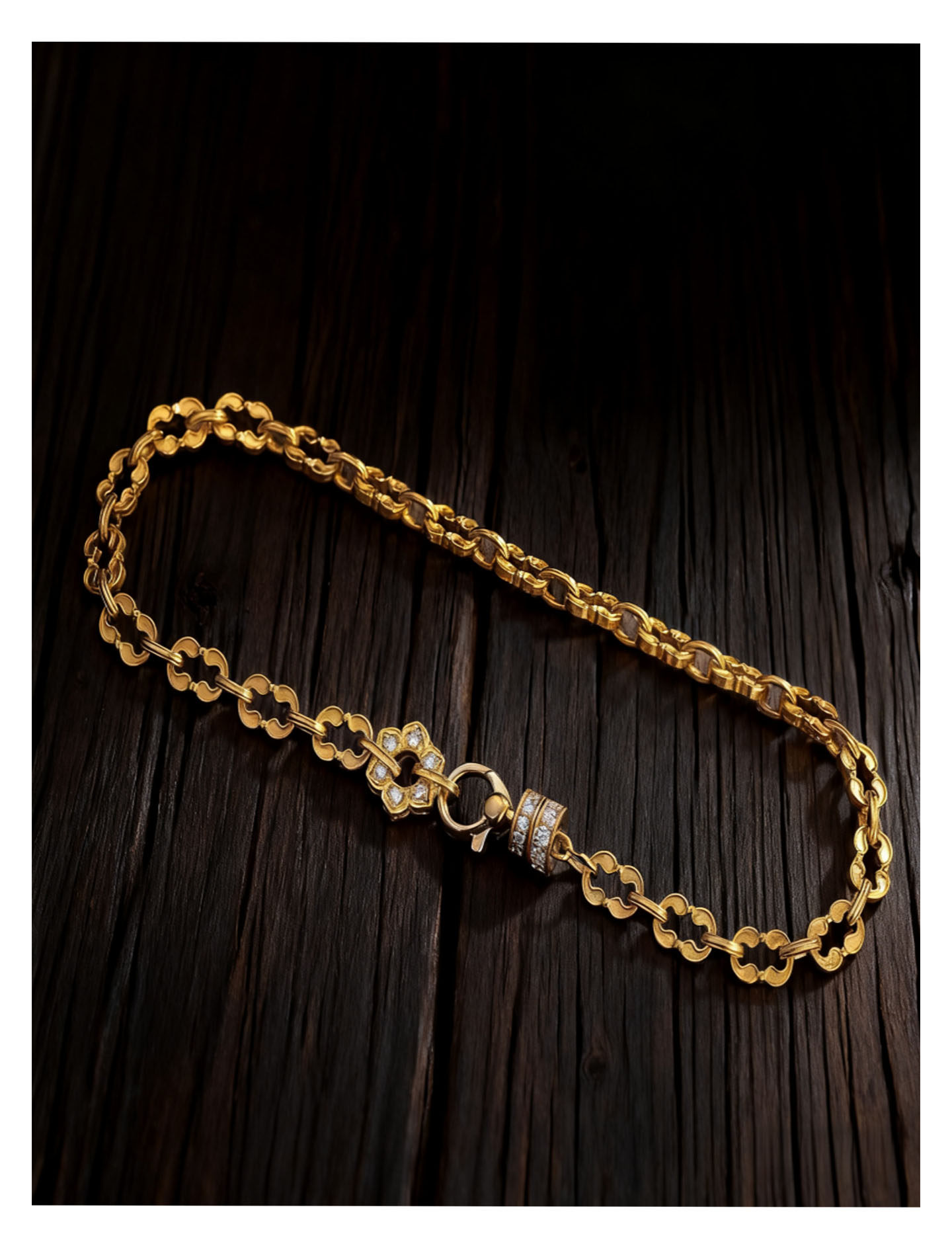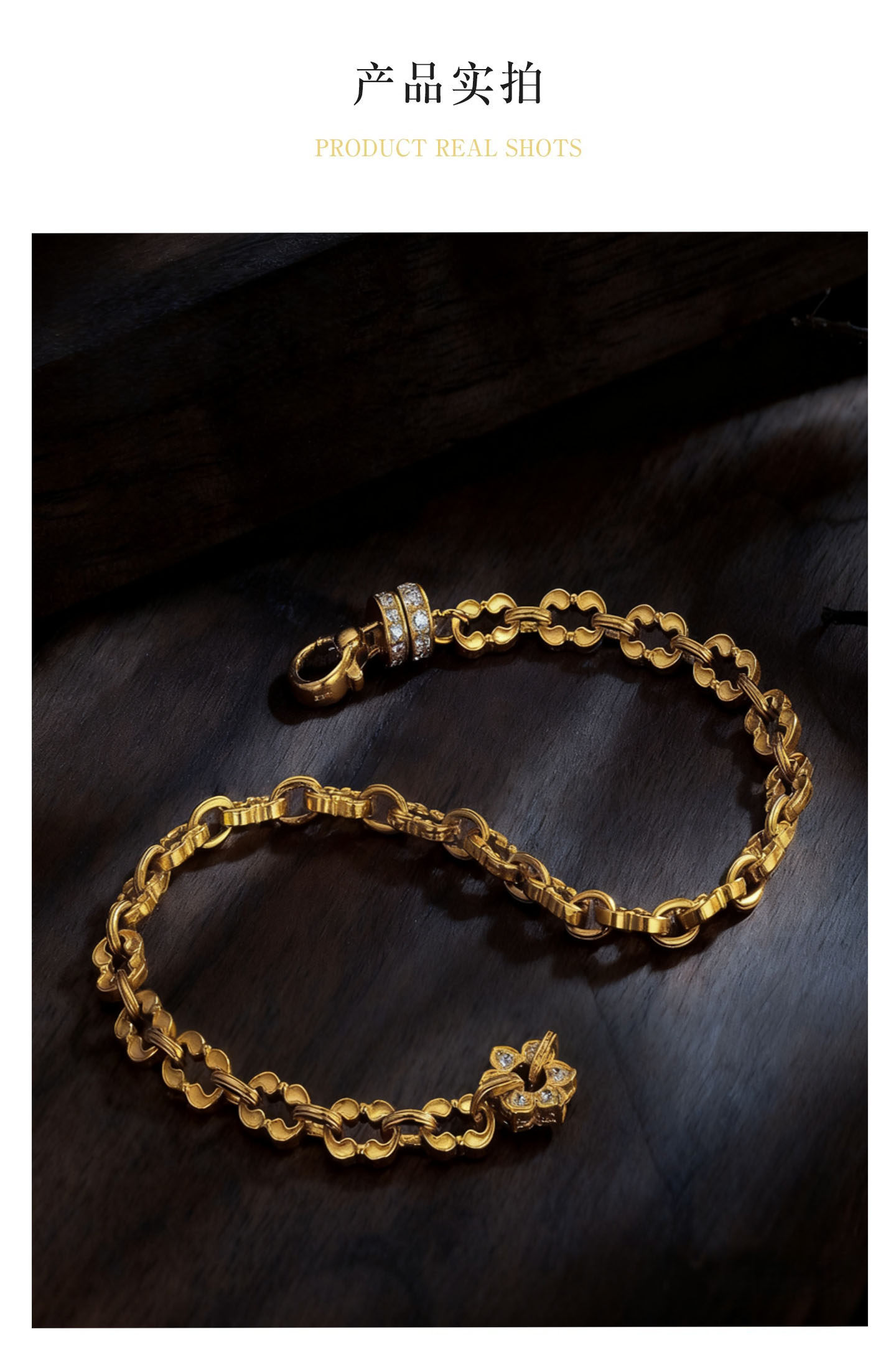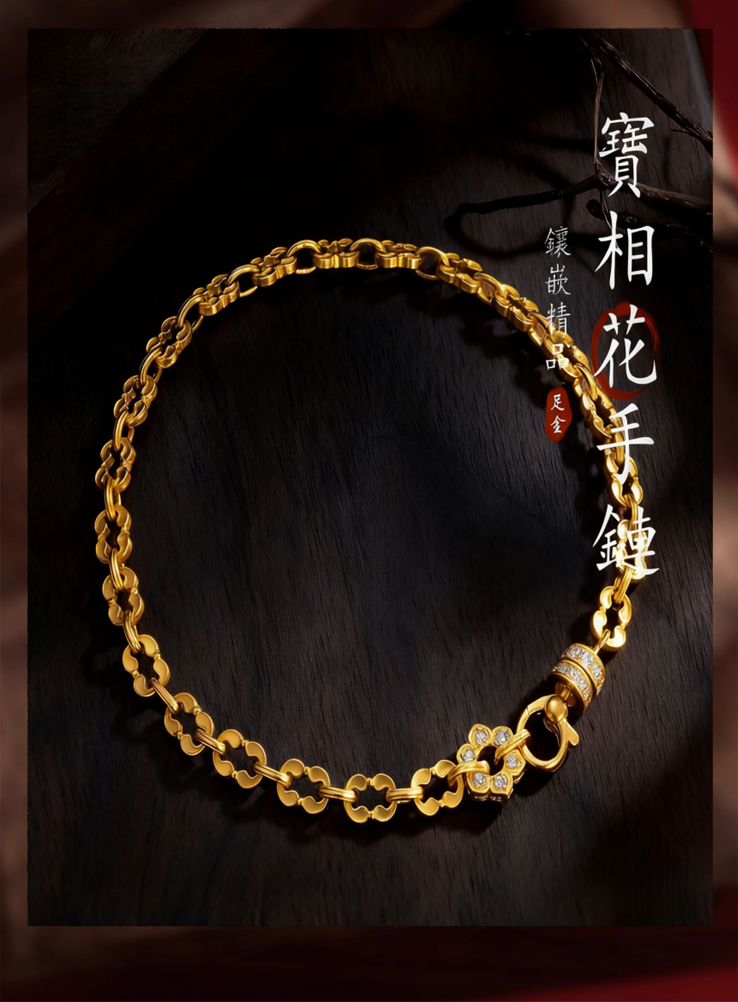 Little Golden Brother Gold Fortune Bracelet Pure Gold 999 Flower Pattern Eight-Character Chain Solid Bracelet for Women Gift
