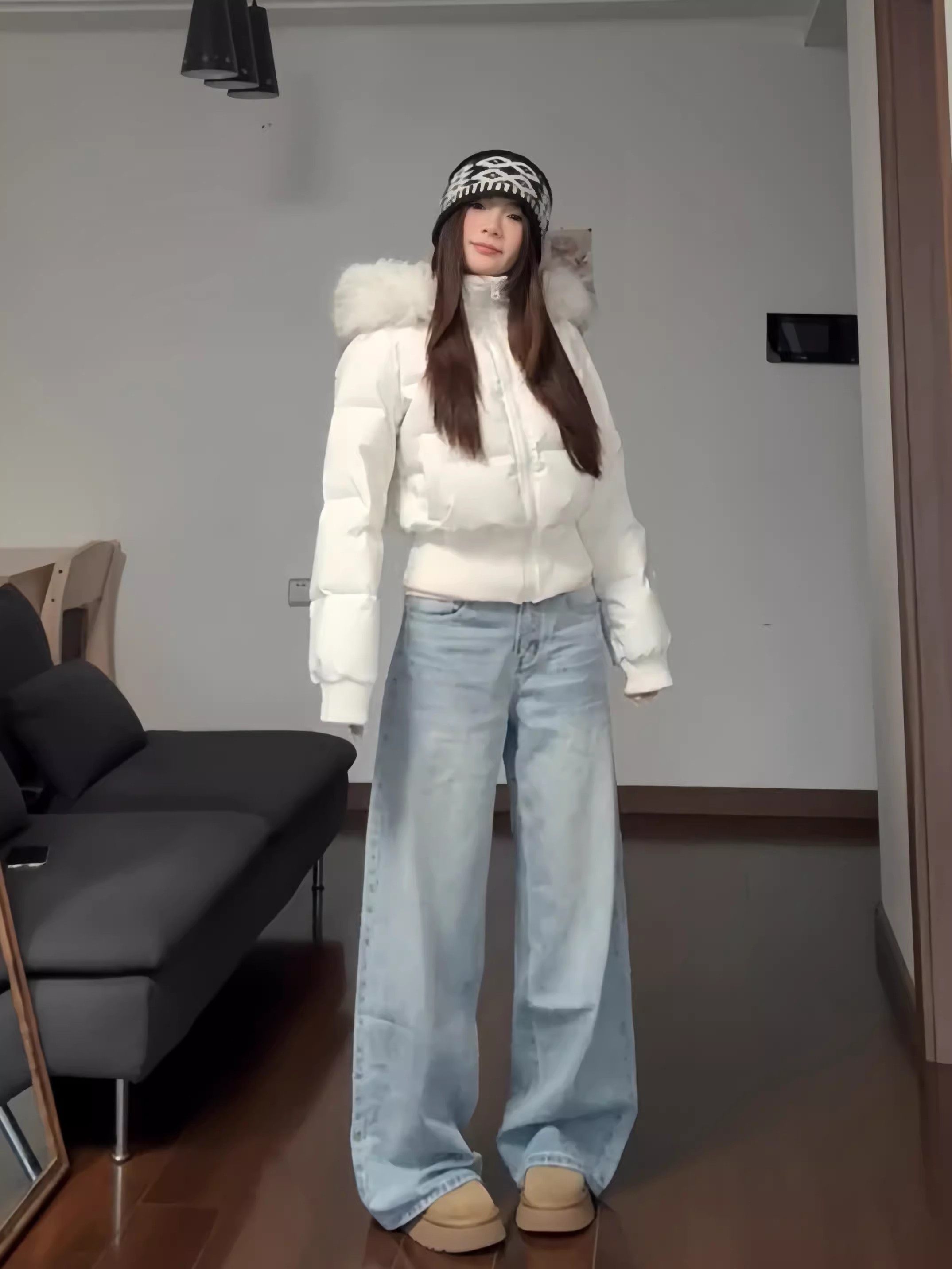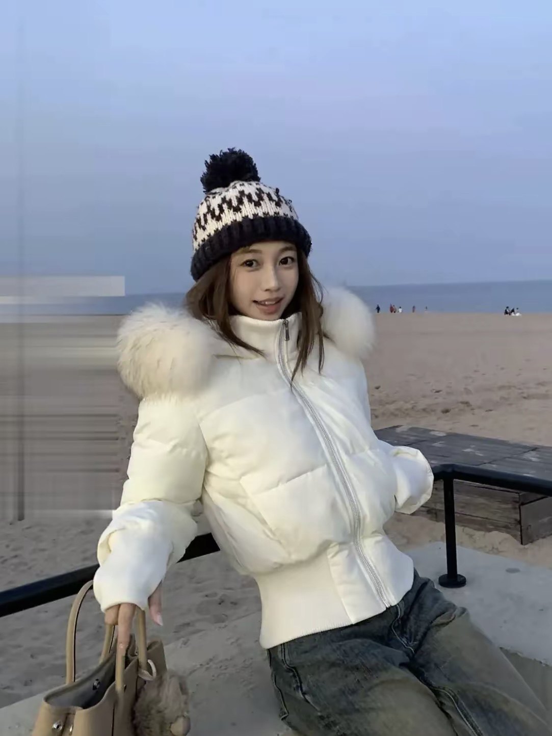2025 Winter New American Style Hot Girl Fur Collar Hooded Thickened Cotton Jacket for Women Sweet Korean Style Waist-Cinching Short Cotton Coat Trendy