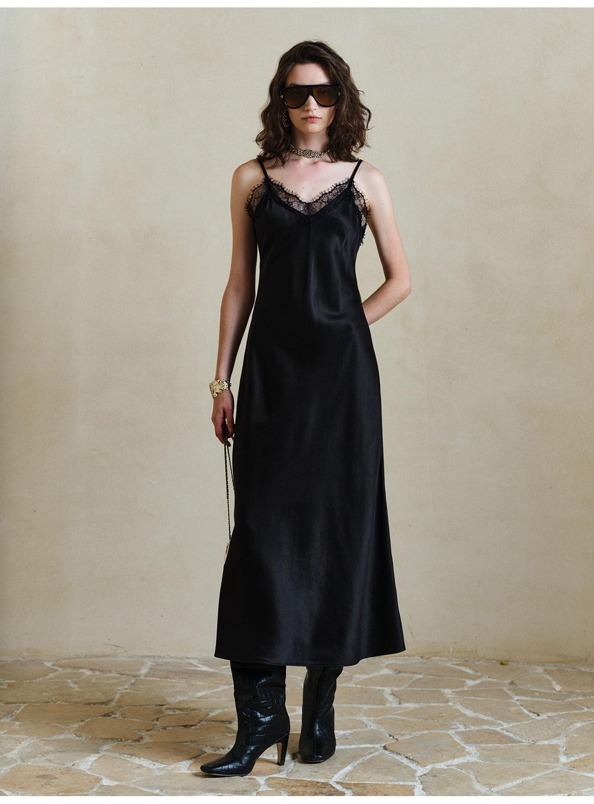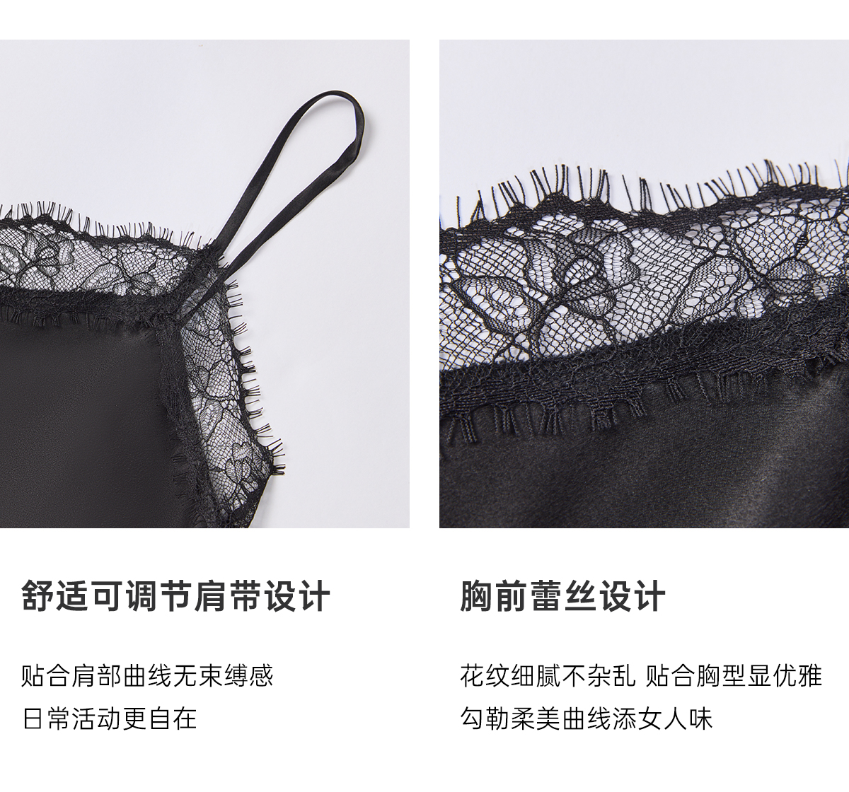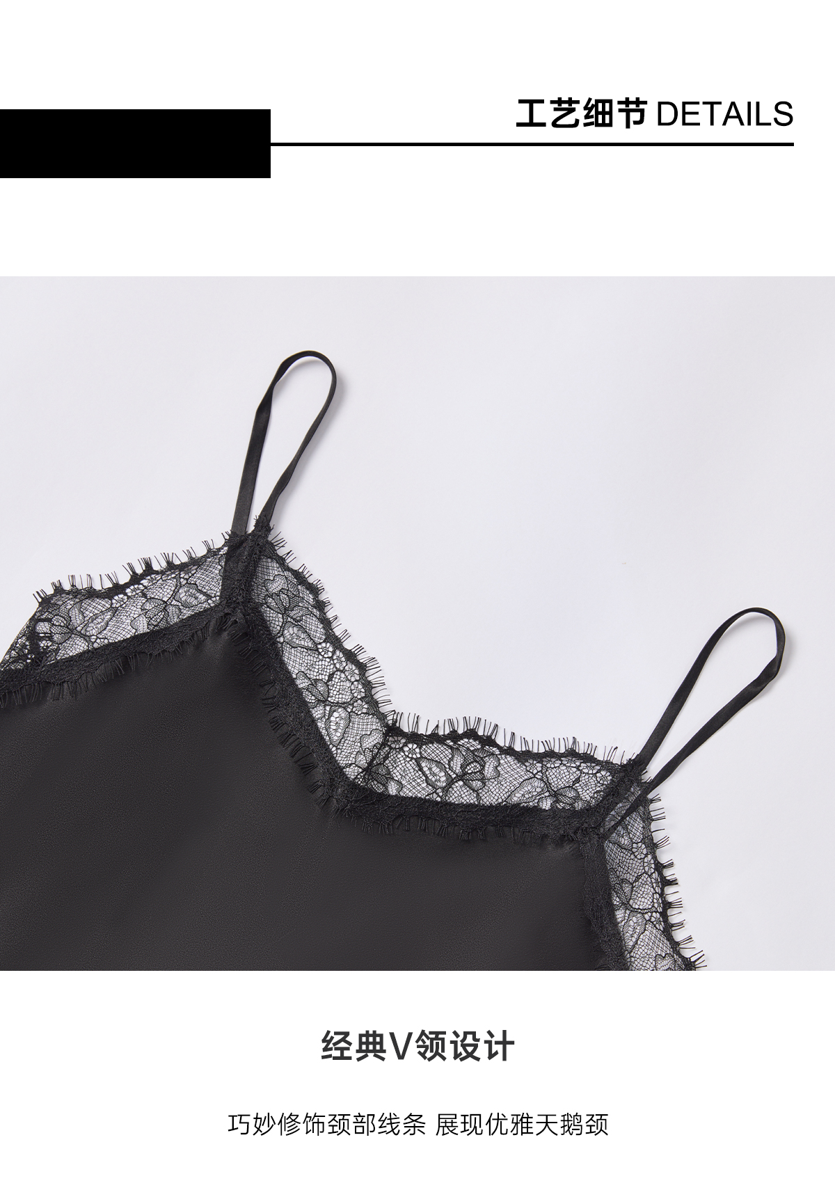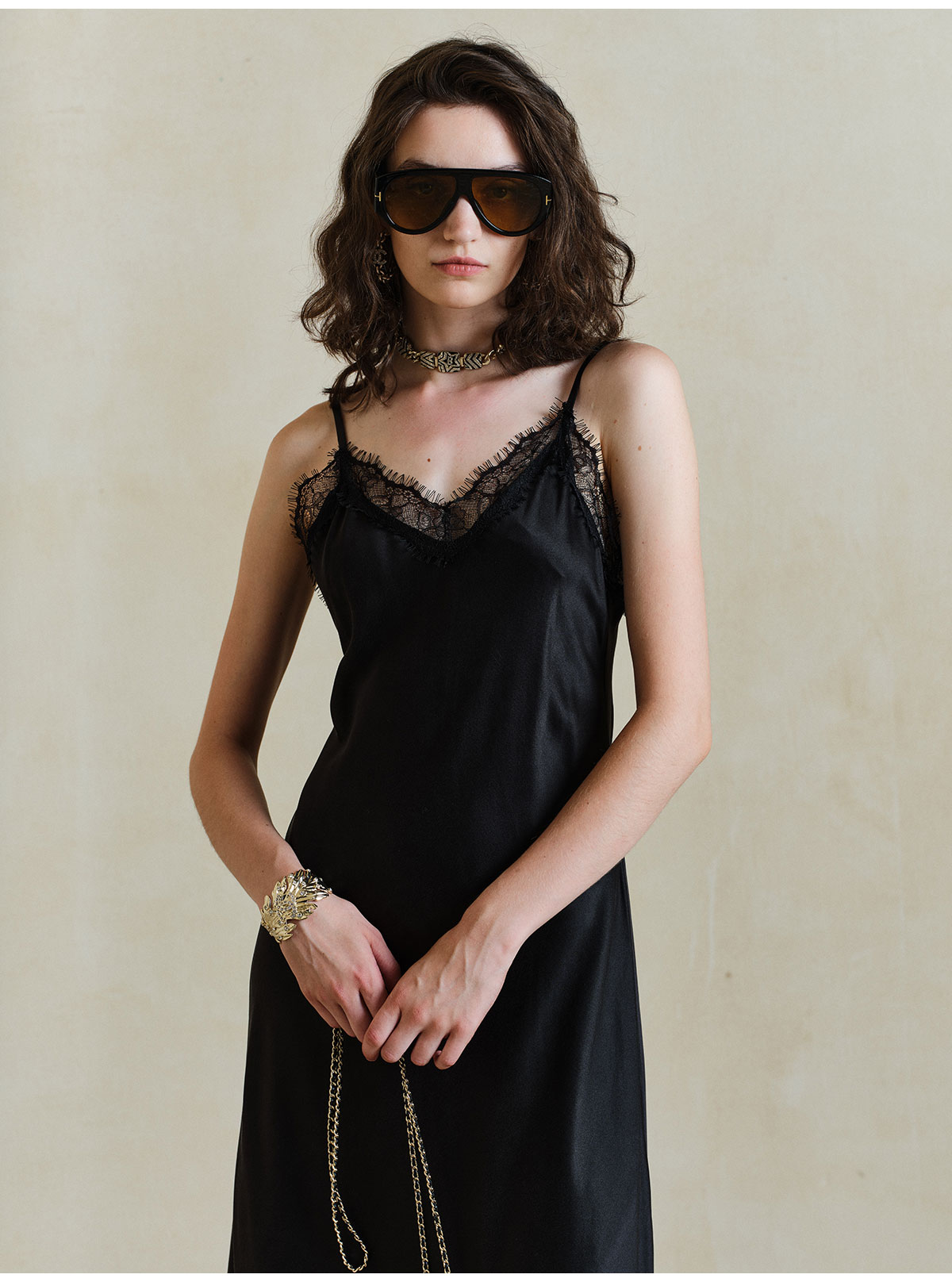Blackknini "Lace Cover" Mulberry Silk Satin Silk Smooth Eyelash Lace Silk Sling/Dress