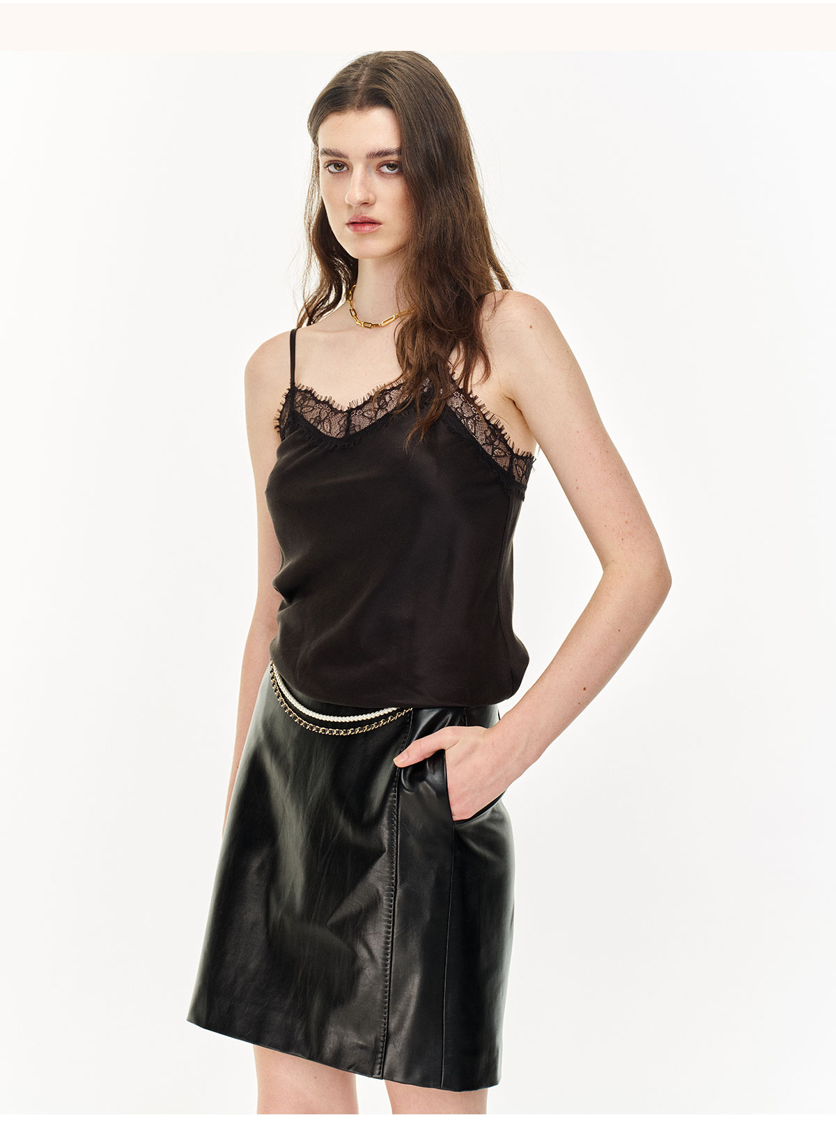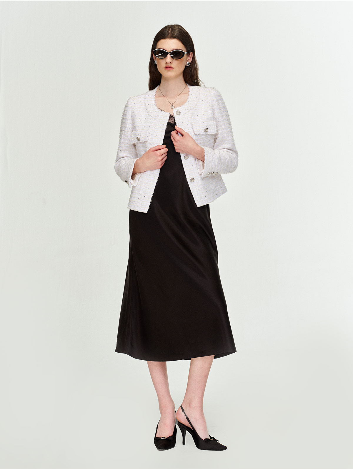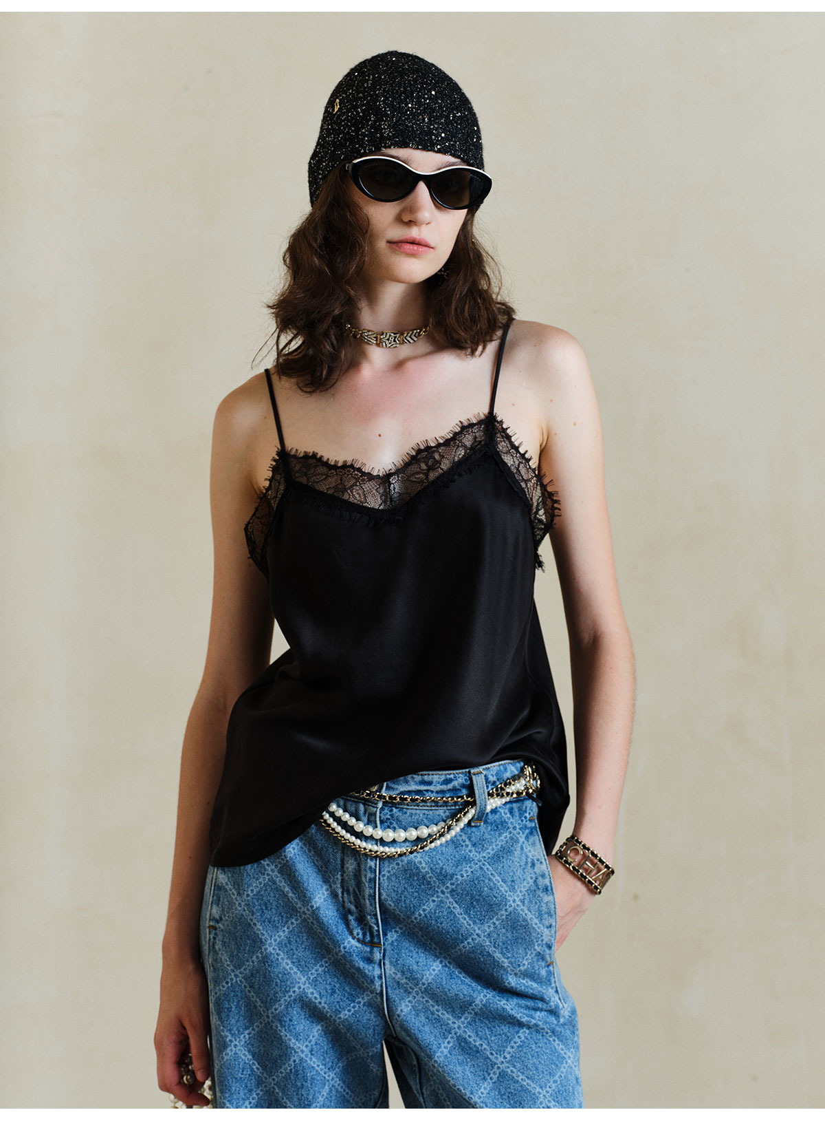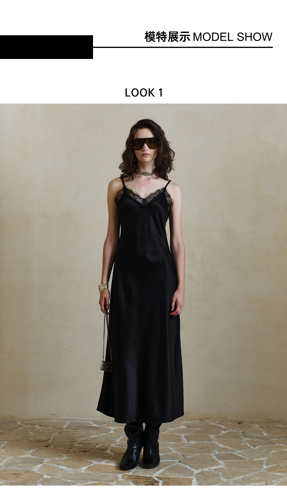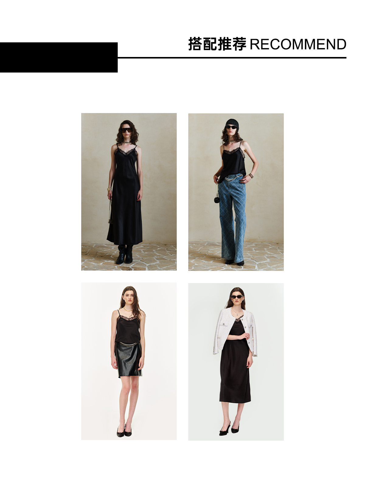 Blackknini "Lace Cover" Mulberry Silk Satin Silk Smooth Eyelash Lace Silk Sling/Dress