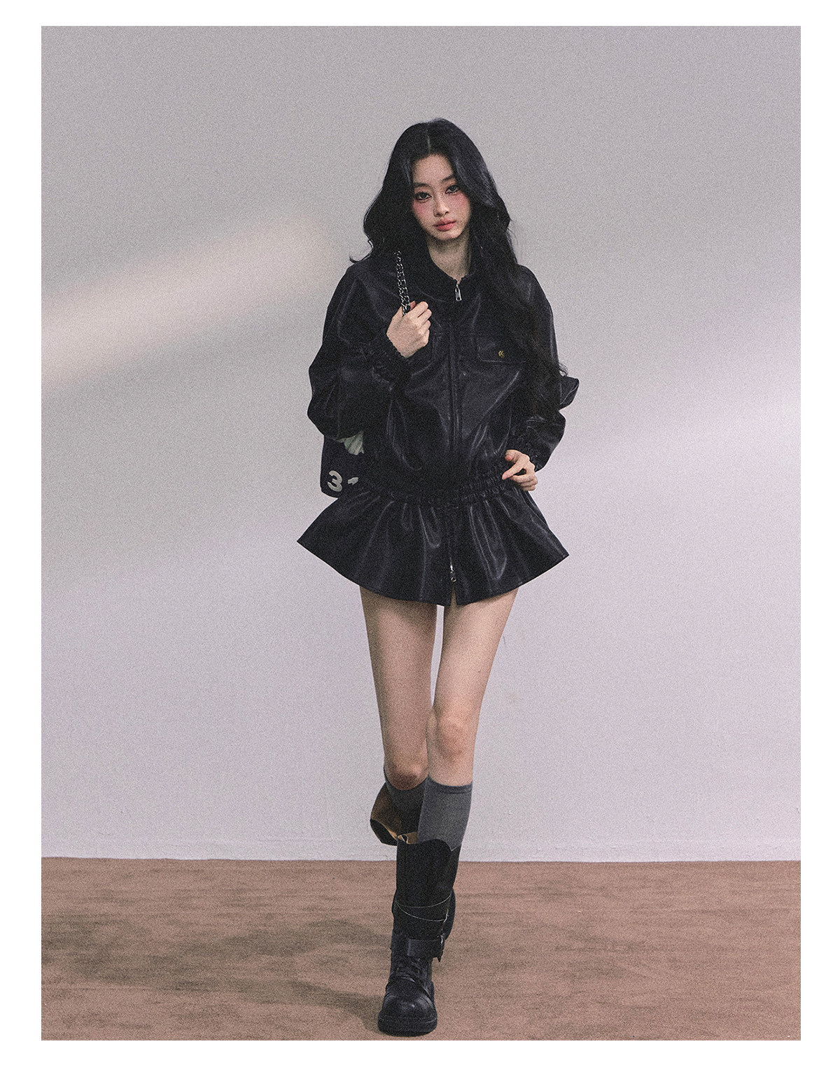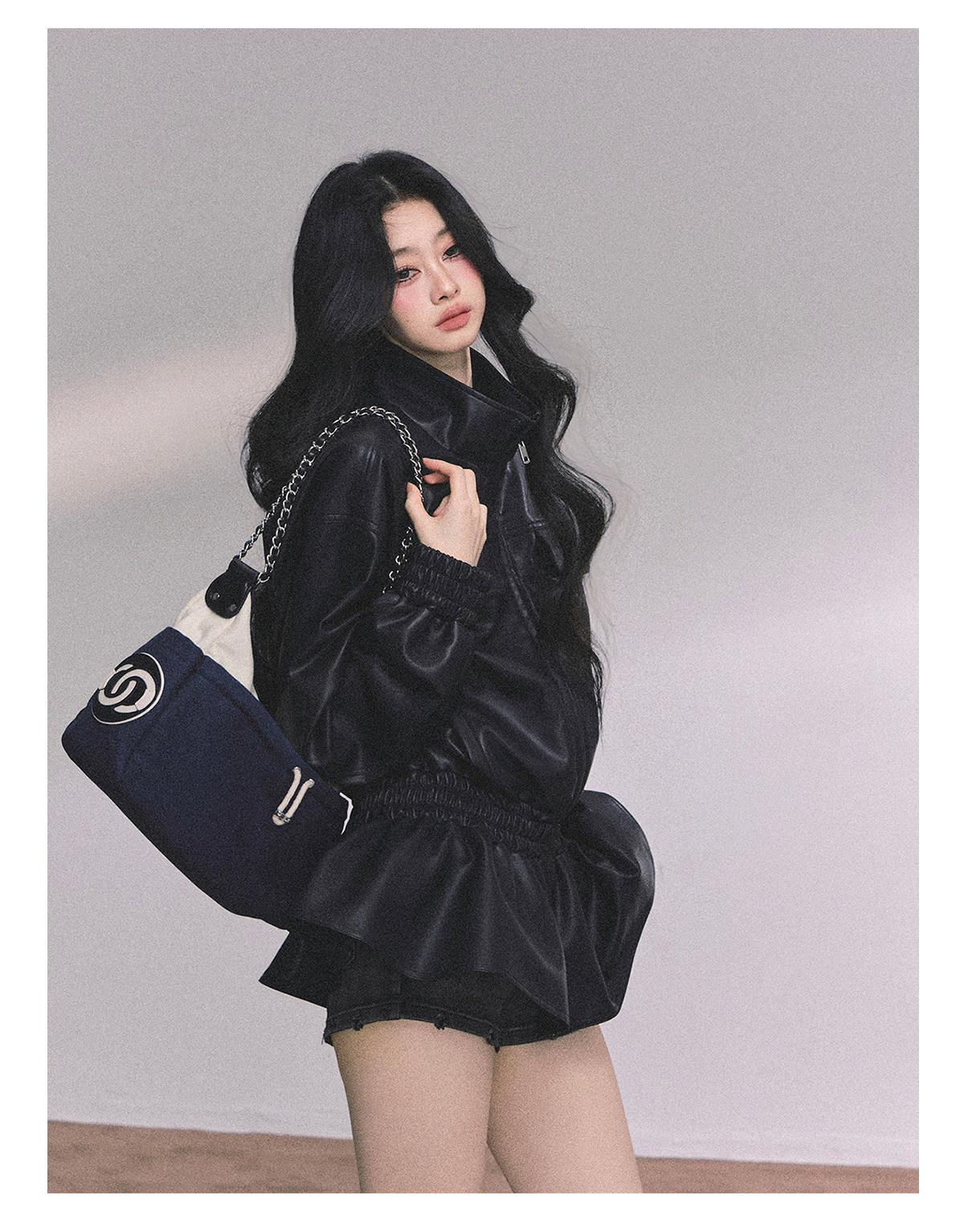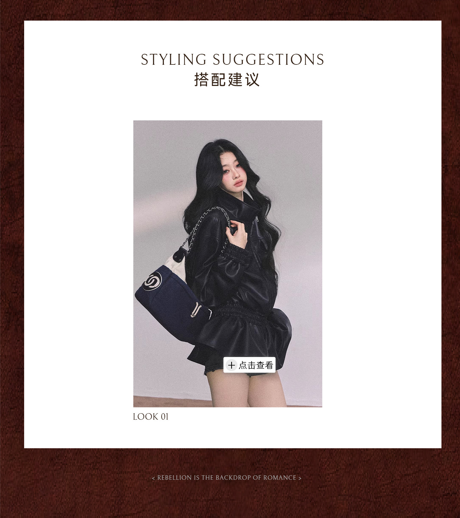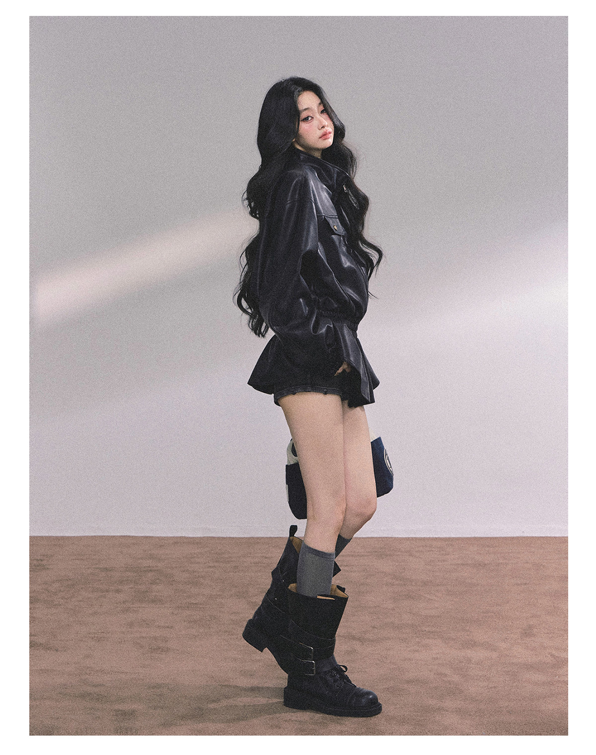 Aomalm Young Style "Ethiopian Wilderness"% Cool and Stylish Pu Leather Jacket for Women, Autumn and Winter Loose Stand Collar Leather Jacket