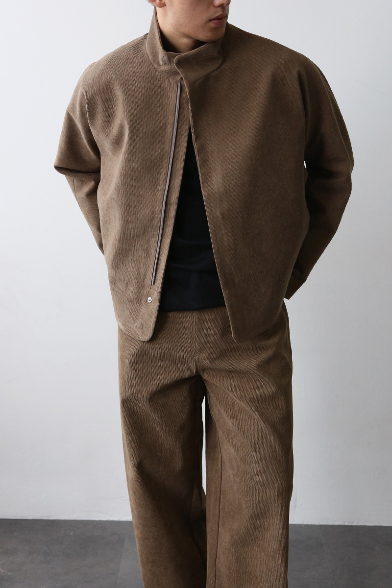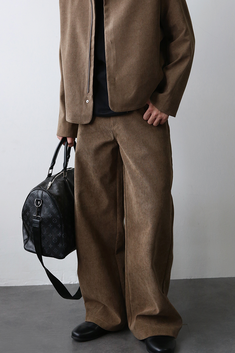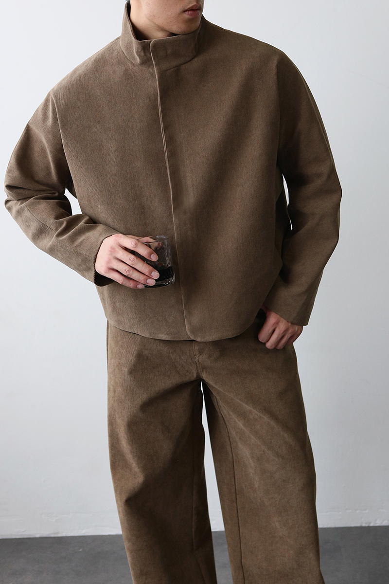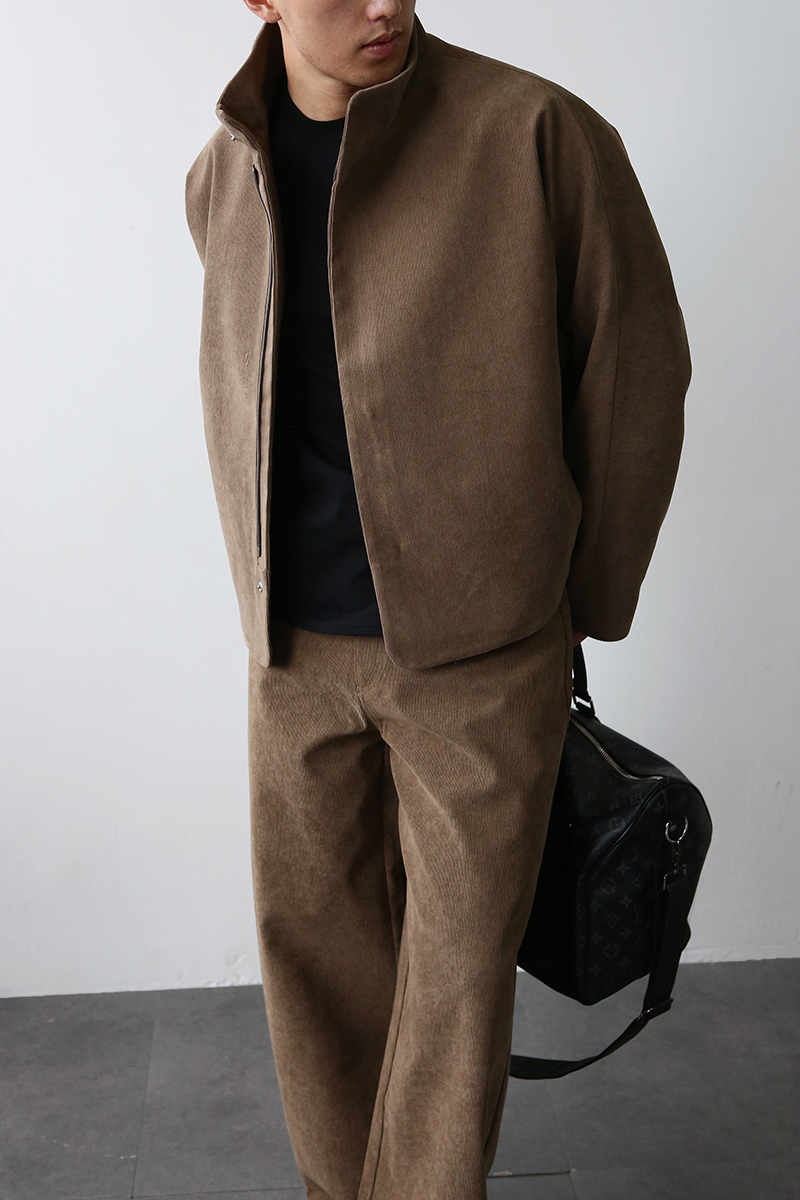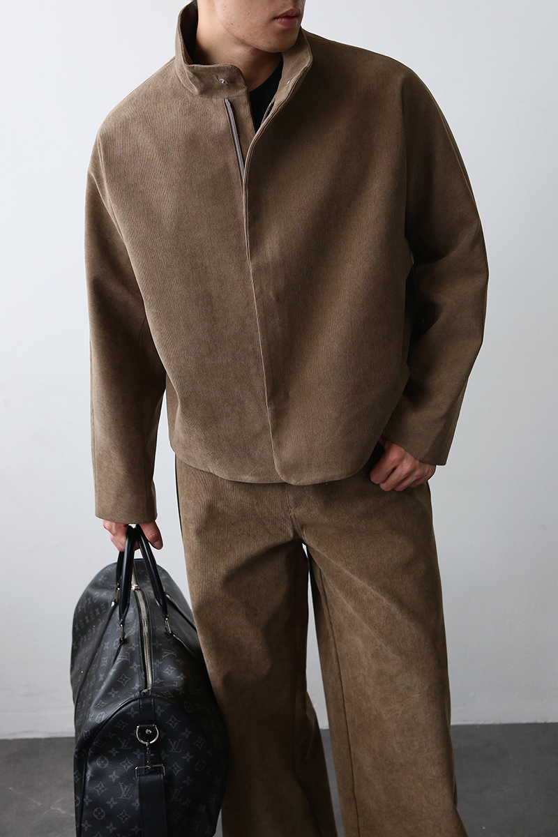 Gbhp Old Money Style Stand Collar Corduroy Jacket Set for Men, Autumn and Winter Warm Solid Color Casual Loose Straight-Leg Pants Set