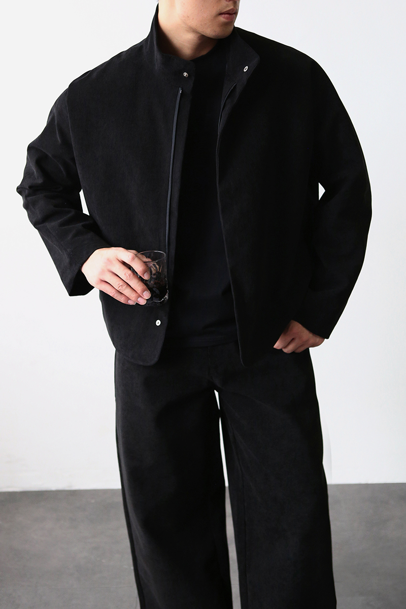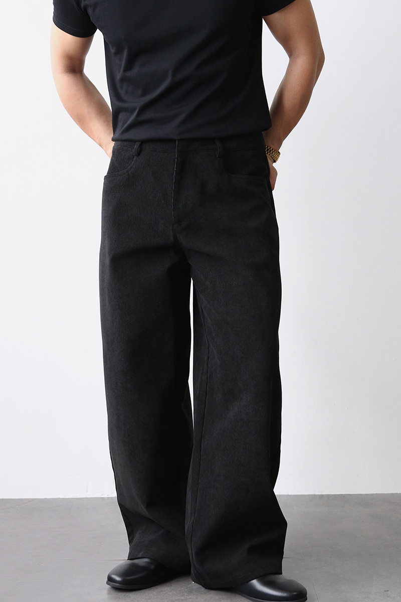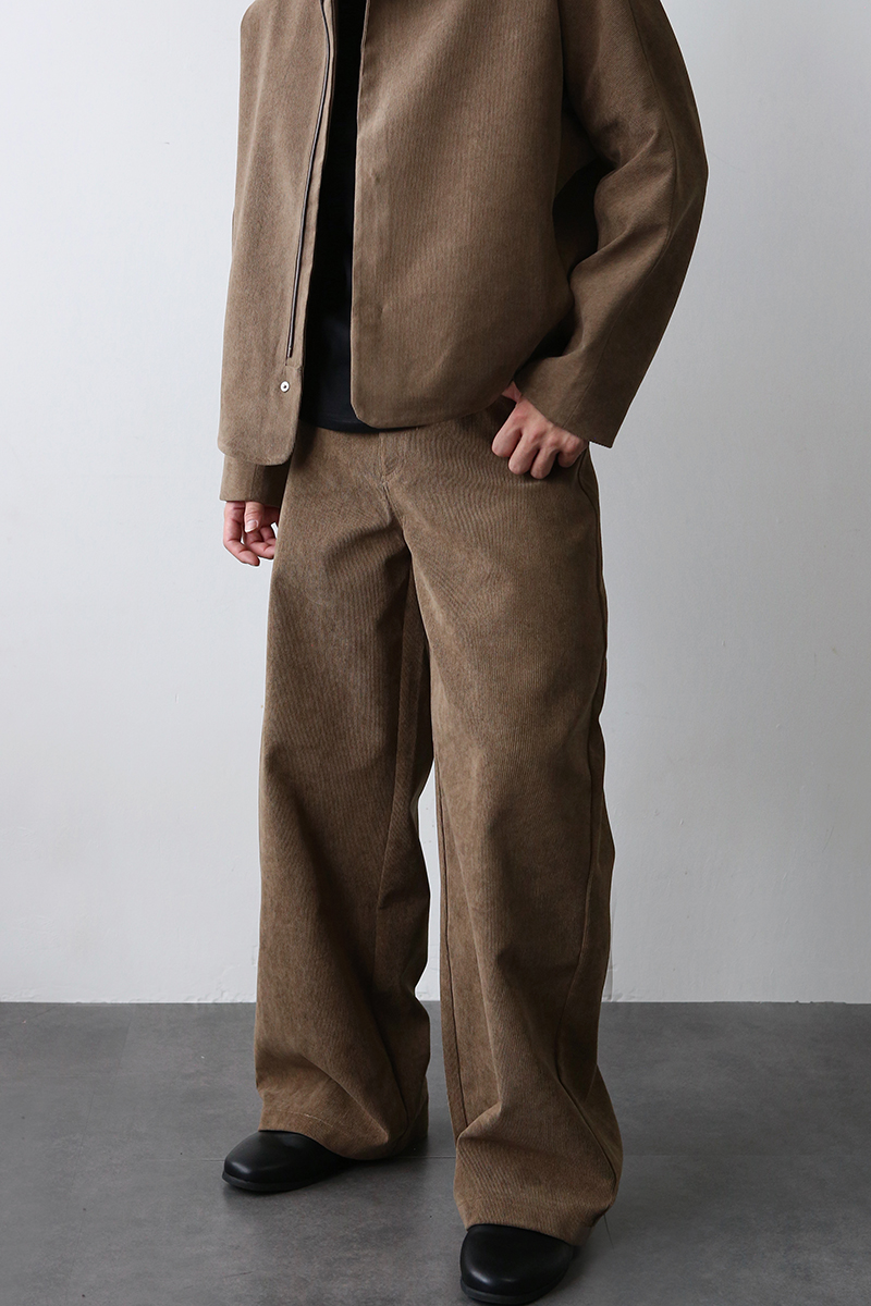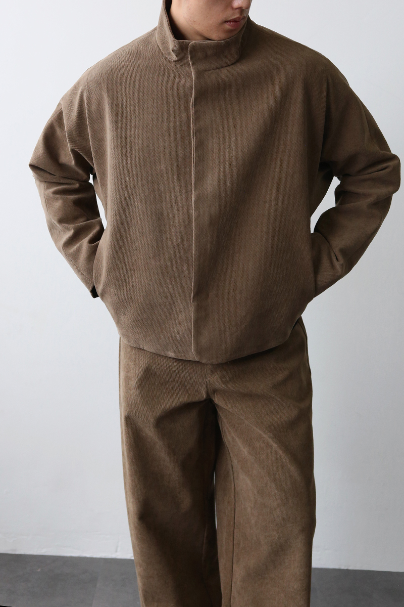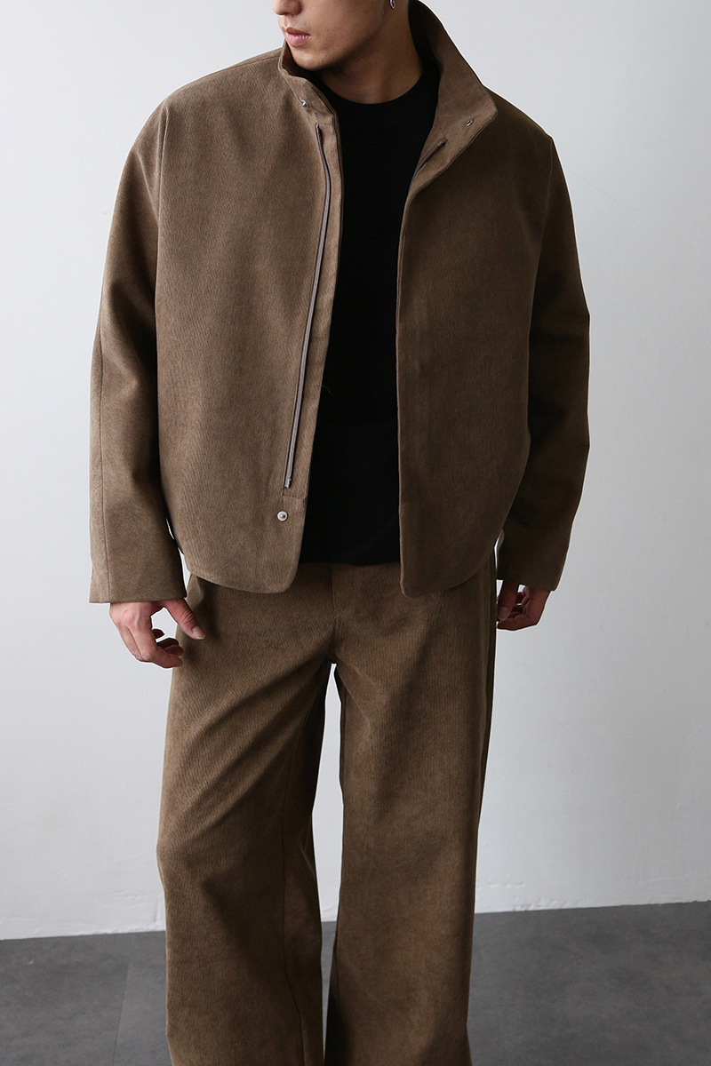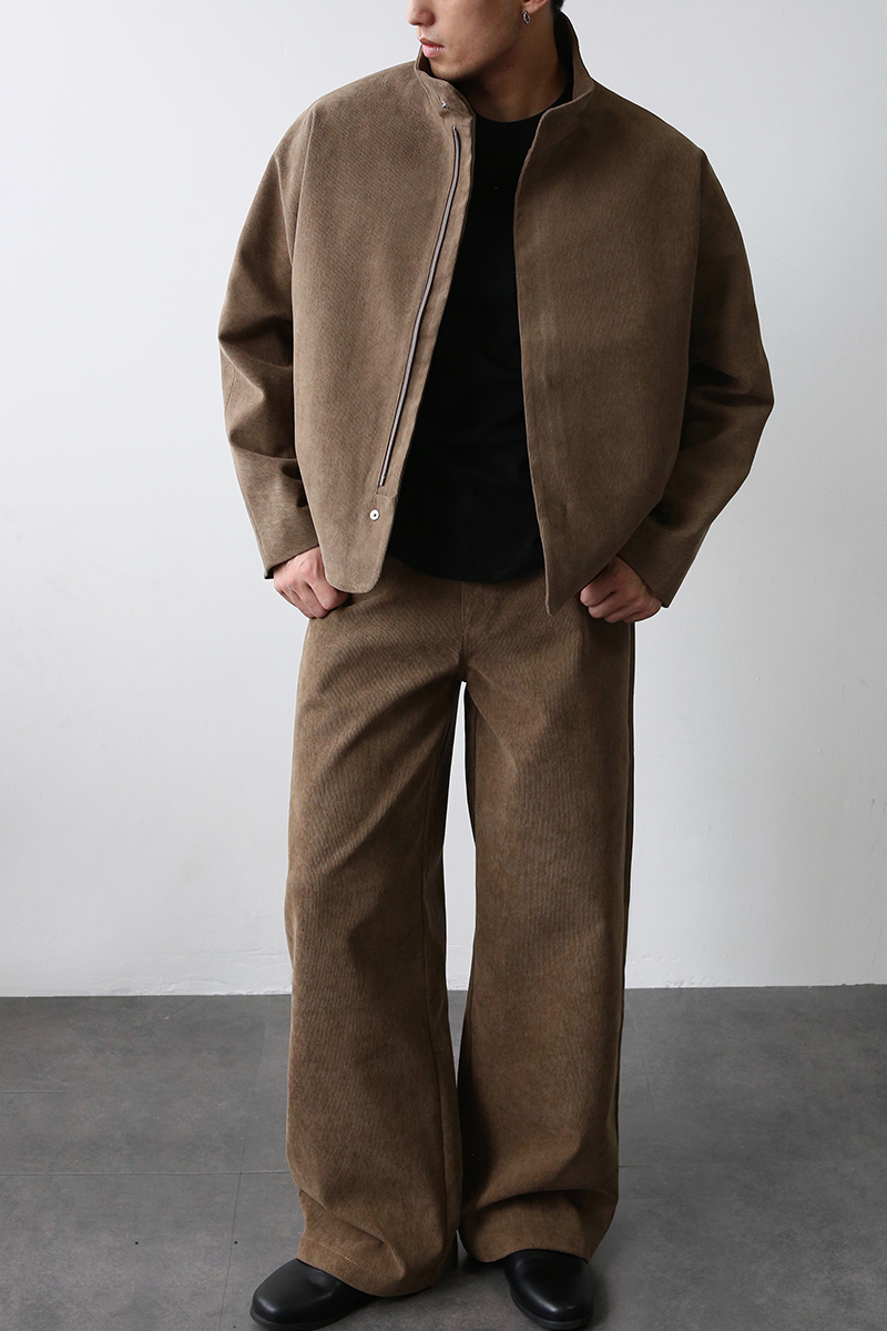 Gbhp Old Money Style Stand Collar Corduroy Jacket Set for Men, Autumn and Winter Warm Solid Color Casual Loose Straight-Leg Pants Set
