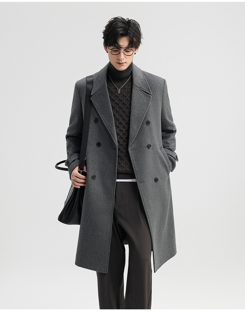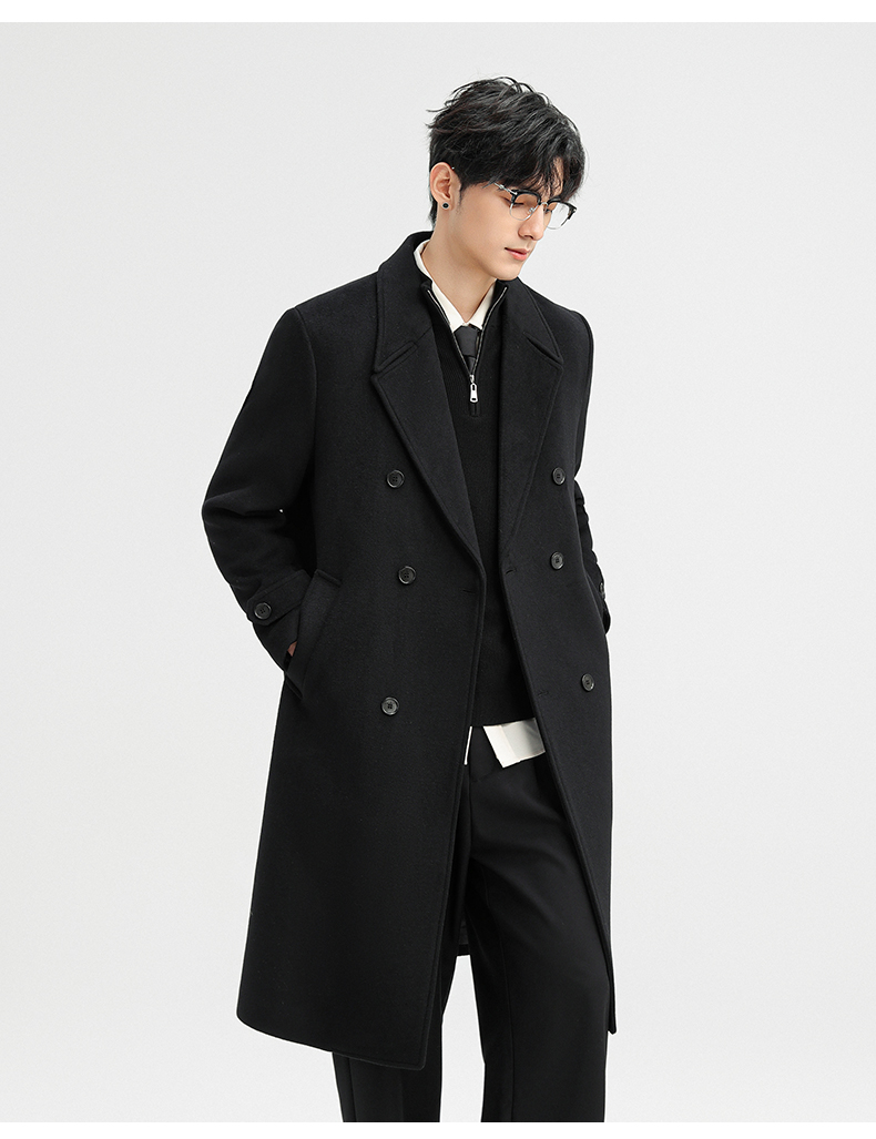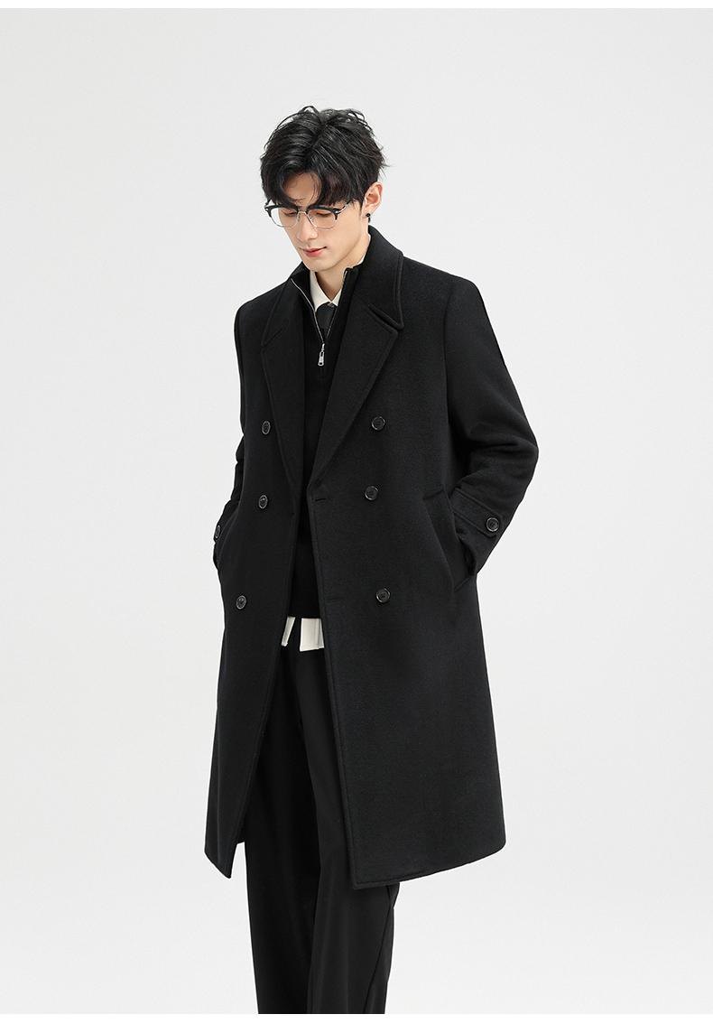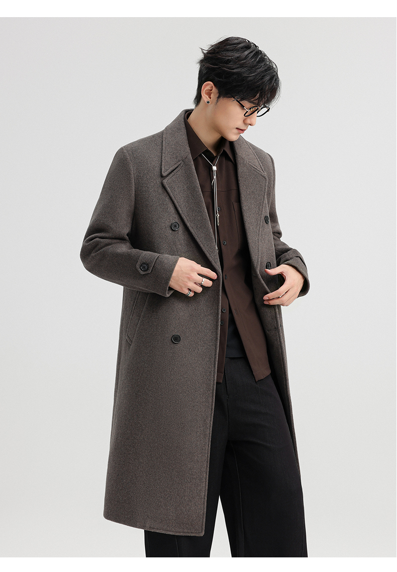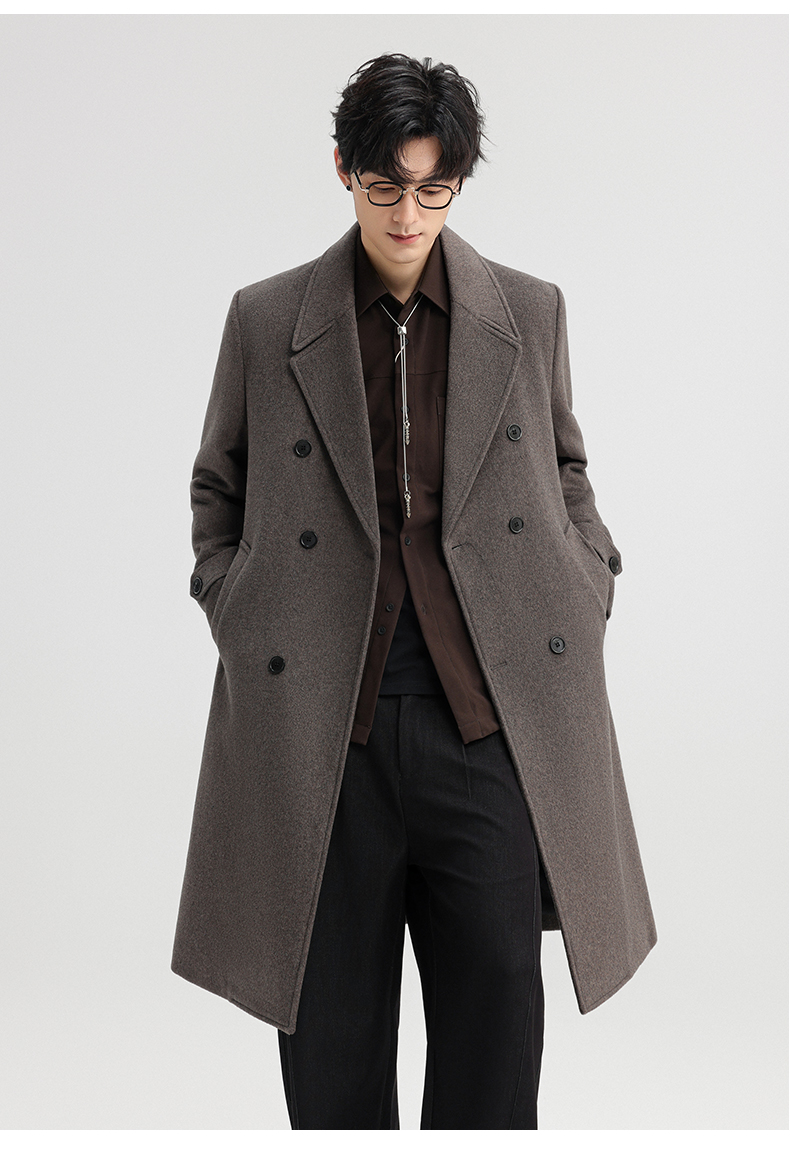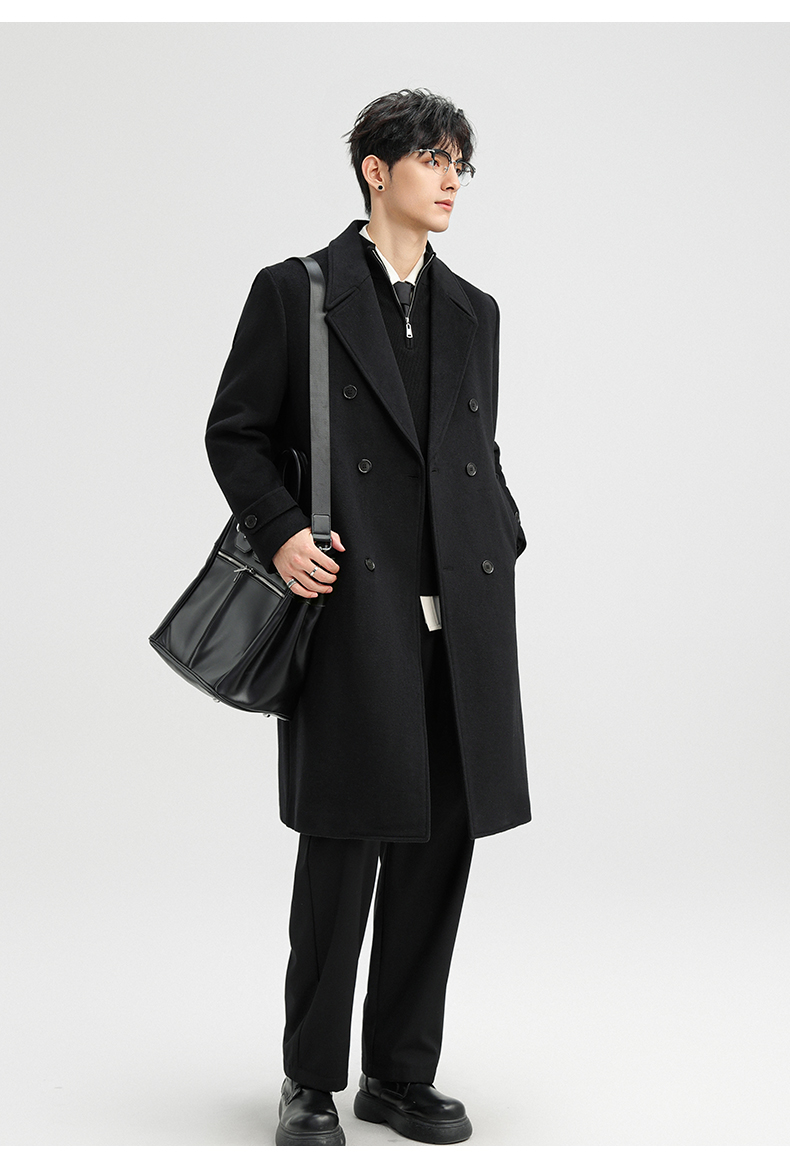 Woodpecker Woolen Coat for Men, Mid-Length, 2025 Winter New Style, Thickened Wool Double-Breasted Woolen Overcoat