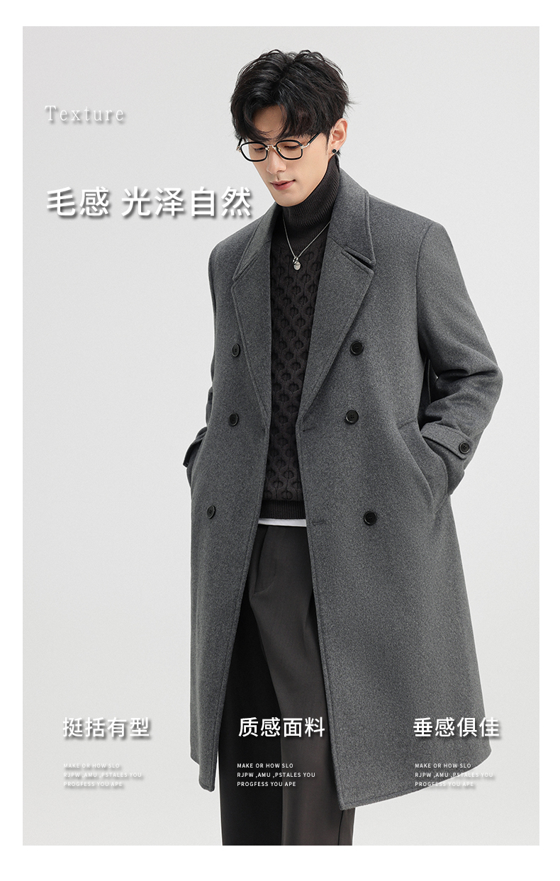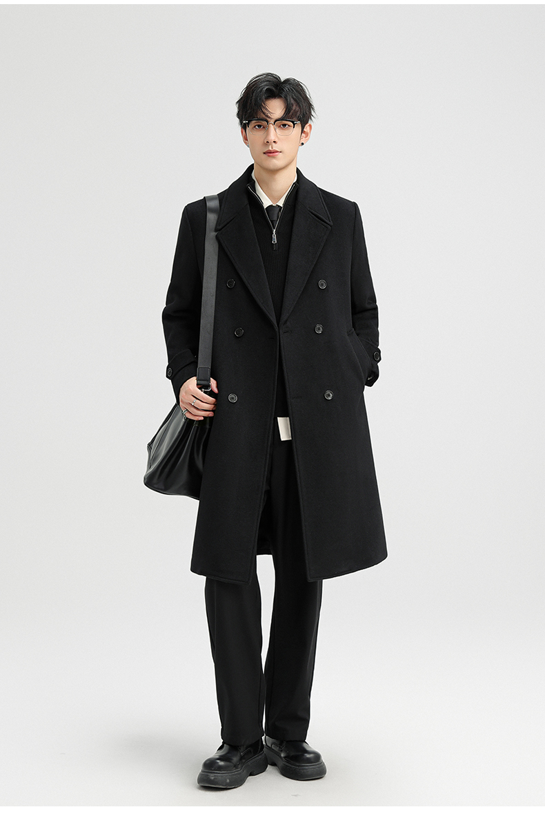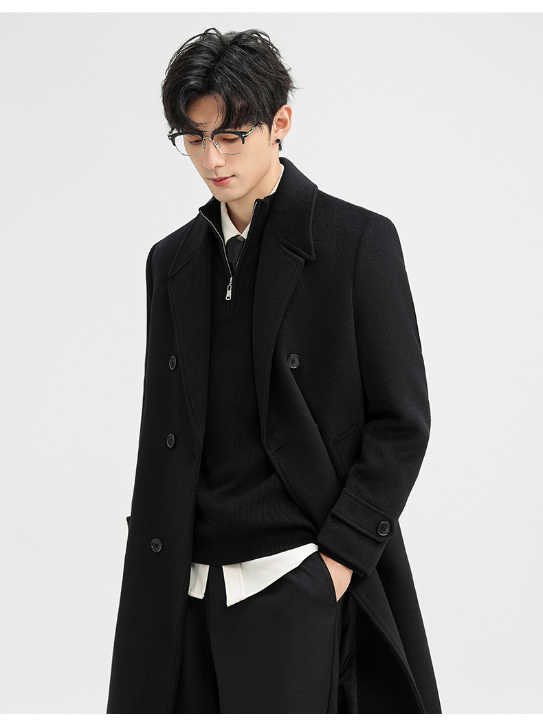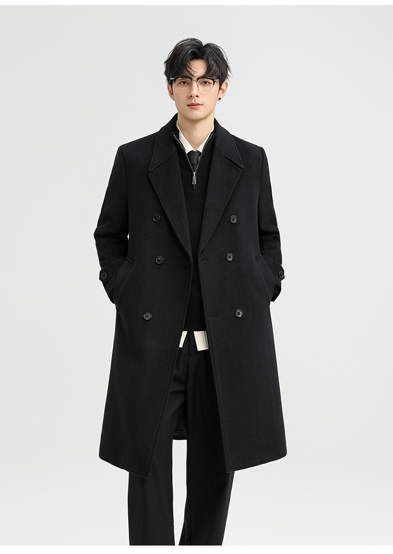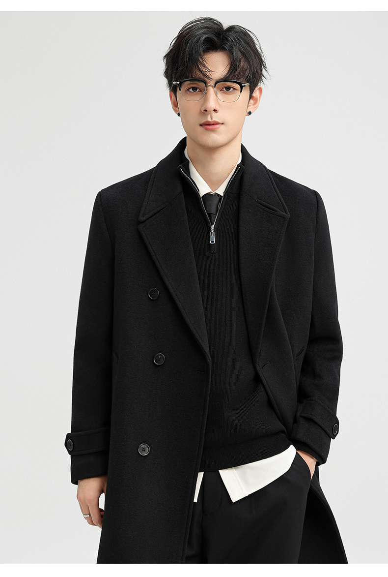 Woodpecker Woolen Coat for Men, Mid-Length, 2025 Winter New Style, Thickened Wool Double-Breasted Woolen Overcoat