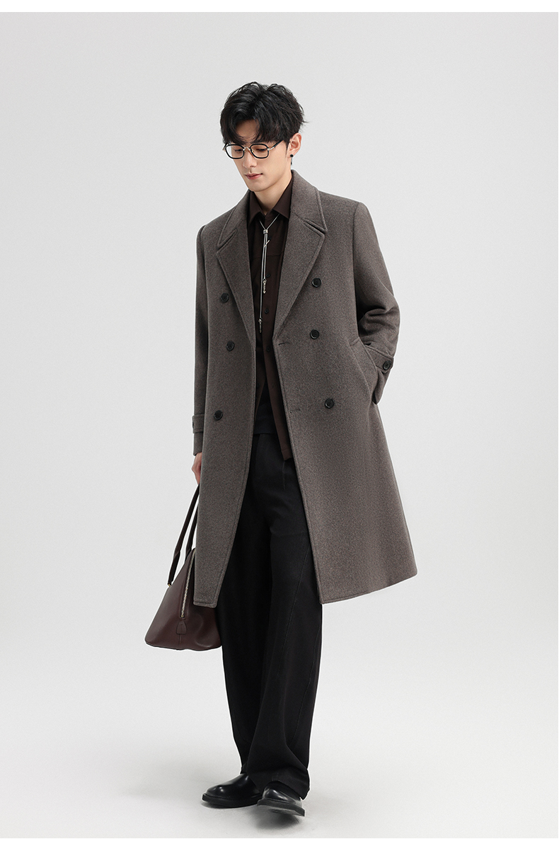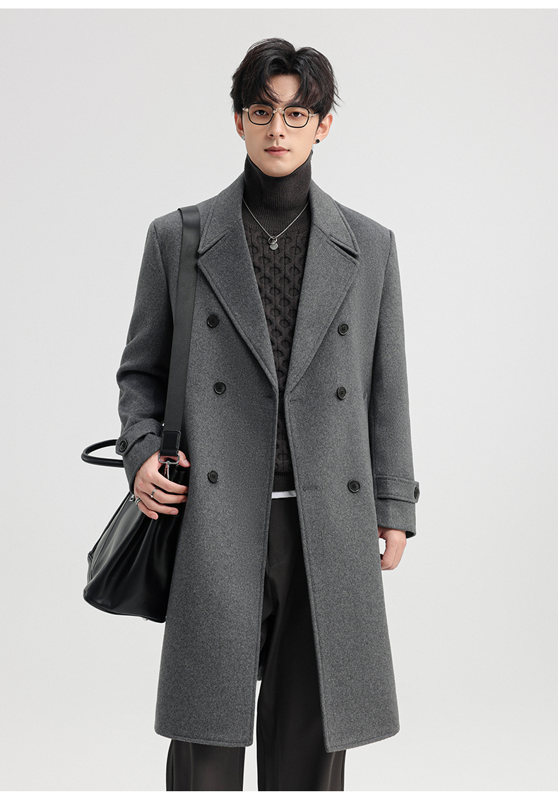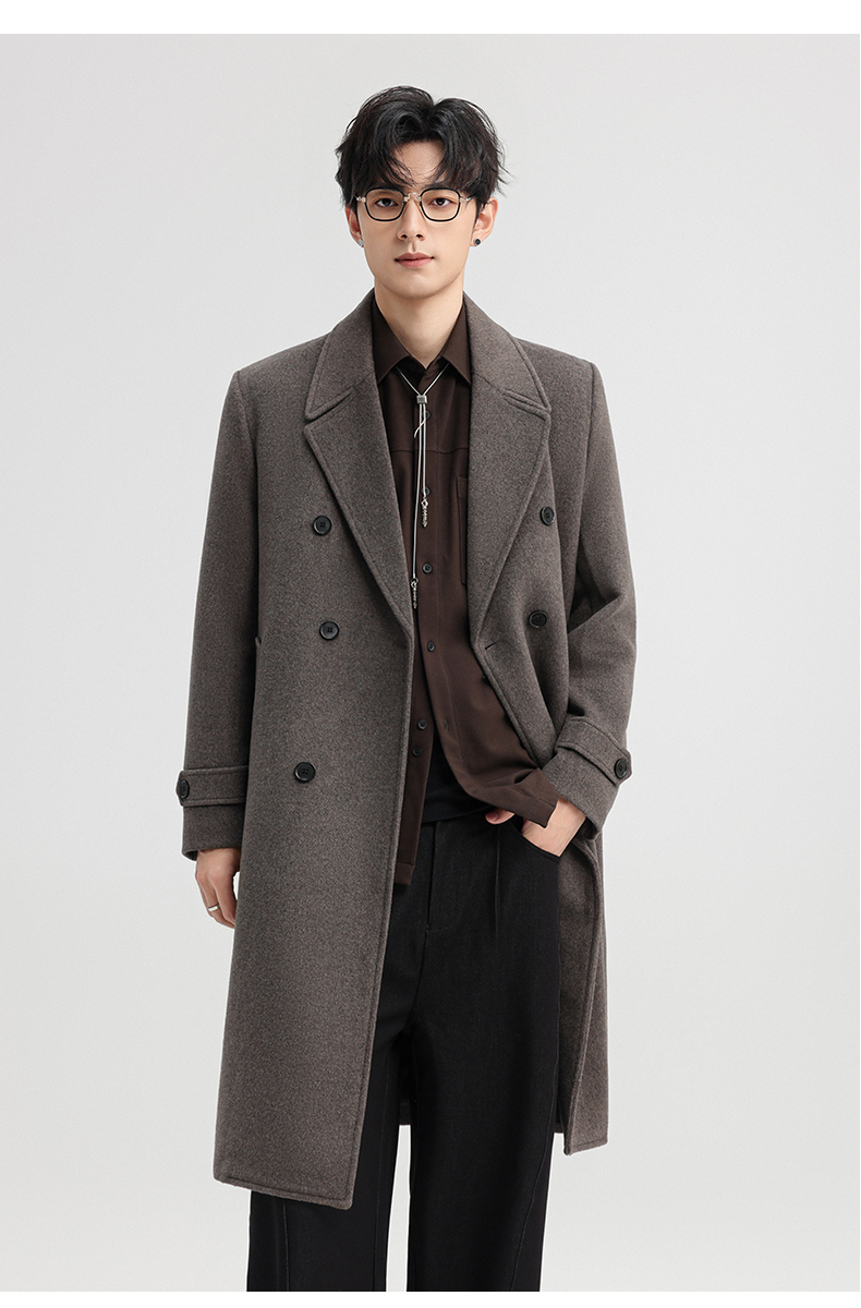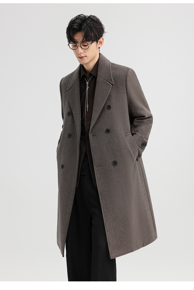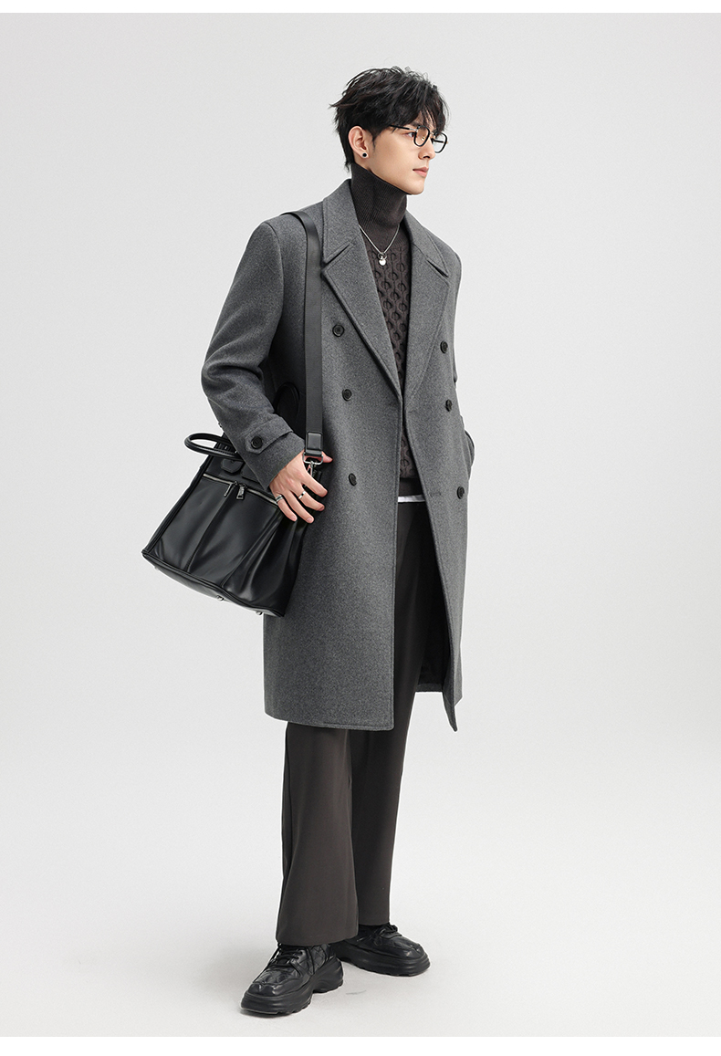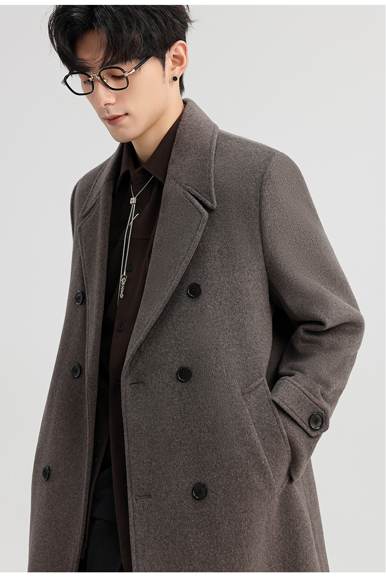 Woodpecker Woolen Coat for Men, Mid-Length, 2025 Winter New Style, Thickened Wool Double-Breasted Woolen Overcoat
