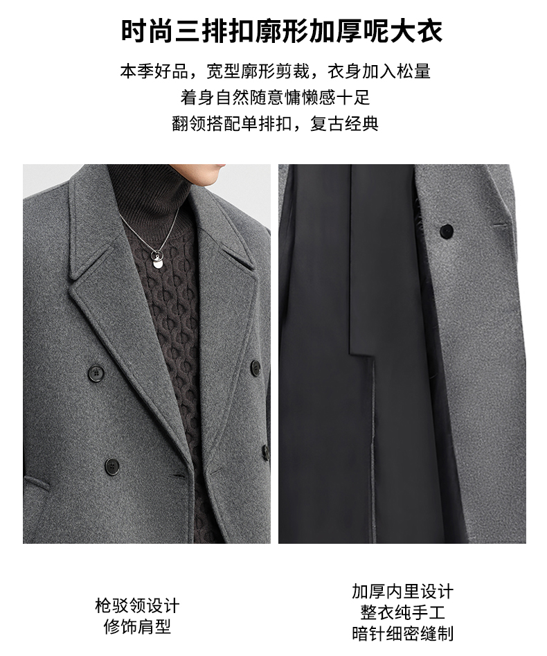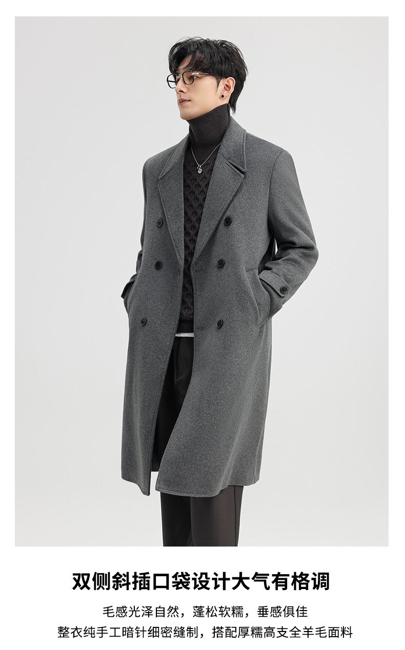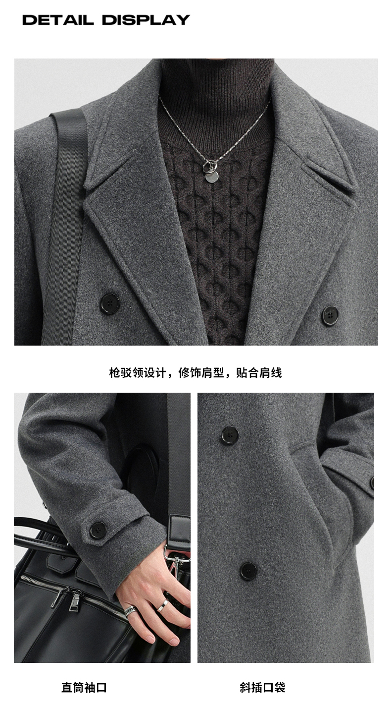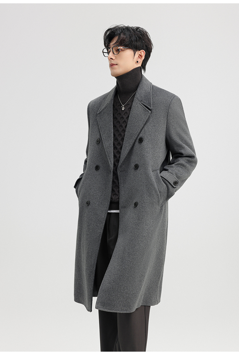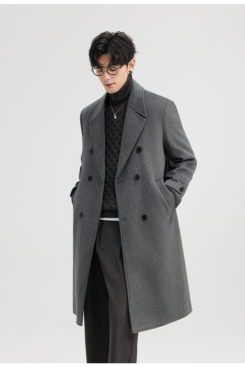 Woodpecker Woolen Coat for Men, Mid-Length, 2025 Winter New Style, Thickened Wool Double-Breasted Woolen Overcoat