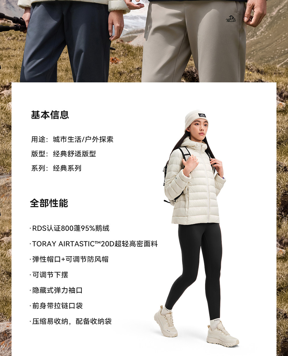 [Classic 3.0] Pelliot Goose down Ribbed down Jacket 800 Fill Power Women's New Outdoor Jacket Inner Liner Men's