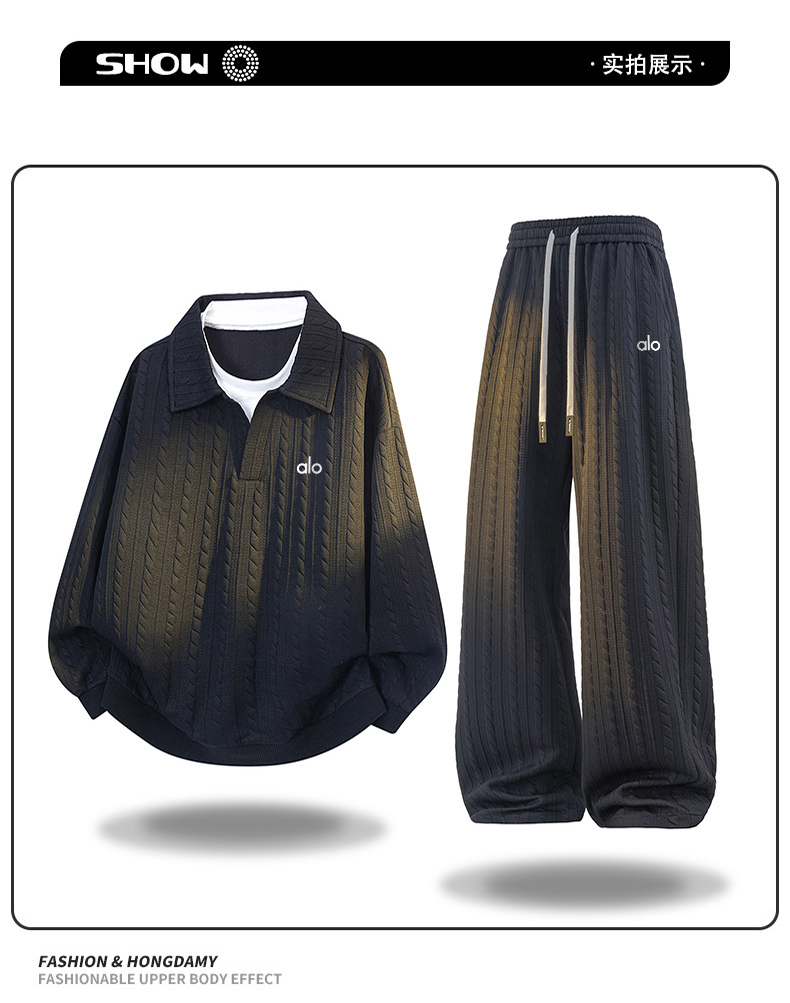 [Official Outlet] Alo Suit Long-Sleeve Autumn and Winter Plus-Size Long-Sleeve Sweatshirt with Fleece-Lined Pants Two-Piece Set