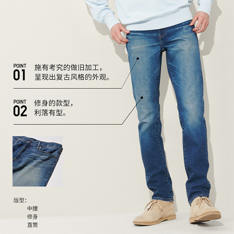 Uniqlo Men's Slim-Fit Jeans/Washed Casual Long Pants 475546 470528