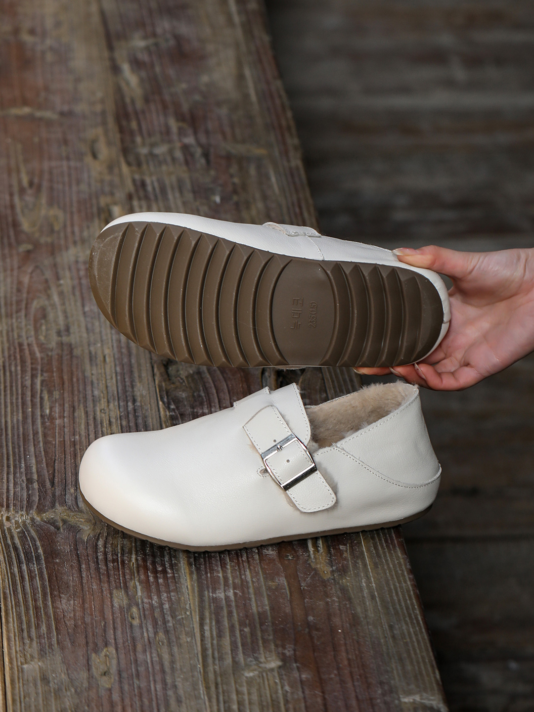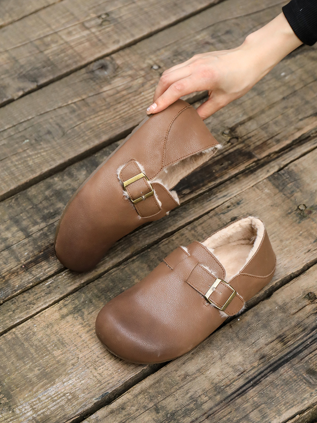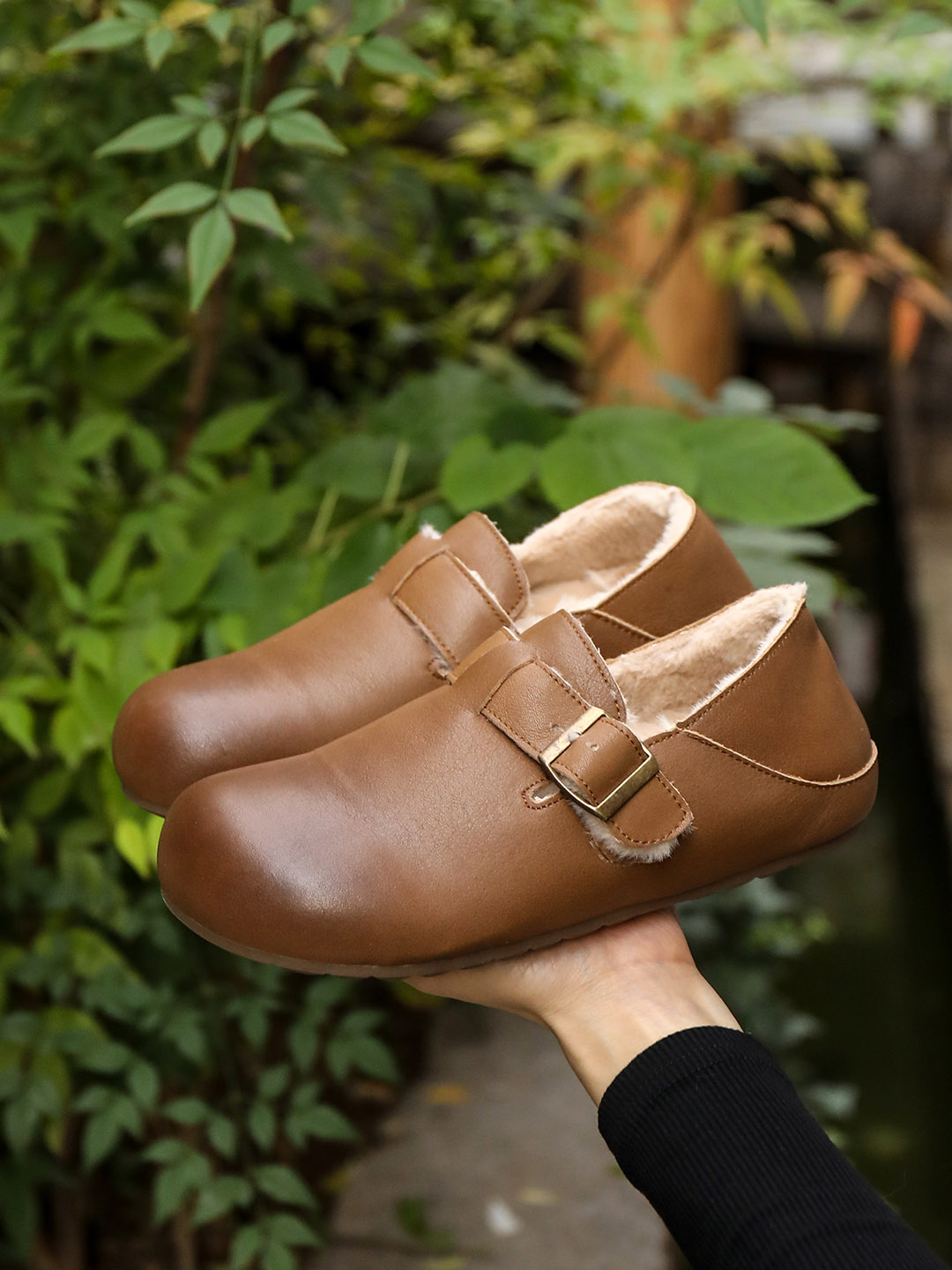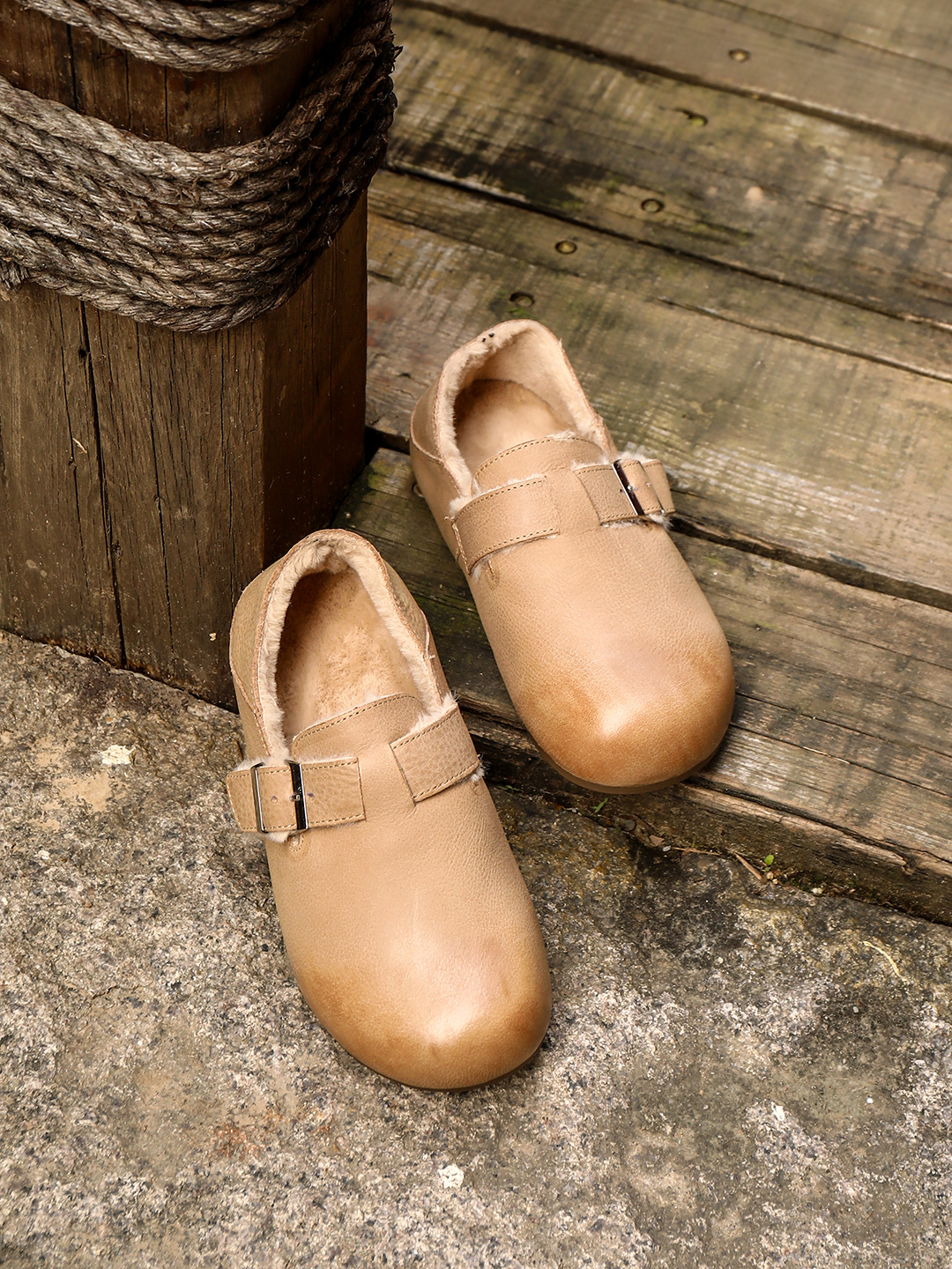 [Highly Recommended! Genuine Leather, Two-Way Wear] Elegant Winter Fleece-Lined Warm Cotton Shoes, Round Toe Slip-On Women's Shoes with Hidden Height Increase