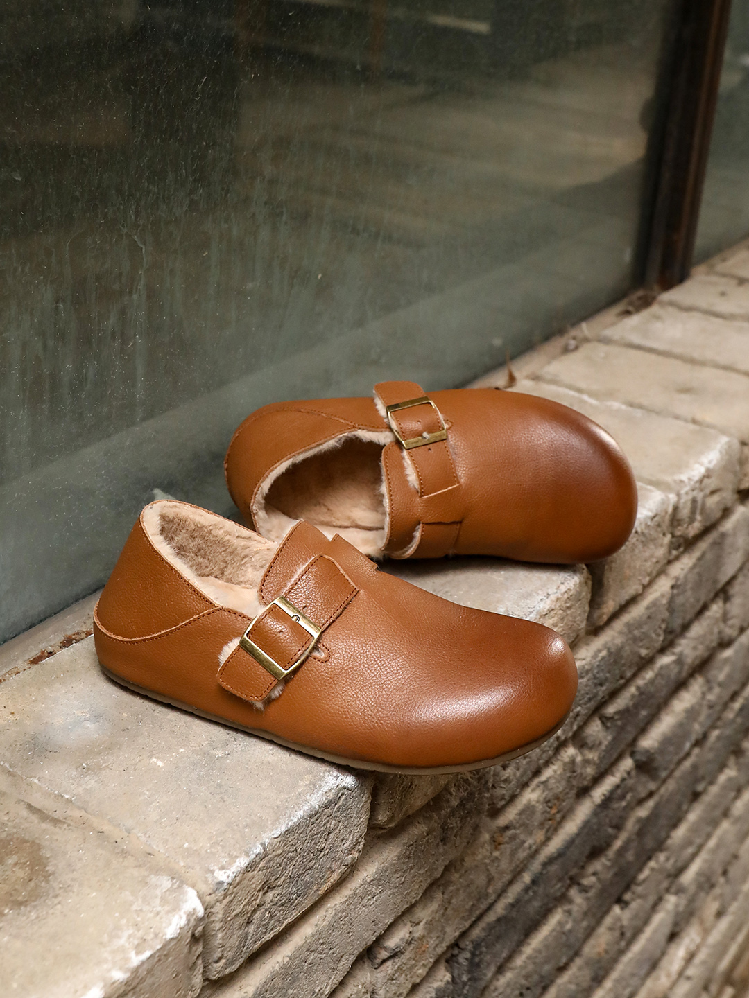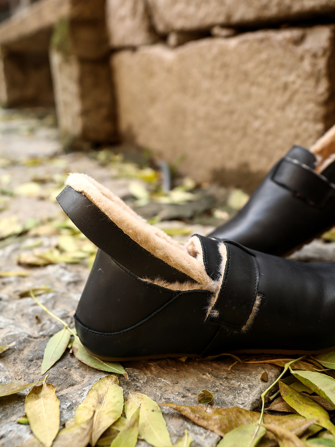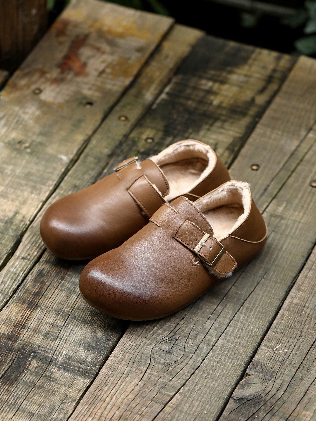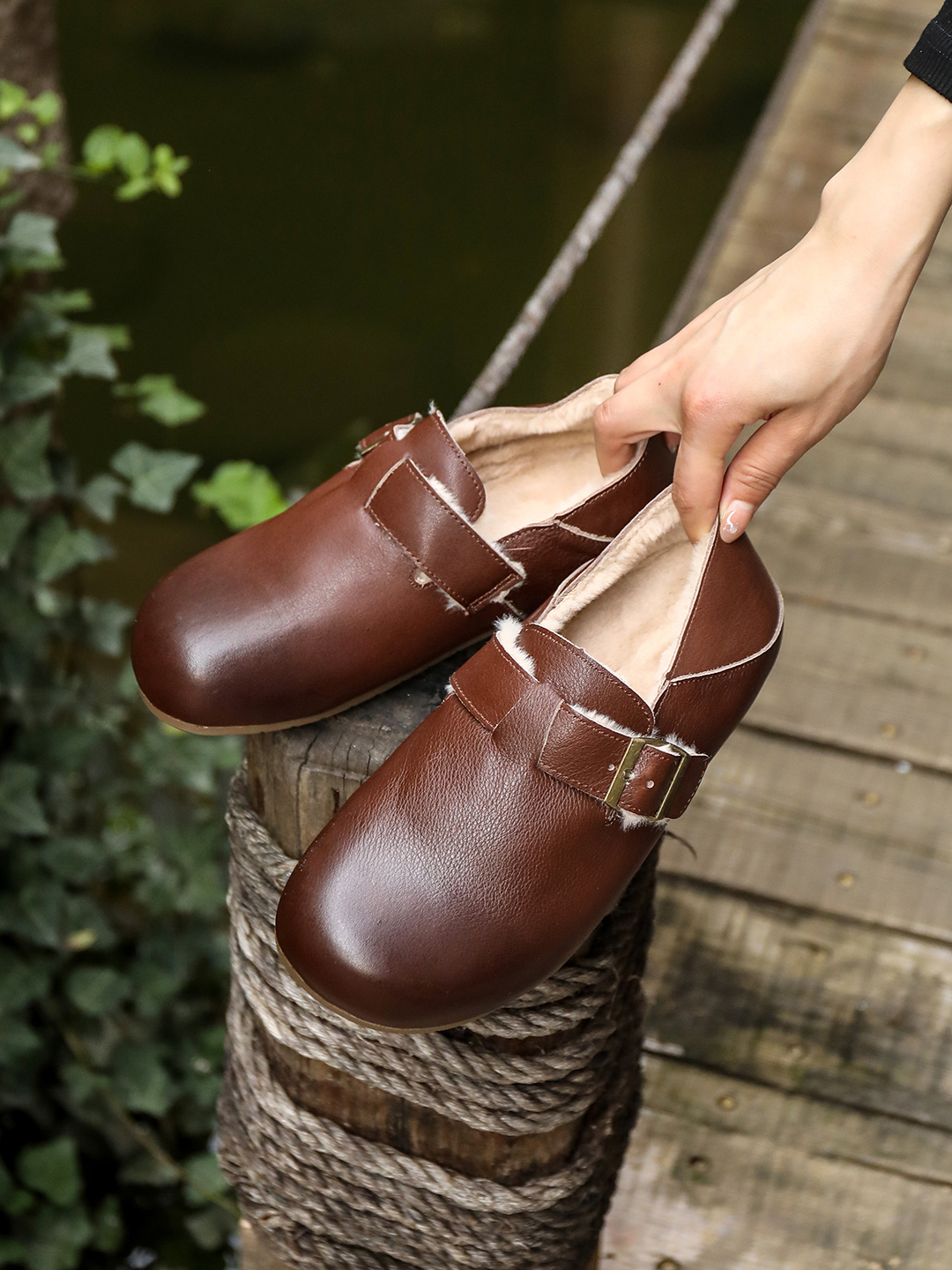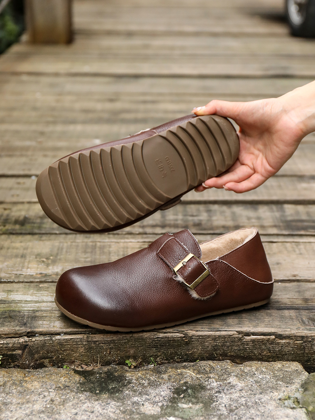 [Highly Recommended! Genuine Leather, Two-Way Wear] Elegant Winter Fleece-Lined Warm Cotton Shoes, Round Toe Slip-On Women's Shoes with Hidden Height Increase