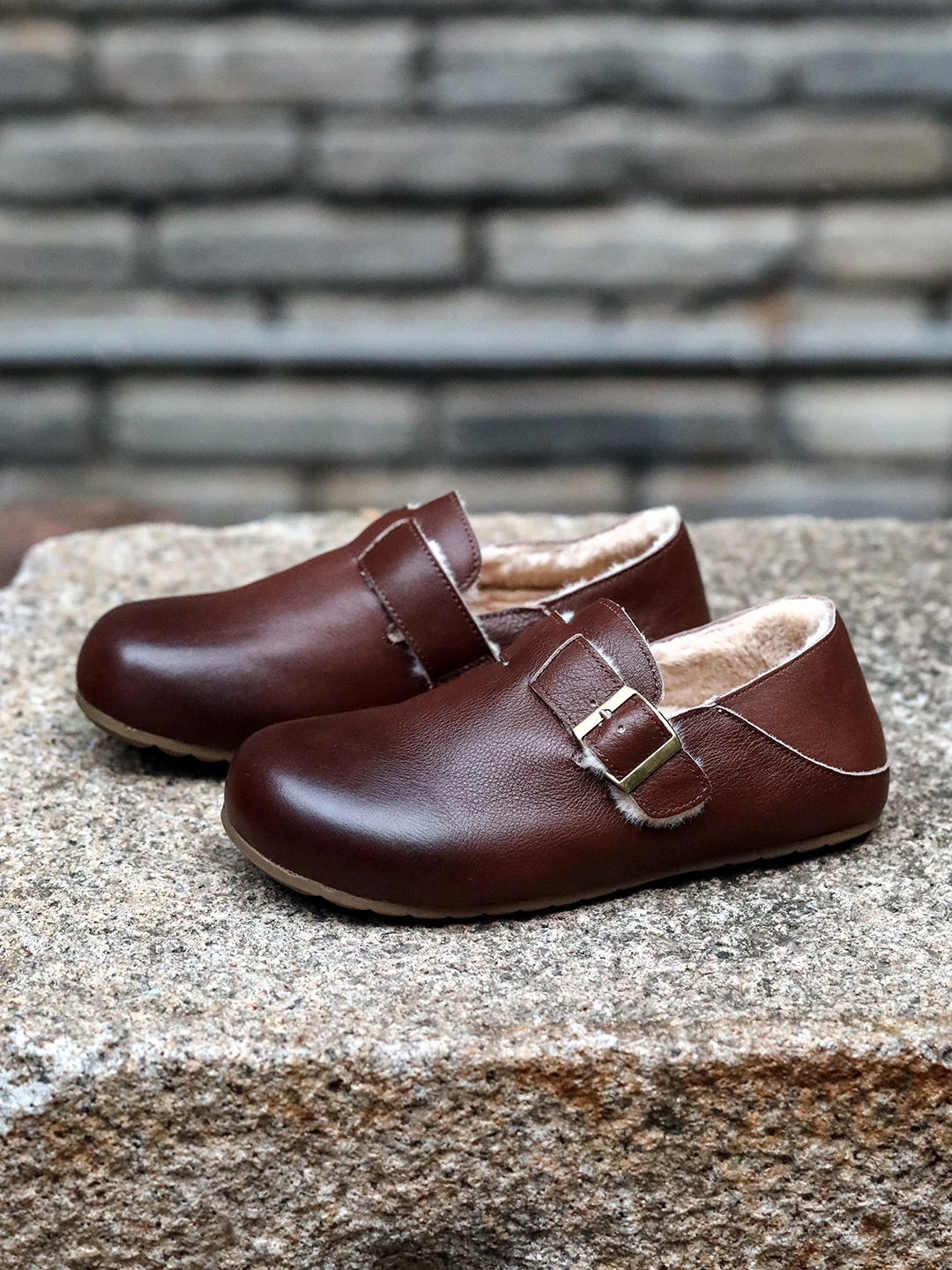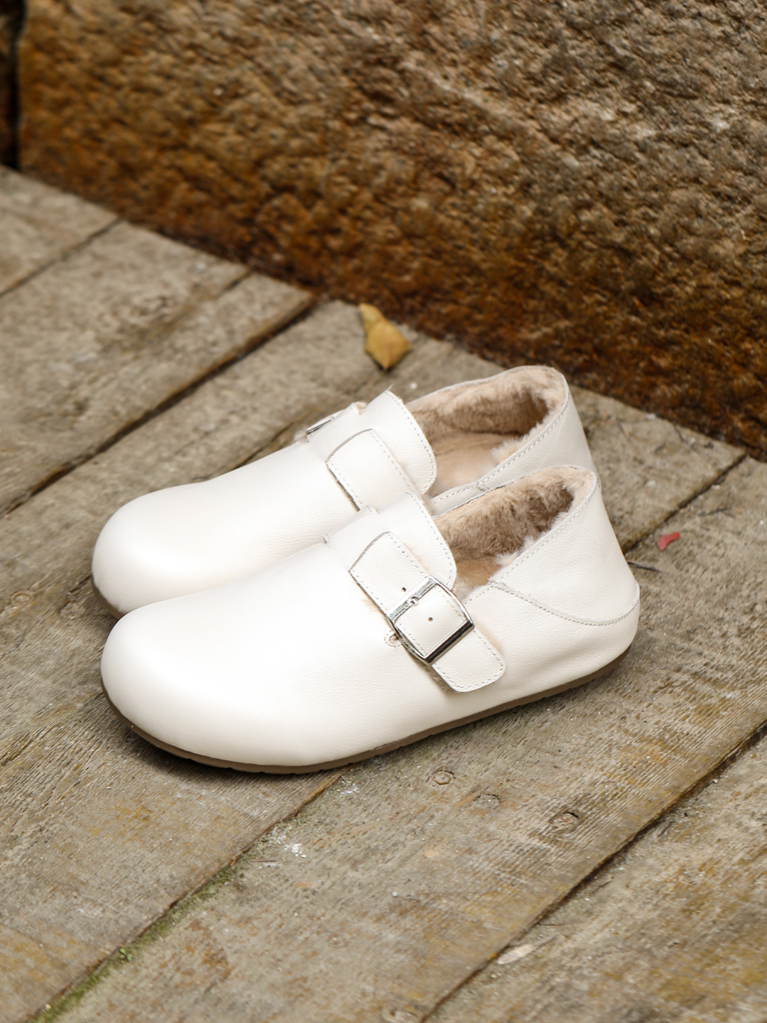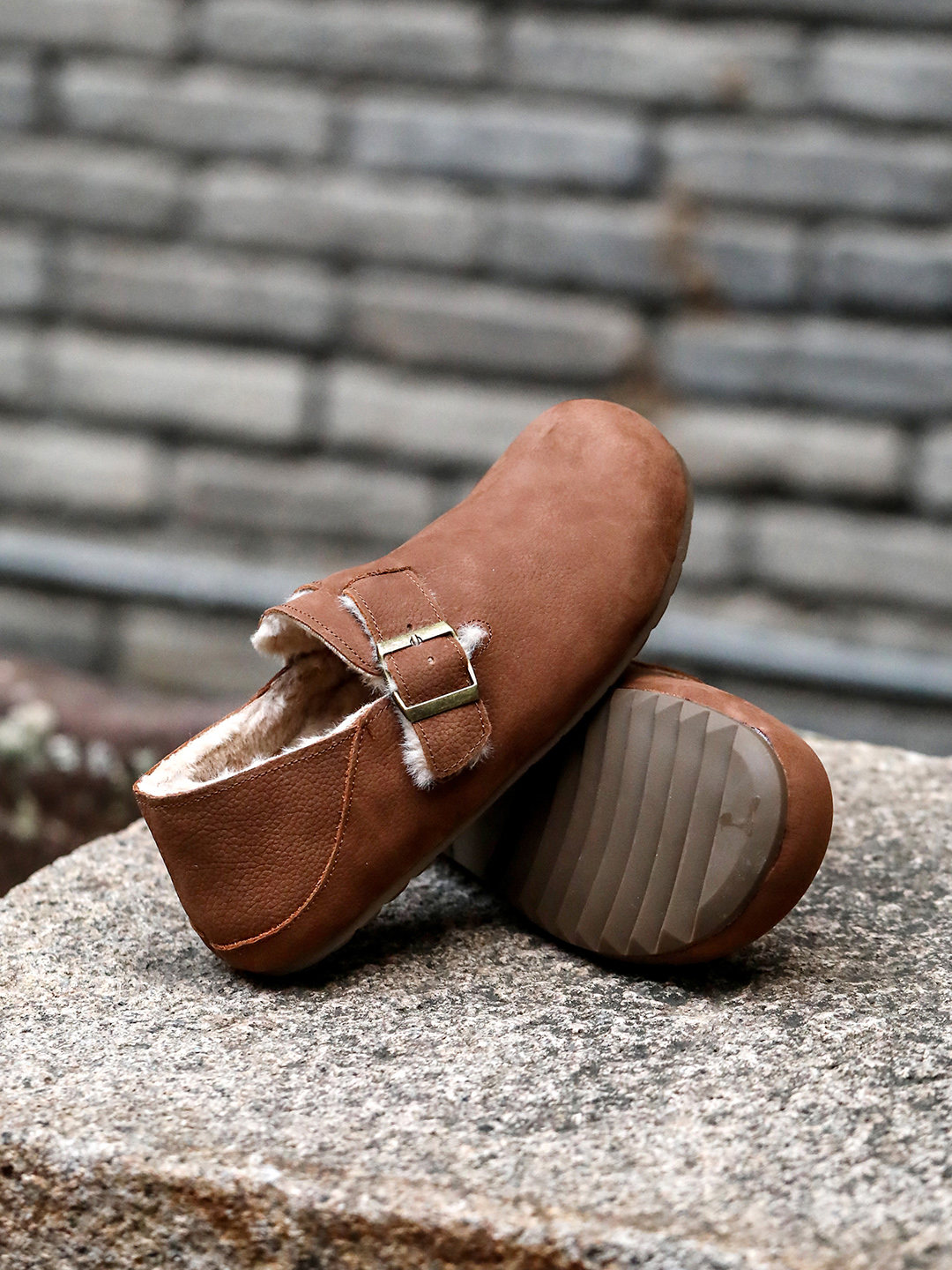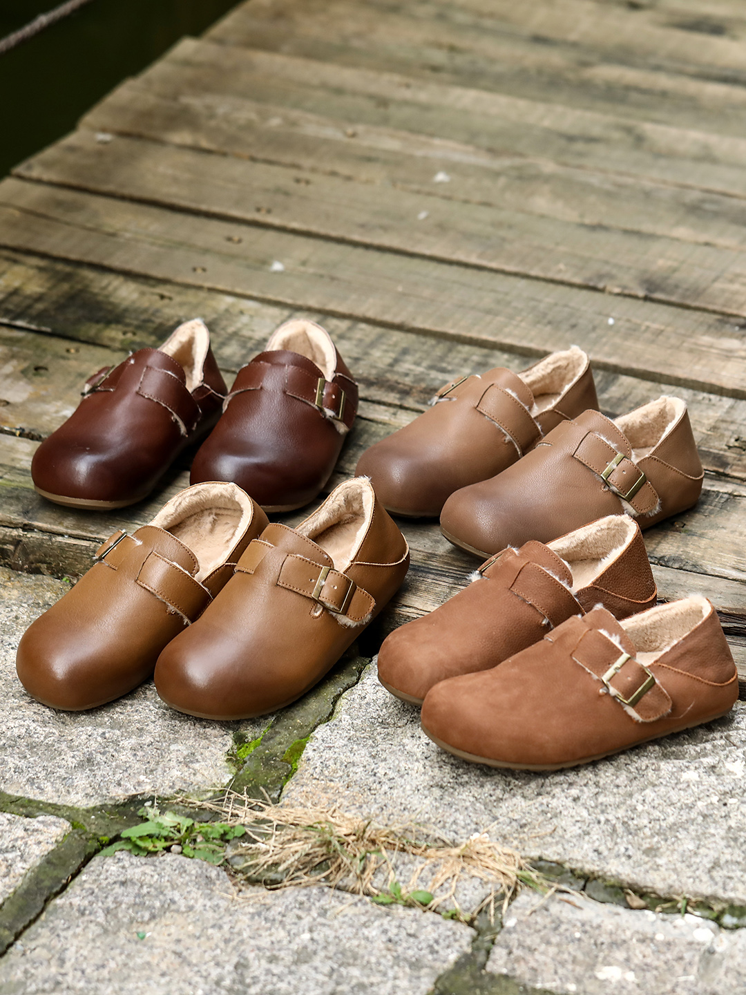 [Highly Recommended! Genuine Leather, Two-Way Wear] Elegant Winter Fleece-Lined Warm Cotton Shoes, Round Toe Slip-On Women's Shoes with Hidden Height Increase