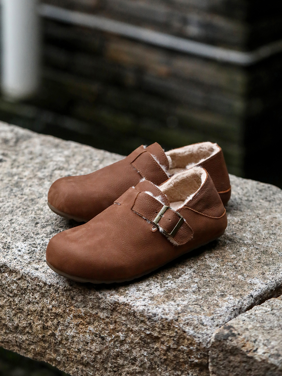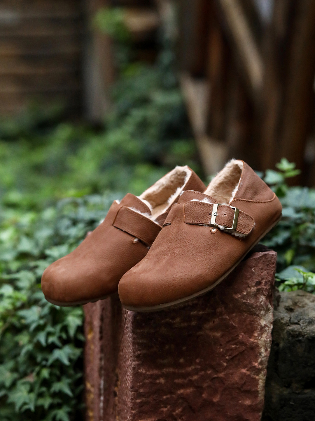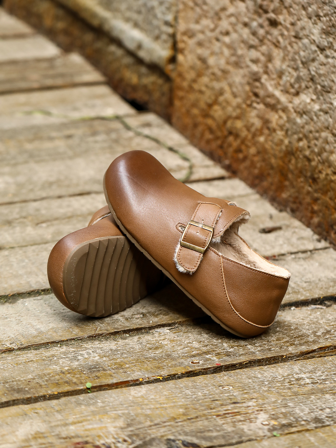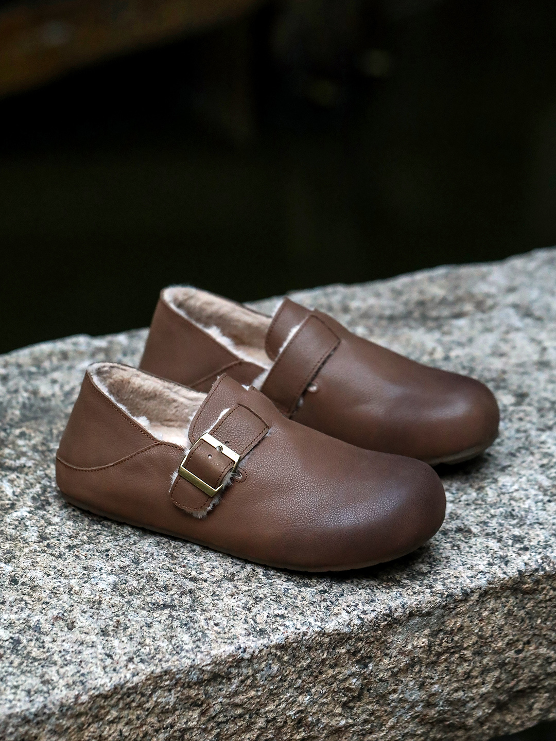 [Highly Recommended! Genuine Leather, Two-Way Wear] Elegant Winter Fleece-Lined Warm Cotton Shoes, Round Toe Slip-On Women's Shoes with Hidden Height Increase