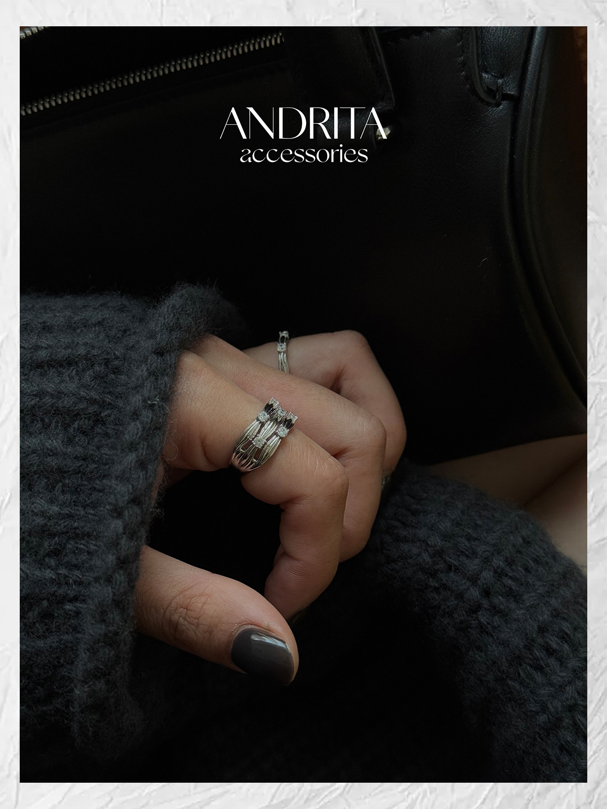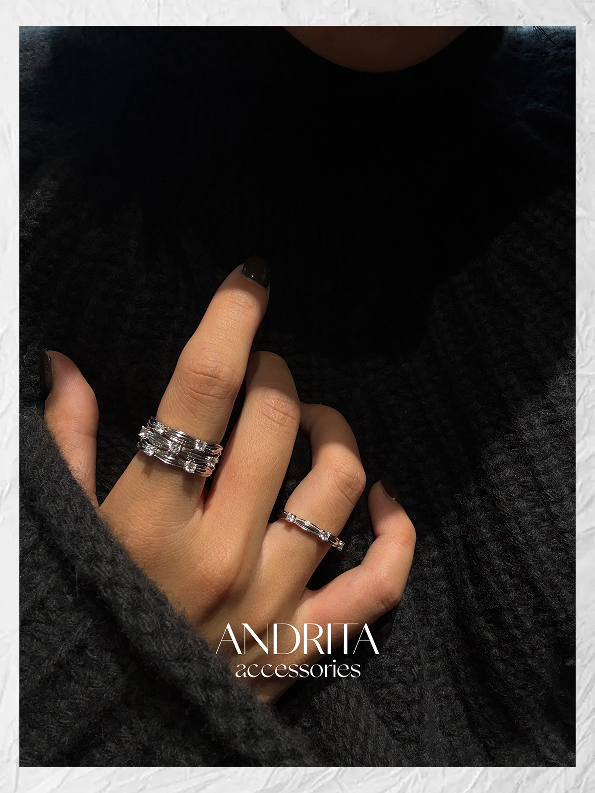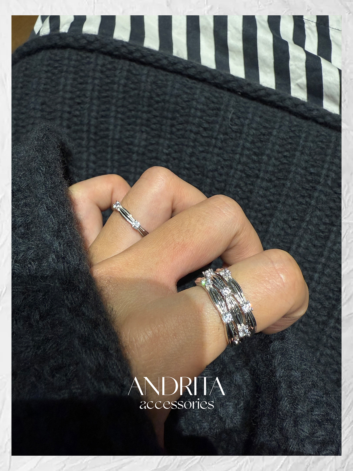 ANDRITA 25/925 three loops ribbon ring/single loop ribbon ring