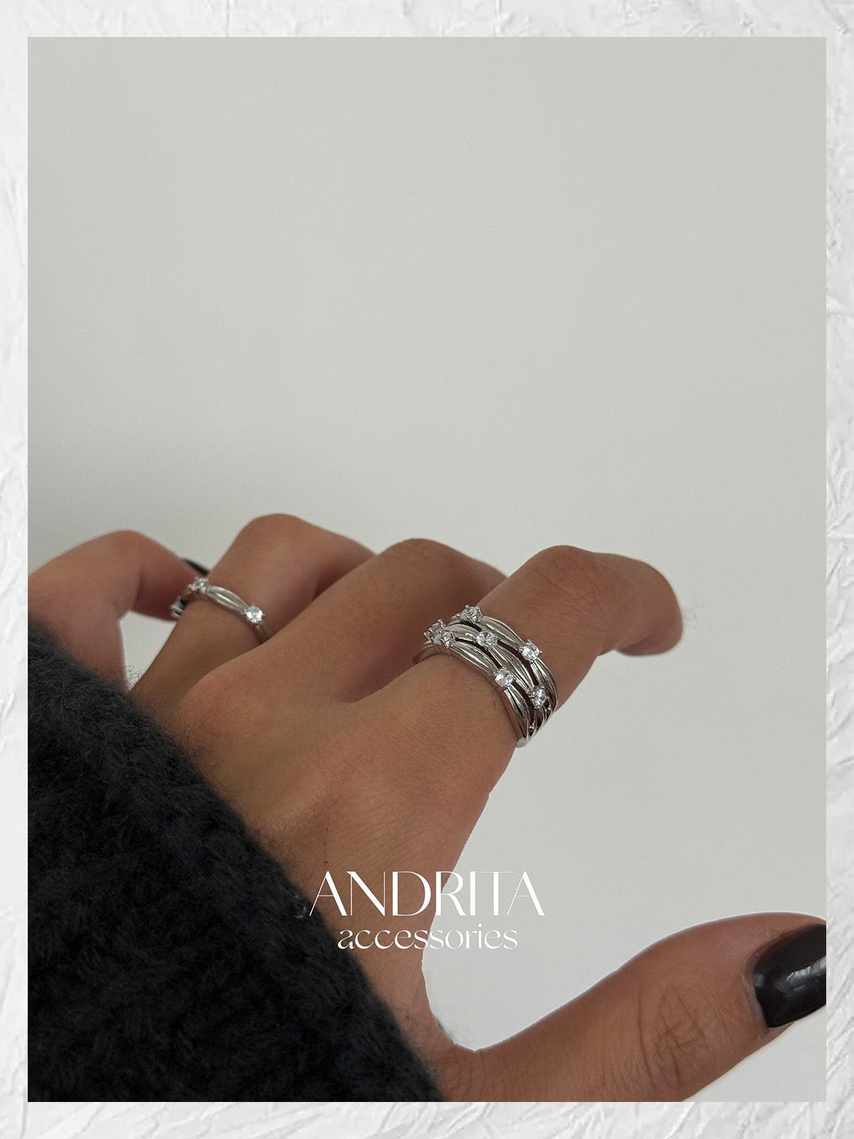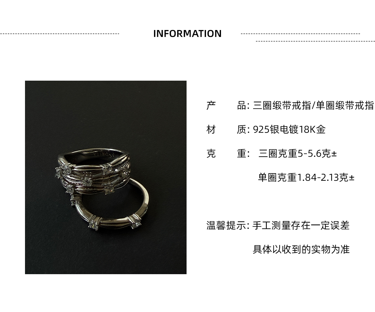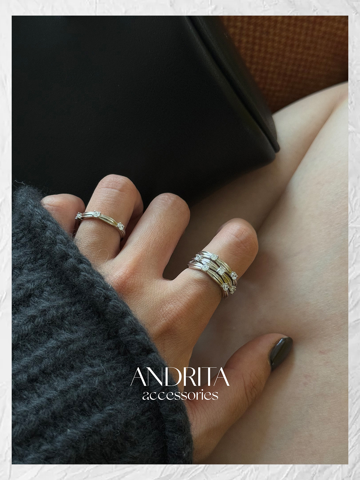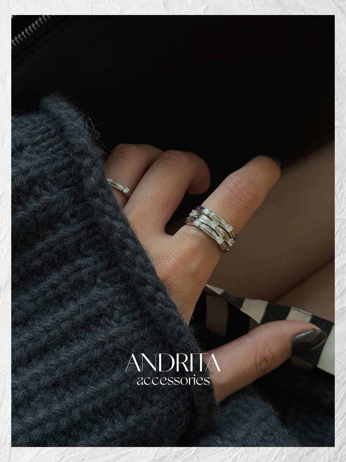 ANDRITA 25/925 three loops ribbon ring/single loop ribbon ring