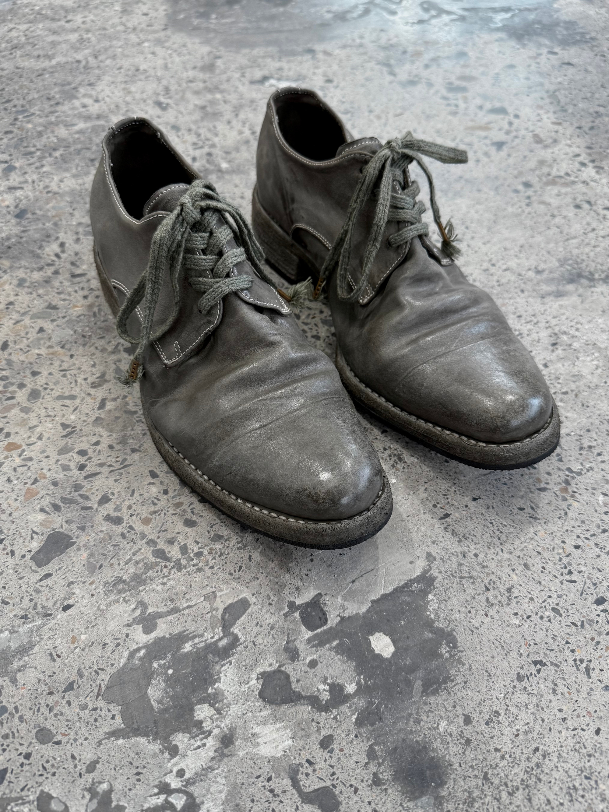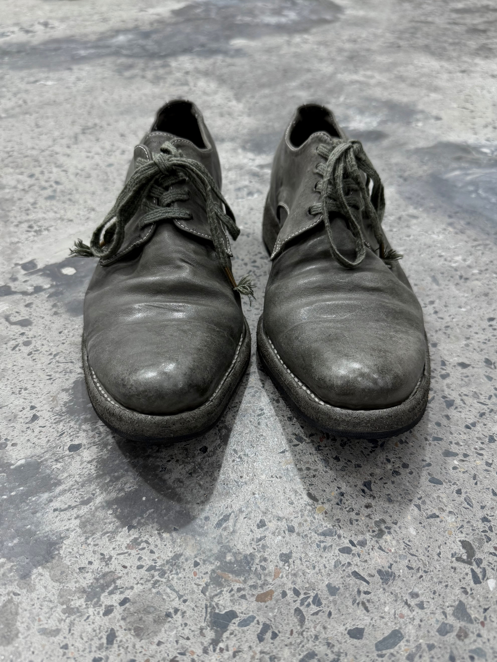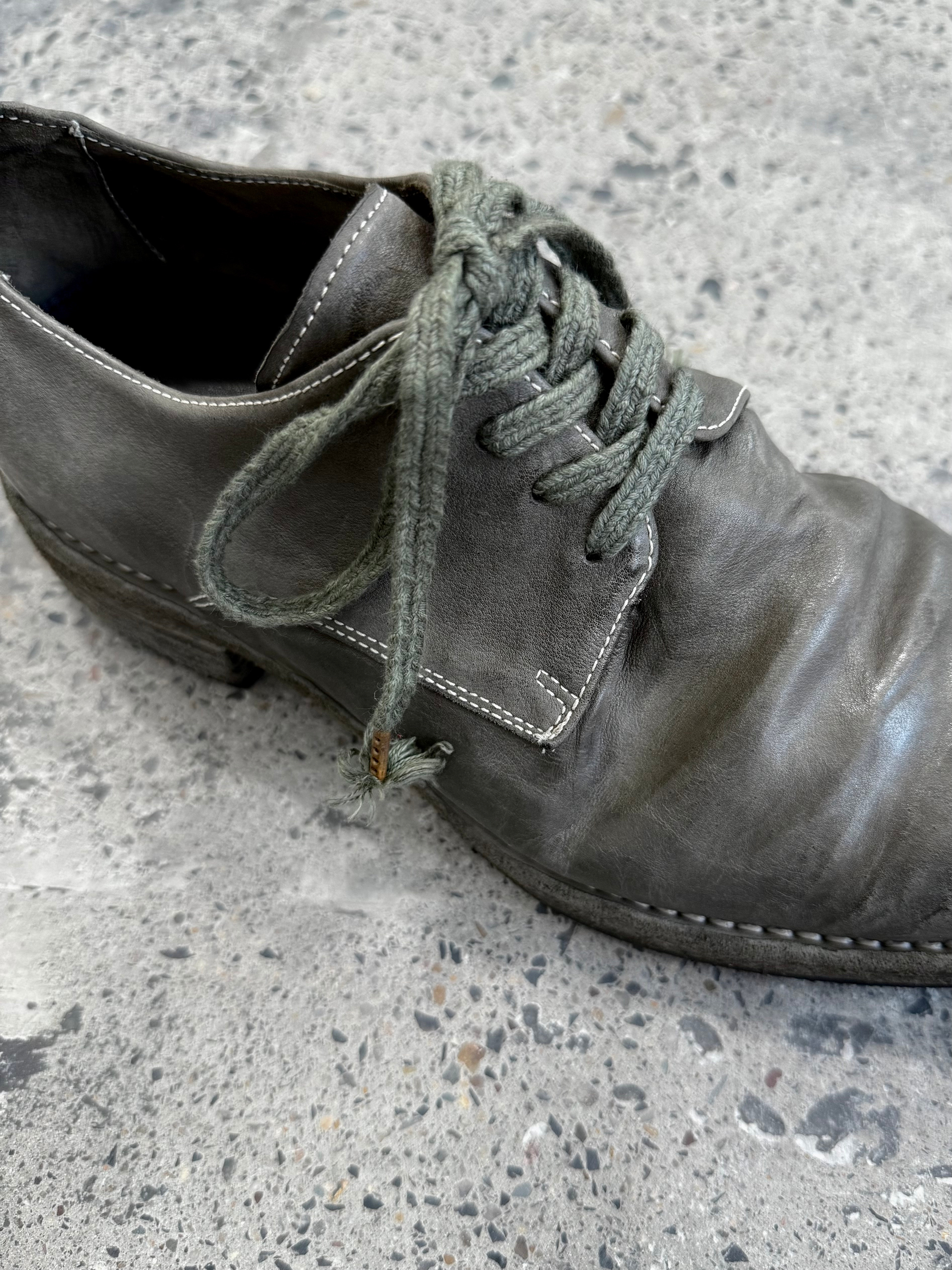 First-Layer Kangaroo Leather Pointed-Toe Lace-Up Dark Avant-Garde Hand-Stitched Goodyear Welted Water-Washed Artisan Derby Leather Shoes 2600L