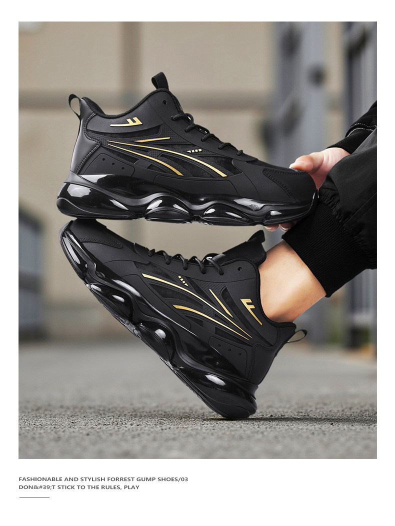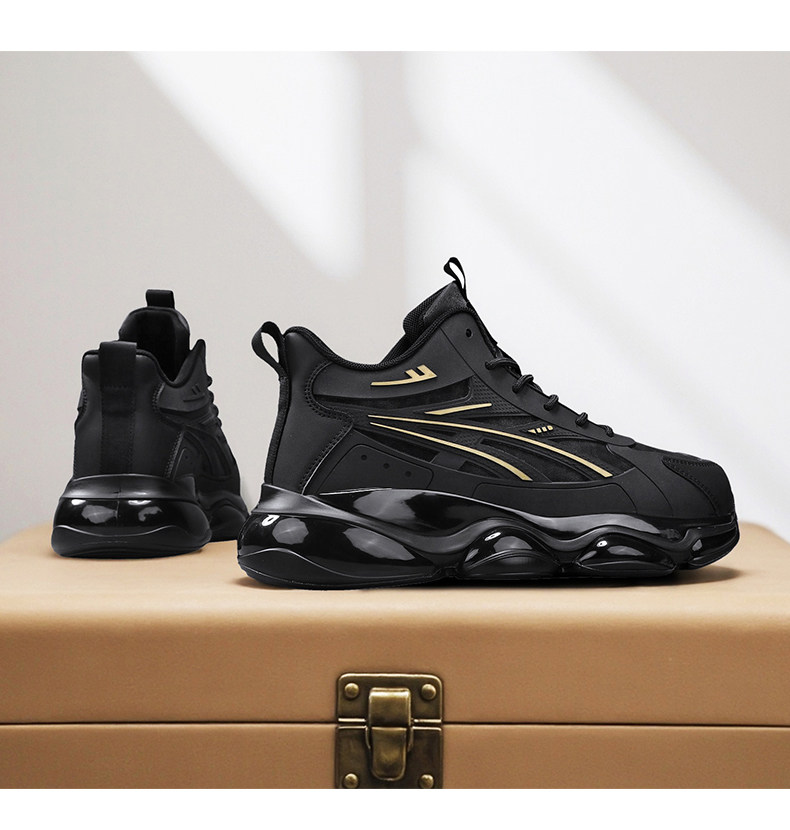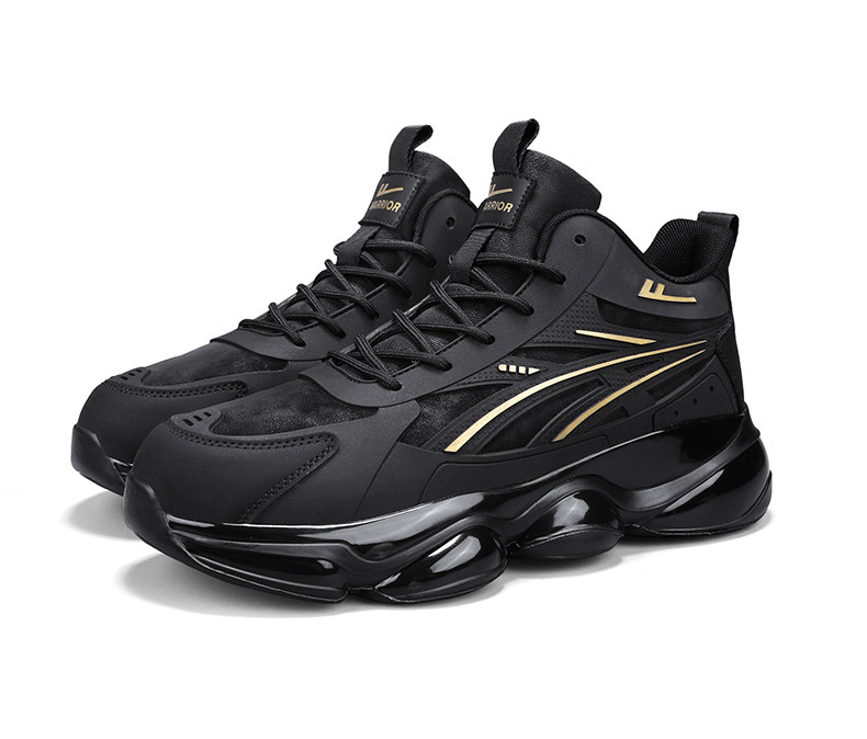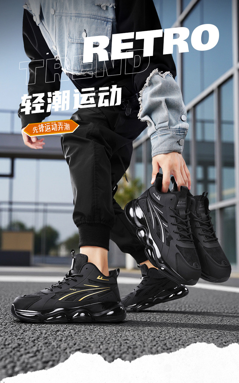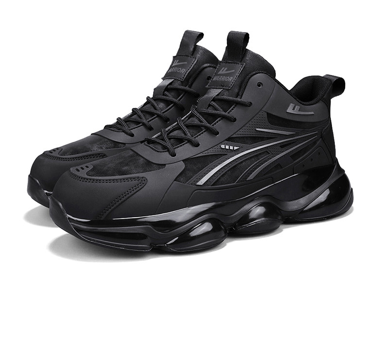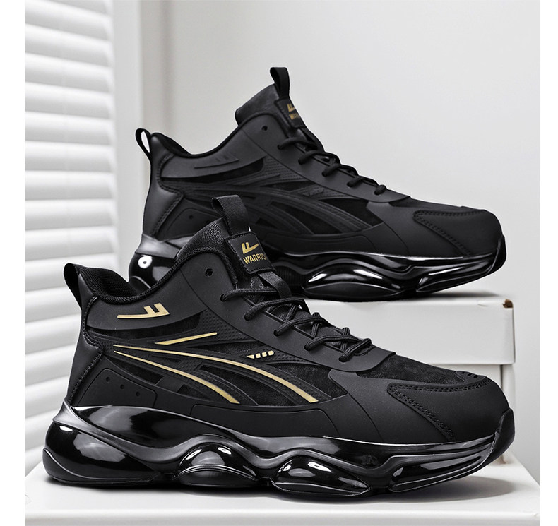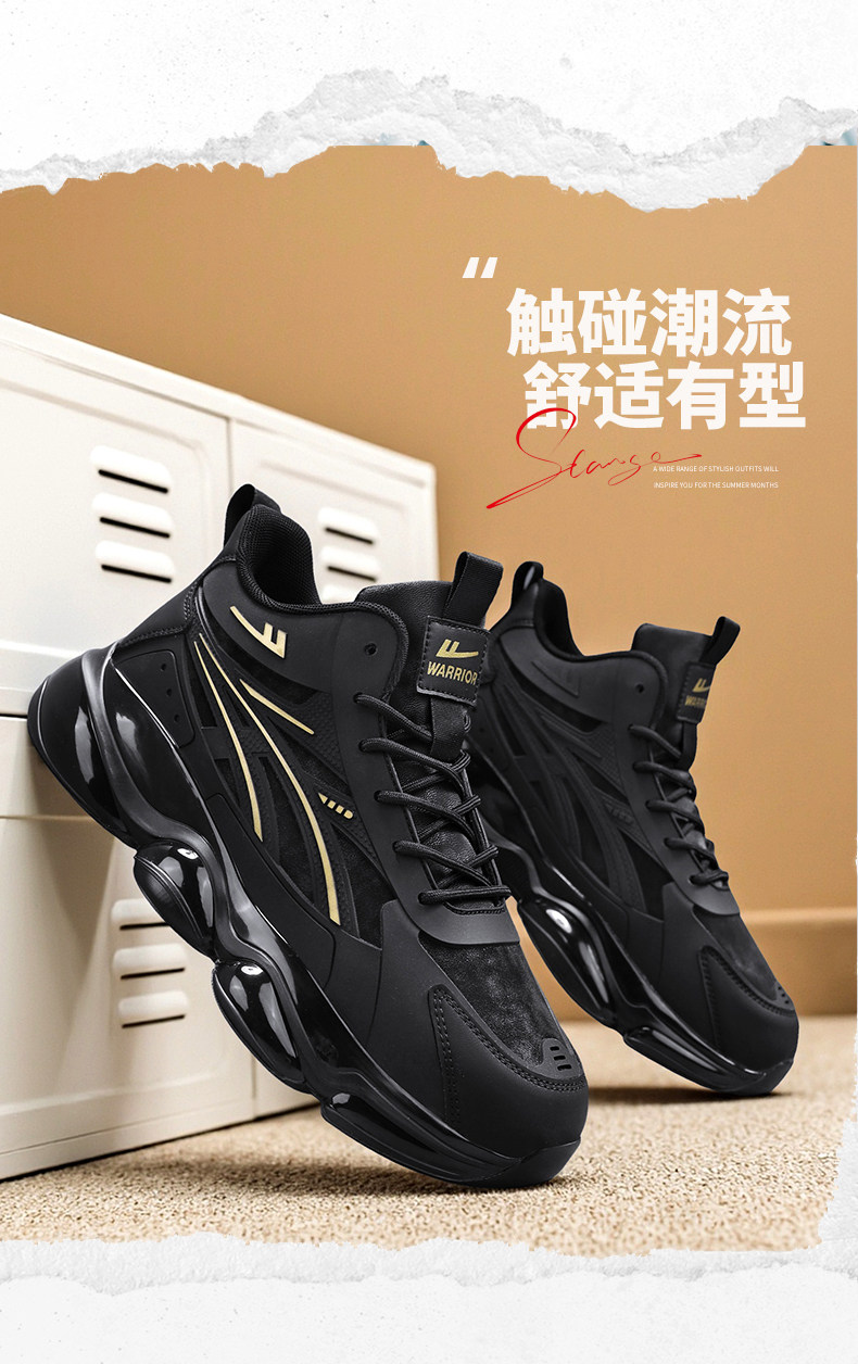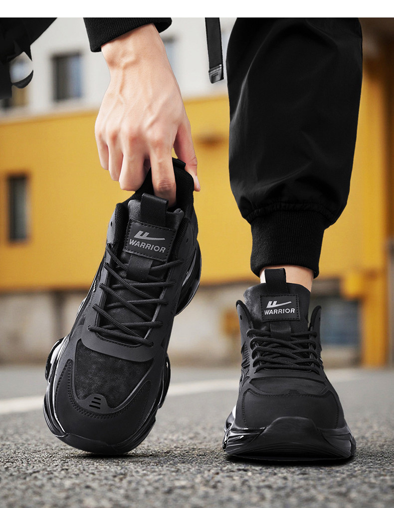 Pull-Back Black Warrior Sports Dad Shoes Men's High-Top Leather Waterproof Autumn and Winter Running Shoes Men's Air Cushion Soft Sole Shock Absorption