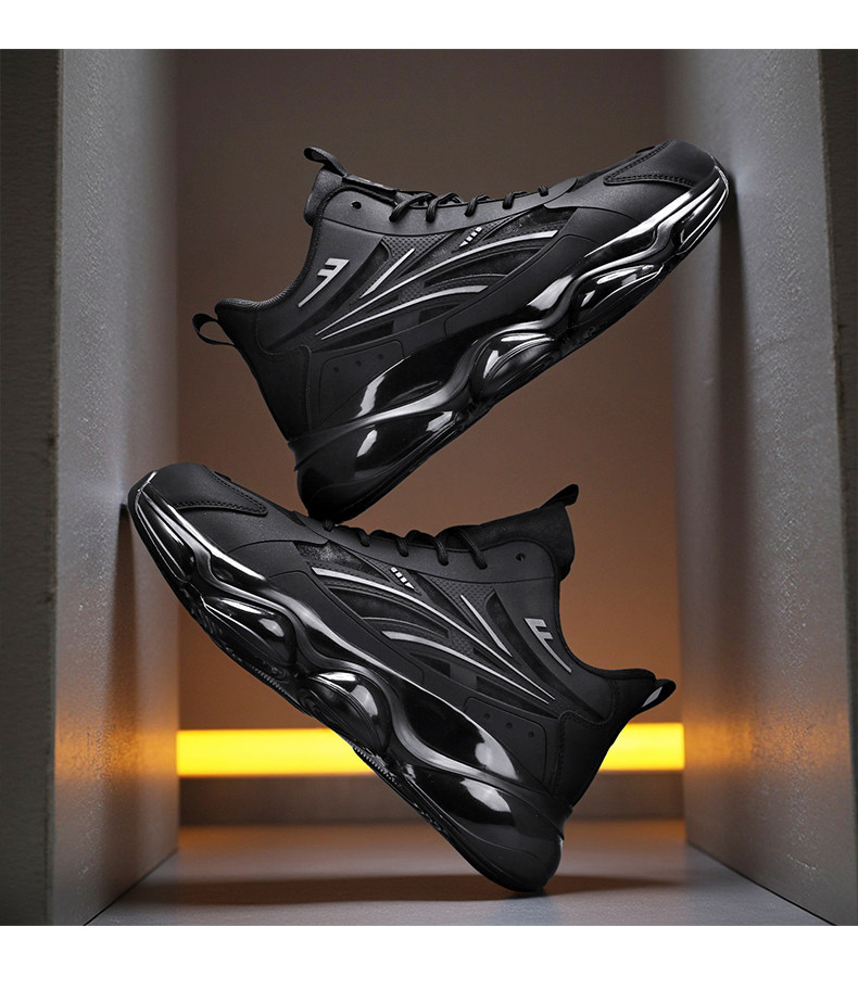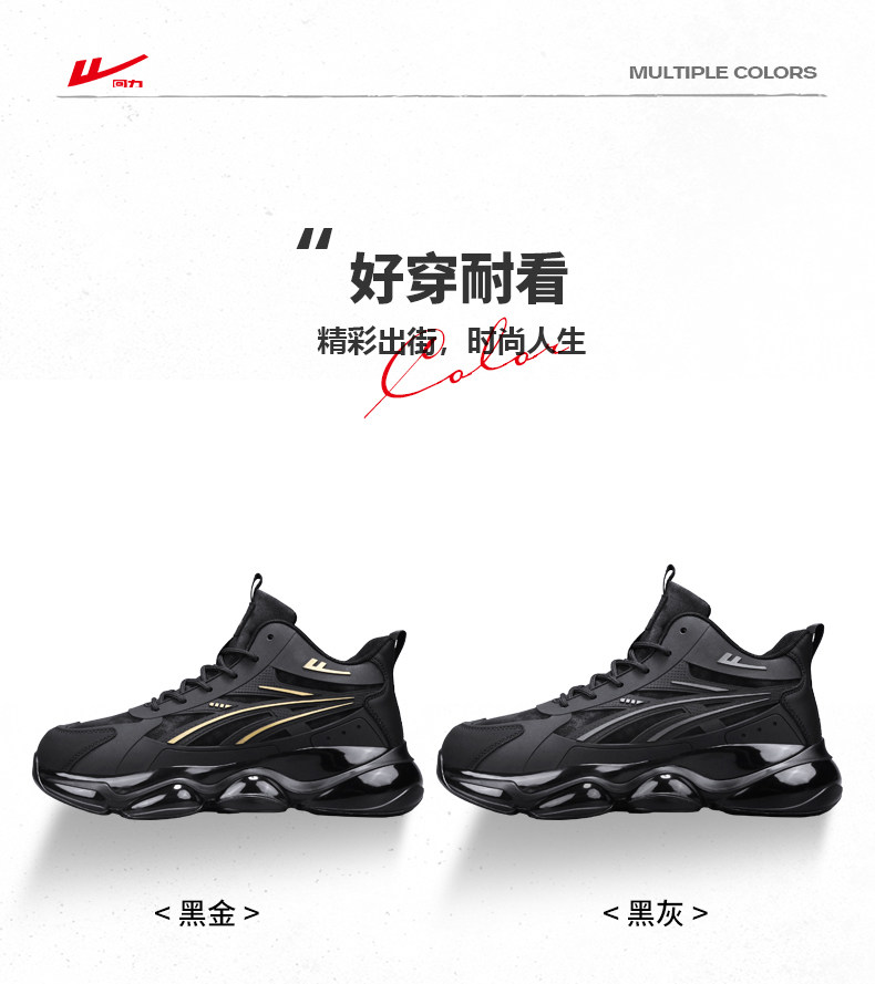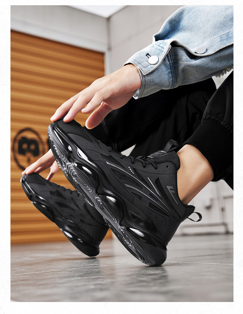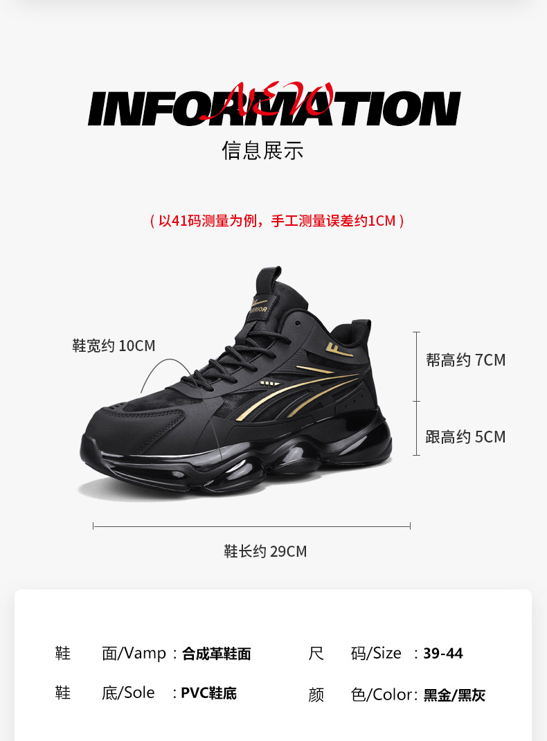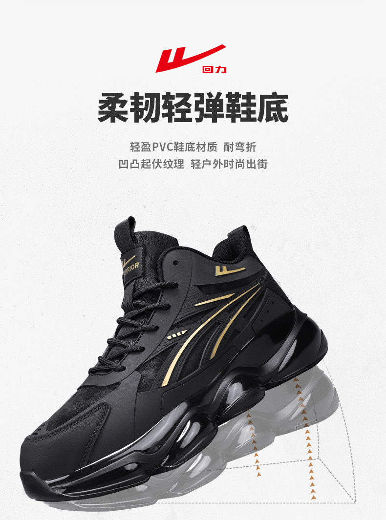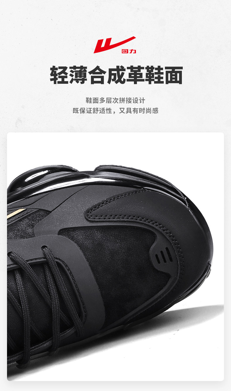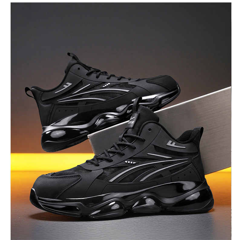 Pull-Back Black Warrior Sports Dad Shoes Men's High-Top Leather Waterproof Autumn and Winter Running Shoes Men's Air Cushion Soft Sole Shock Absorption