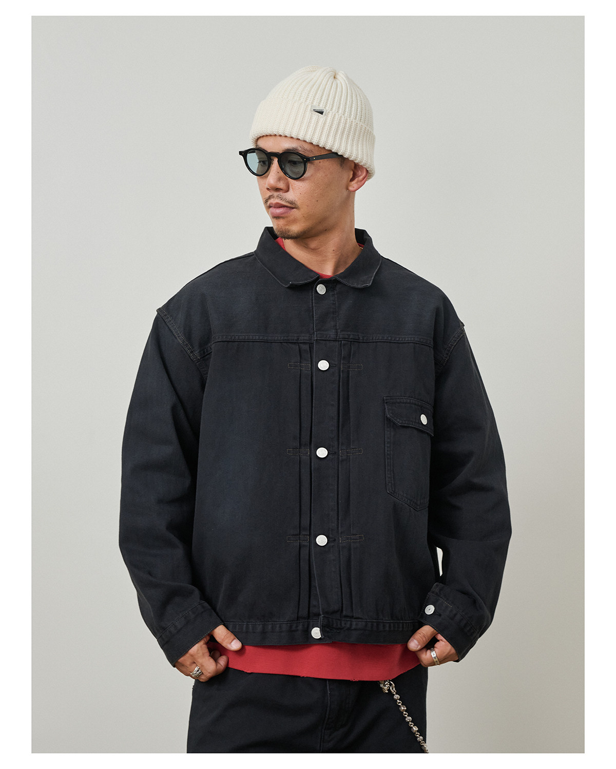 Broshood 25Aw Japanese-Style Loose Asut Dyeing Washed Vintage Black Denim Jacket Coat Top