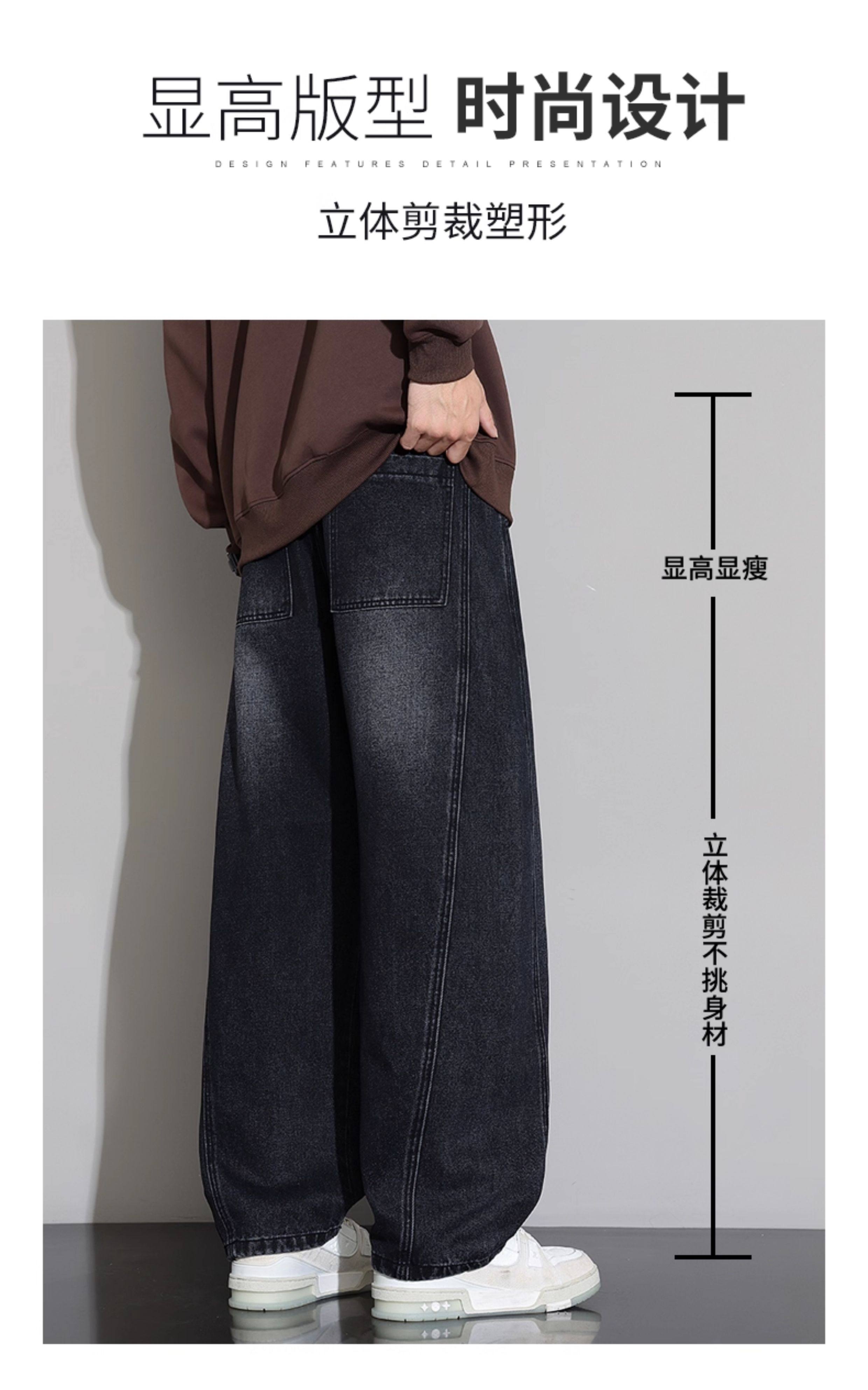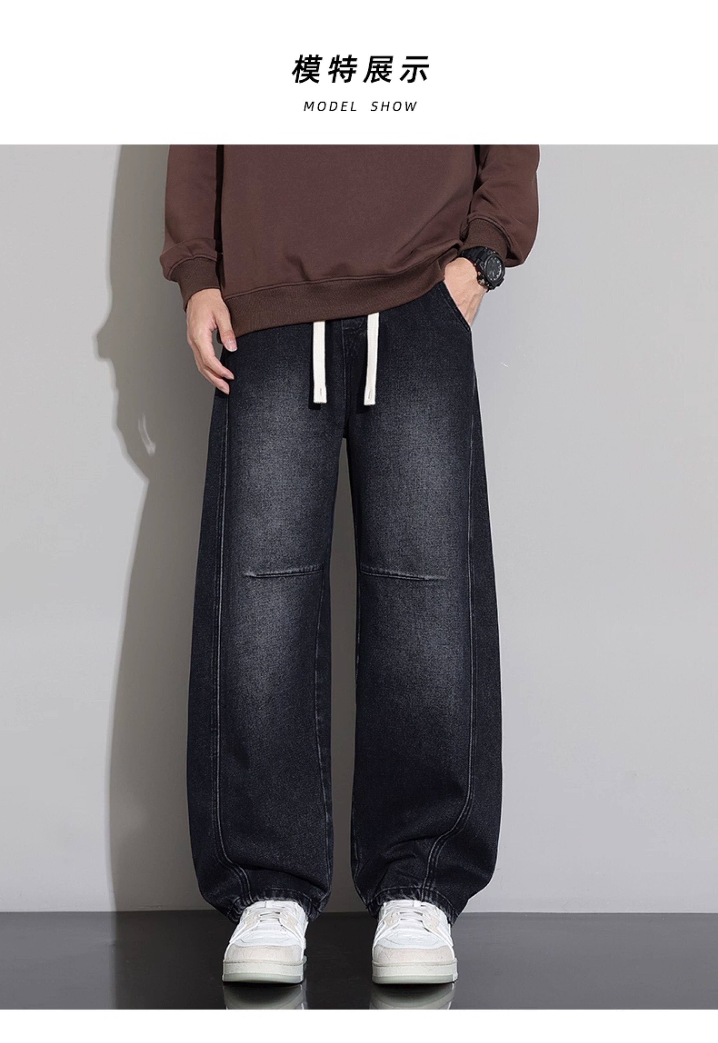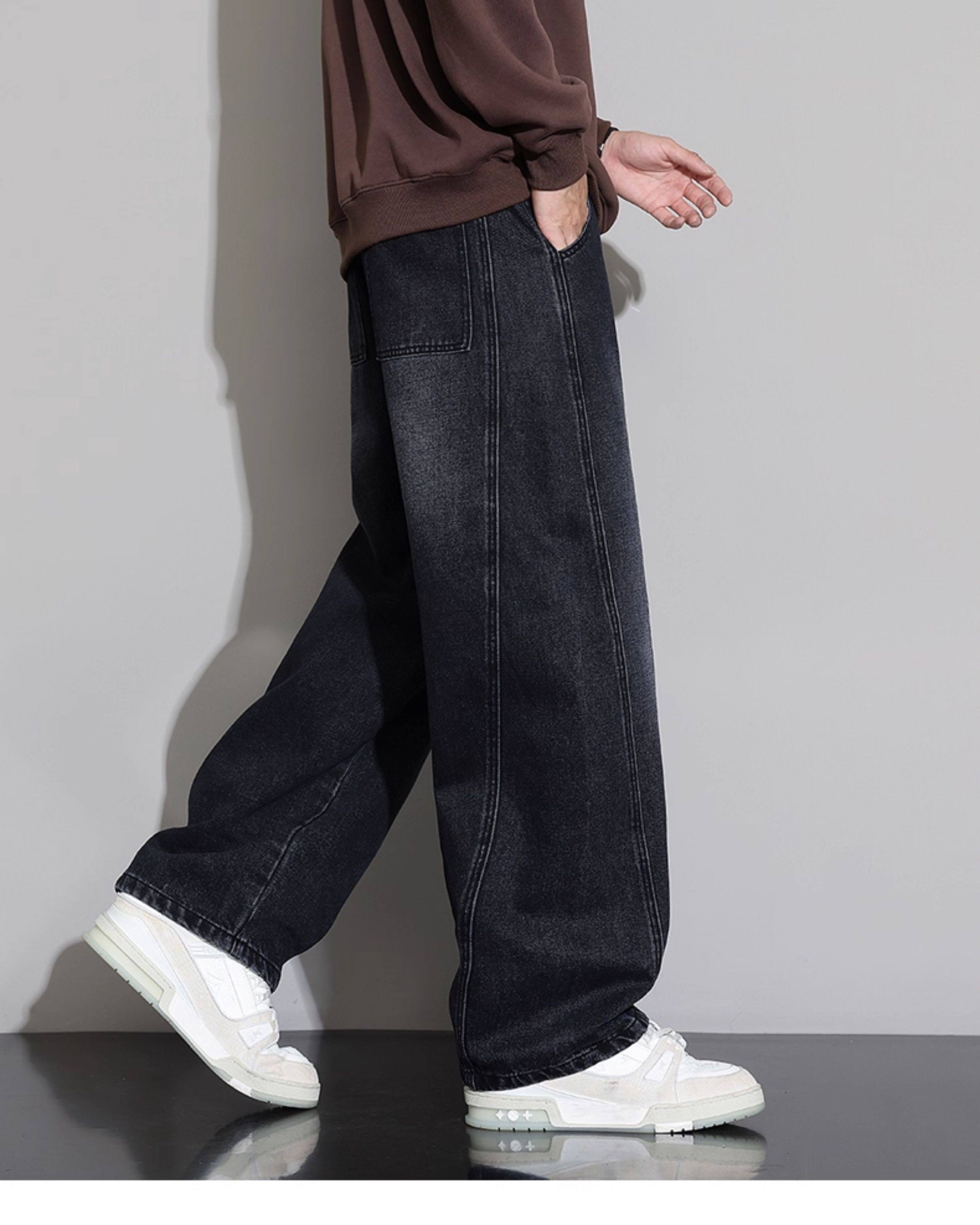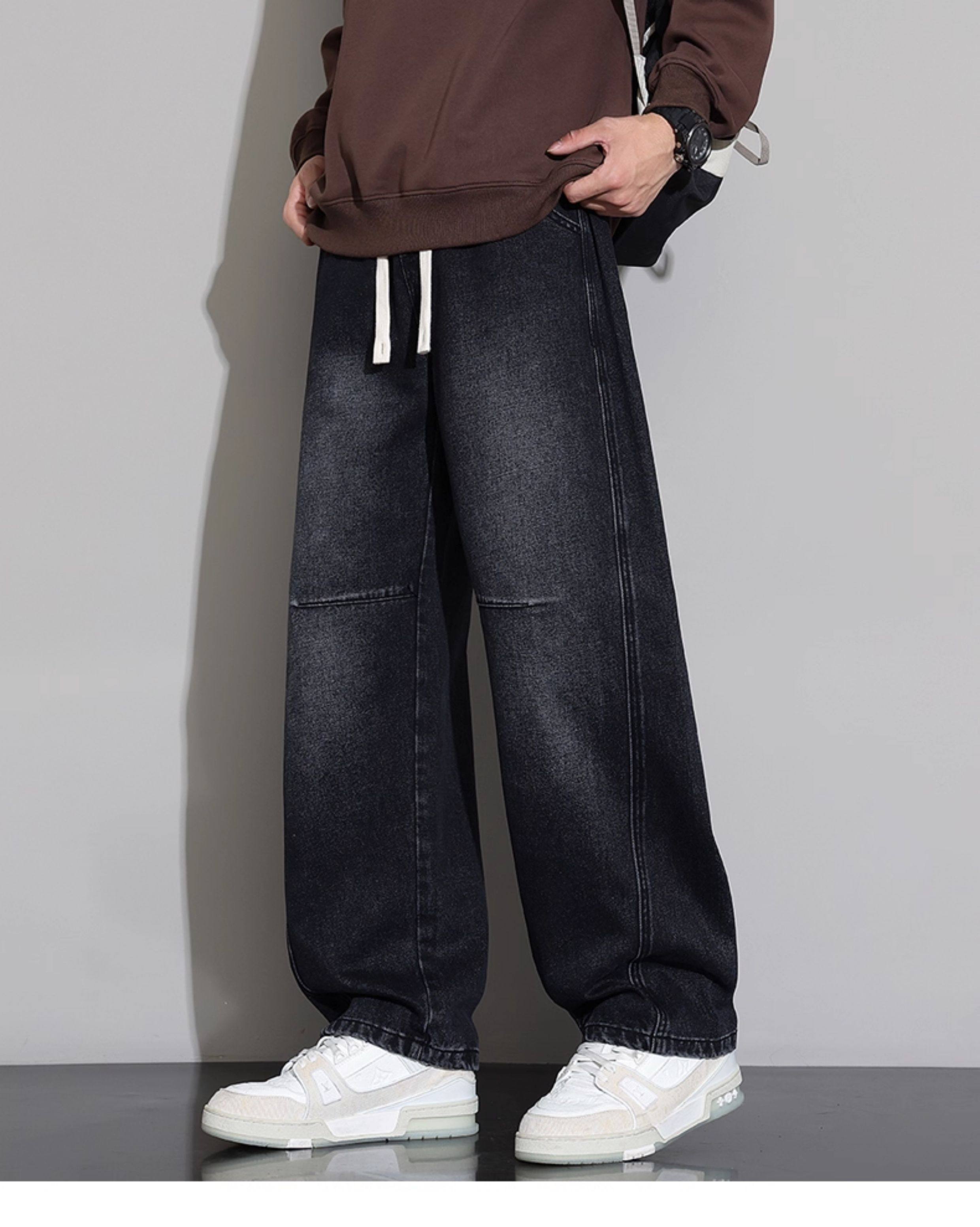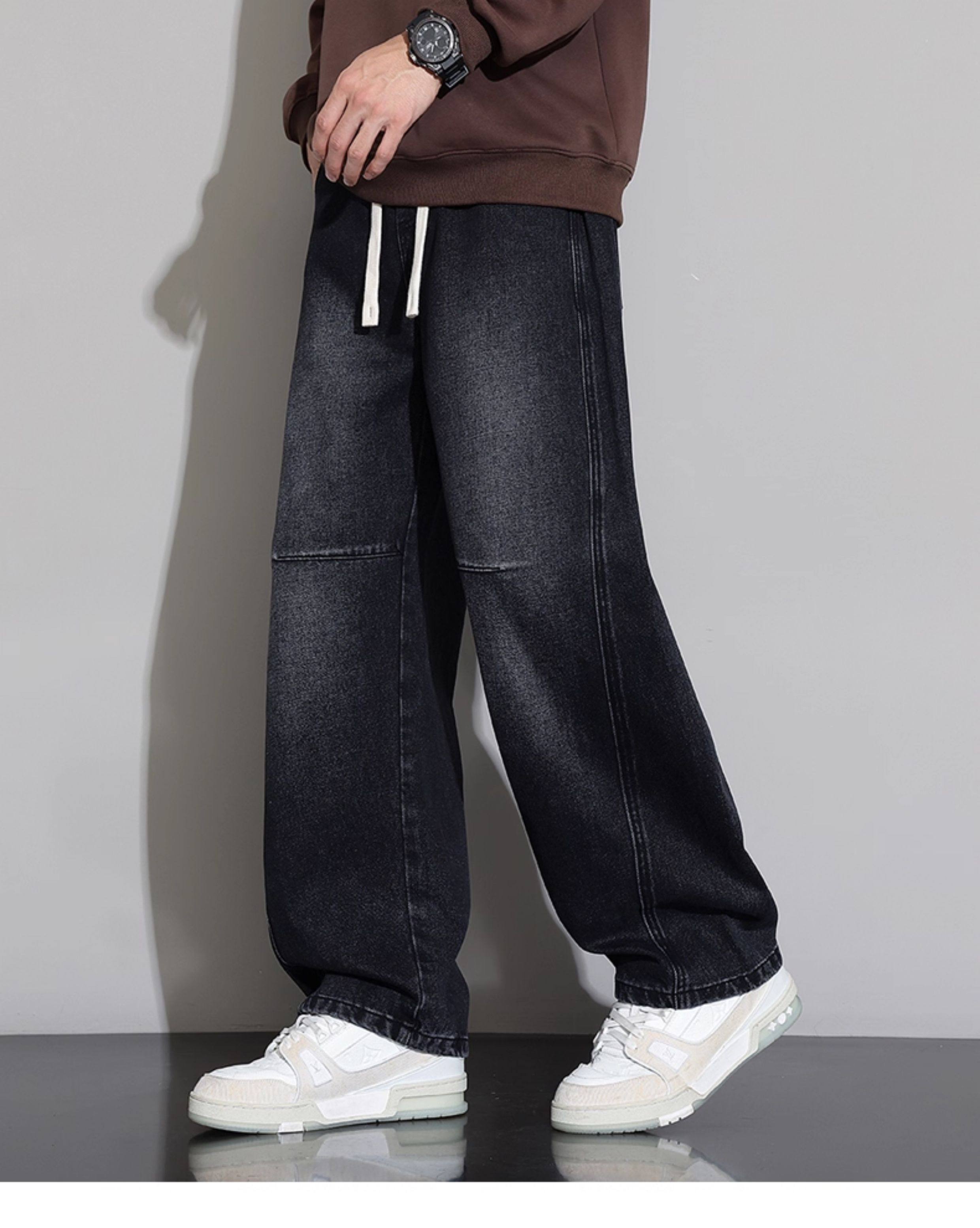Men's Curved-Leg Jeans, Autumn and Winter 2025 New Style, Loose Straight-Leg Casual Pants, Thickened and Fleece-Lined