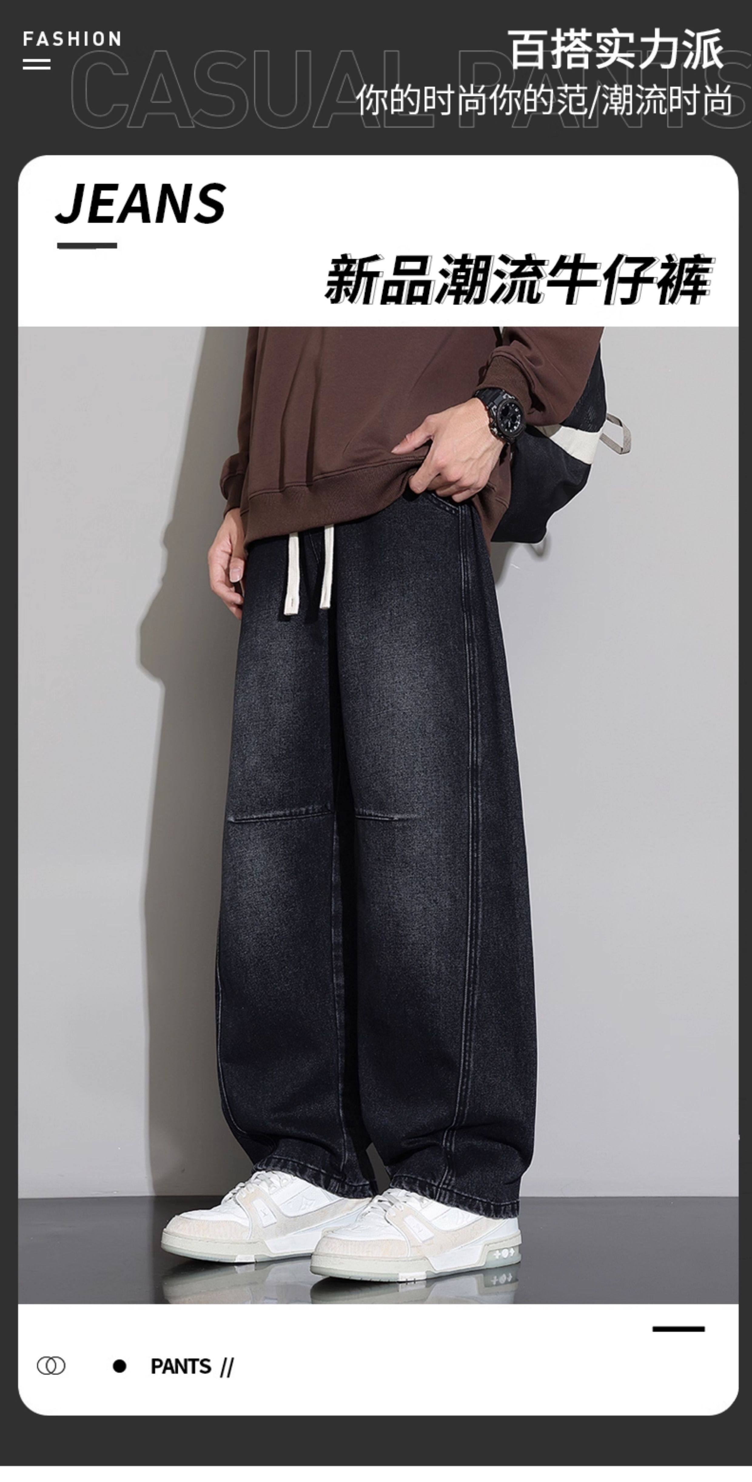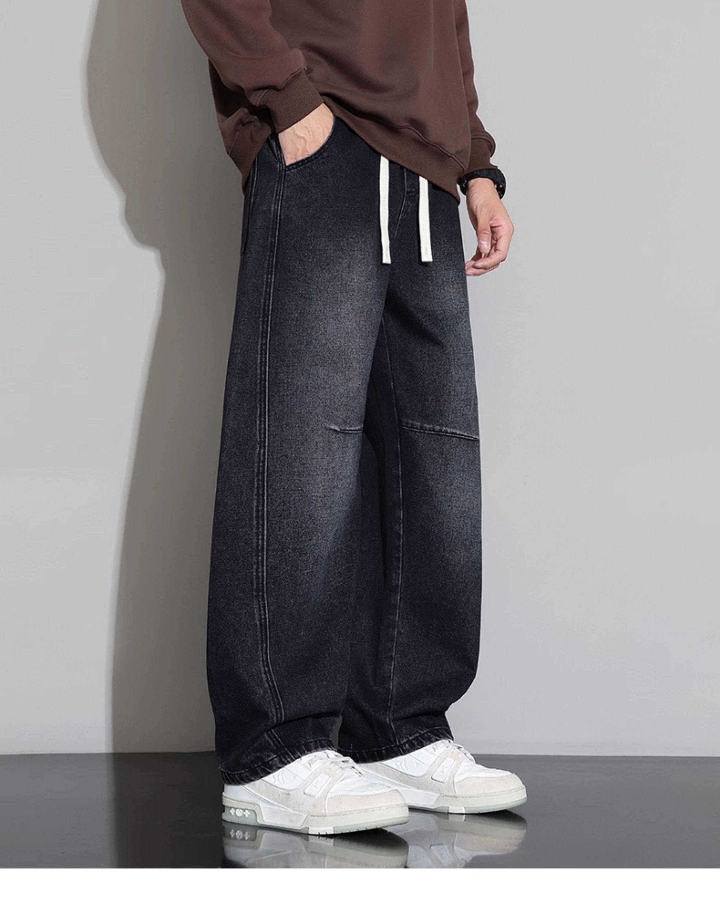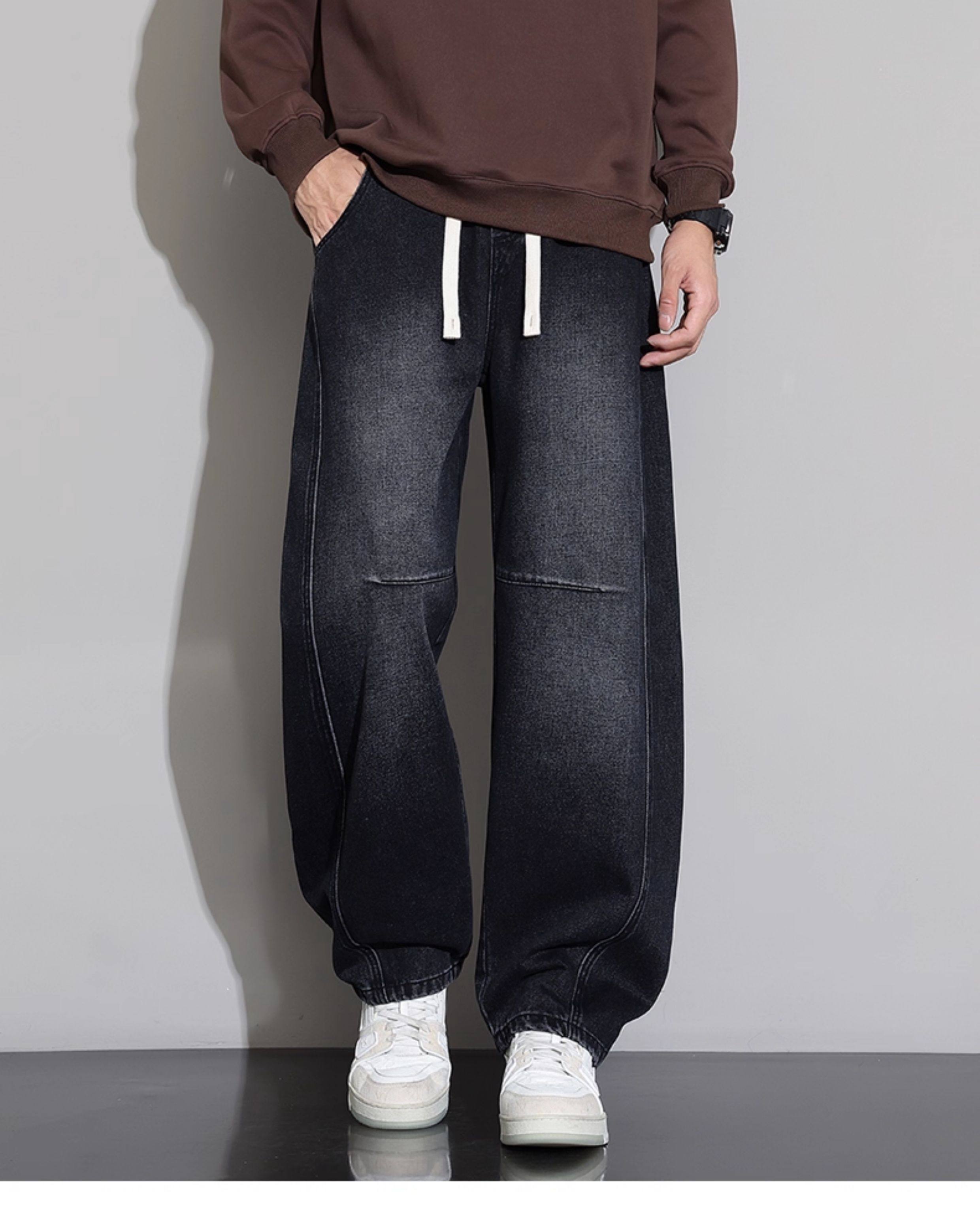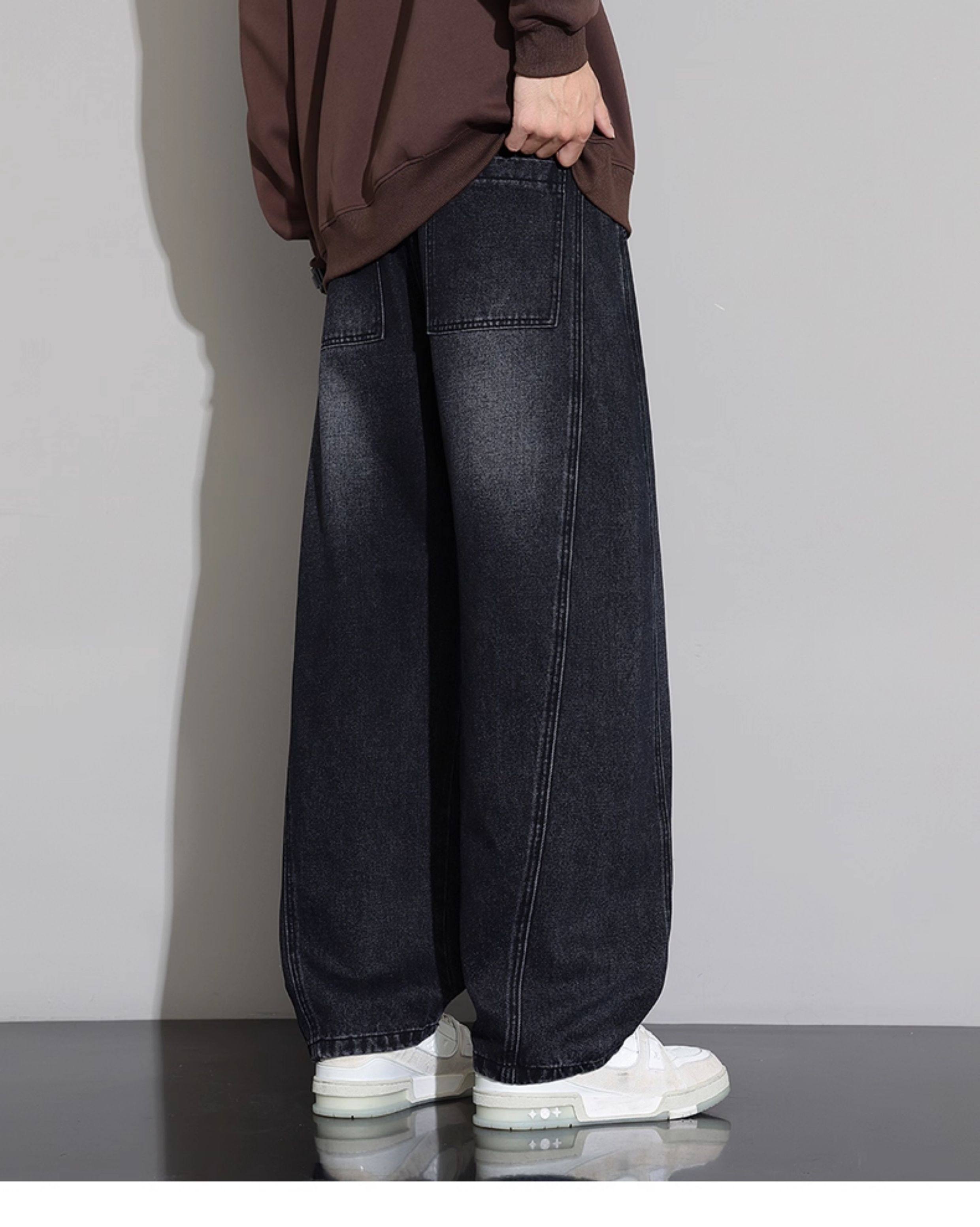 Men's Curved-Leg Jeans, Autumn and Winter 2025 New Style, Loose Straight-Leg Casual Pants, Thickened and Fleece-Lined