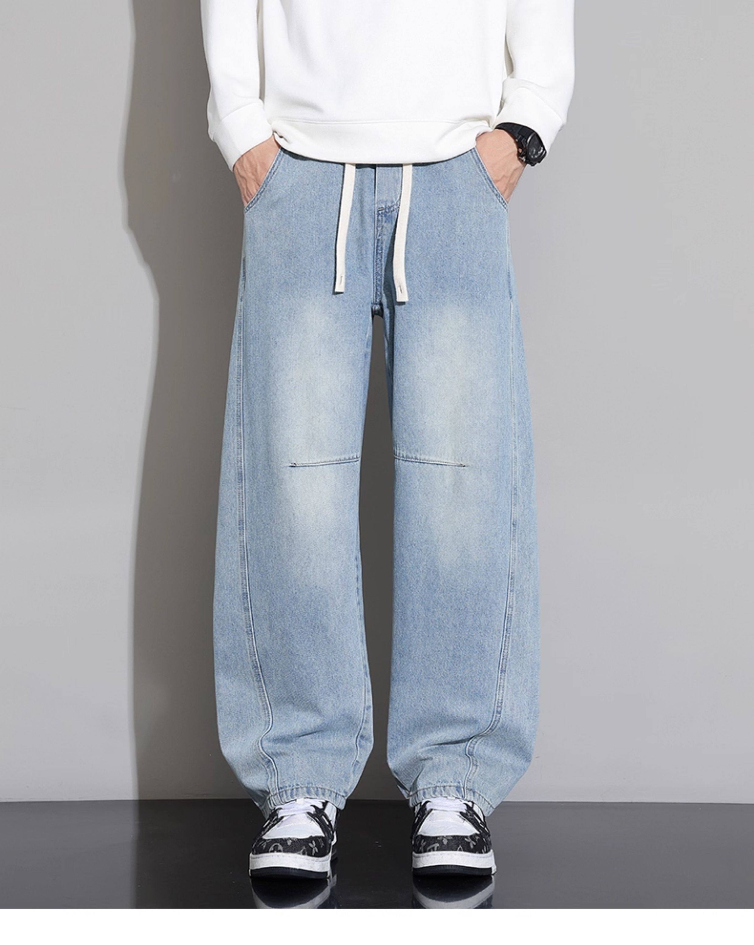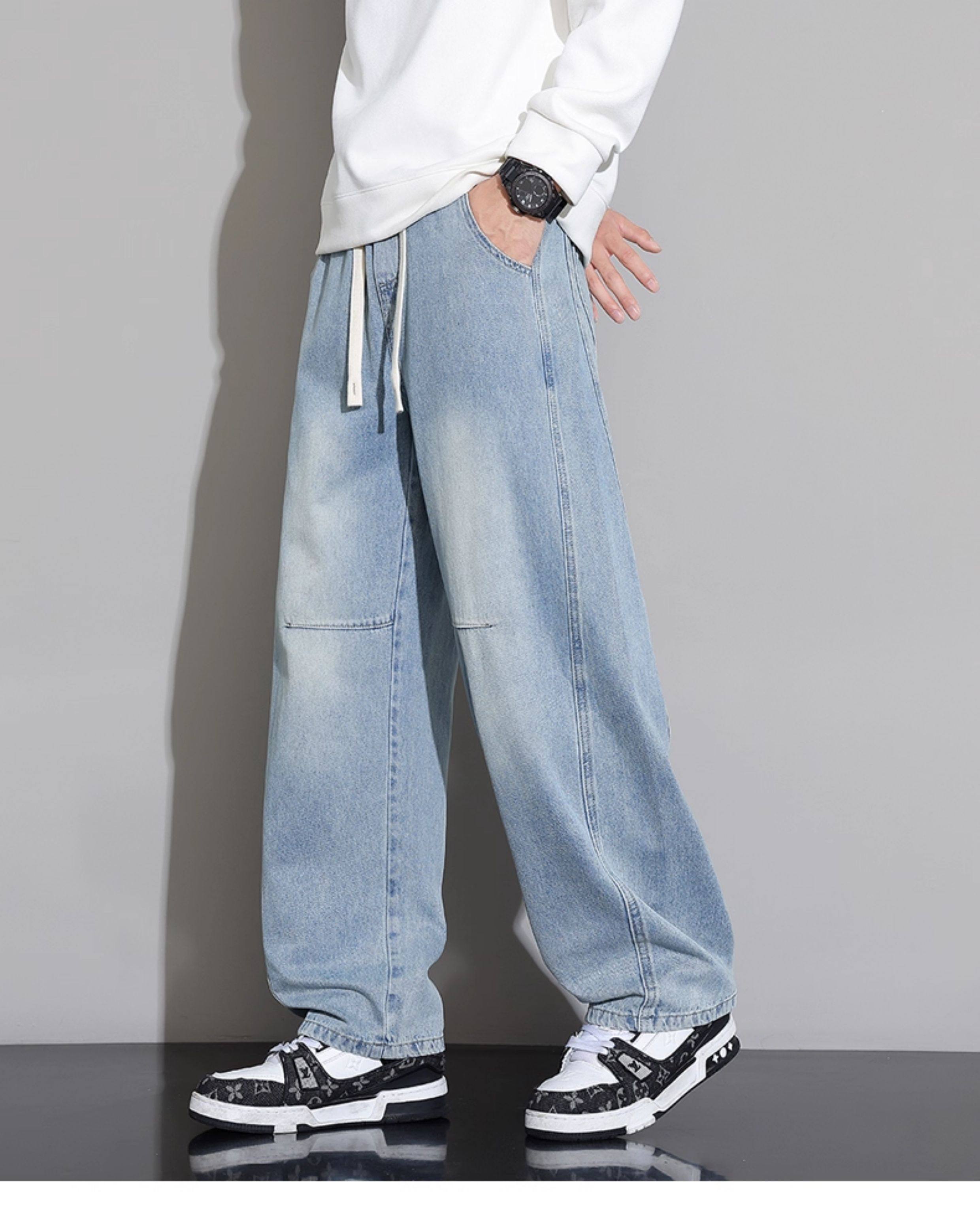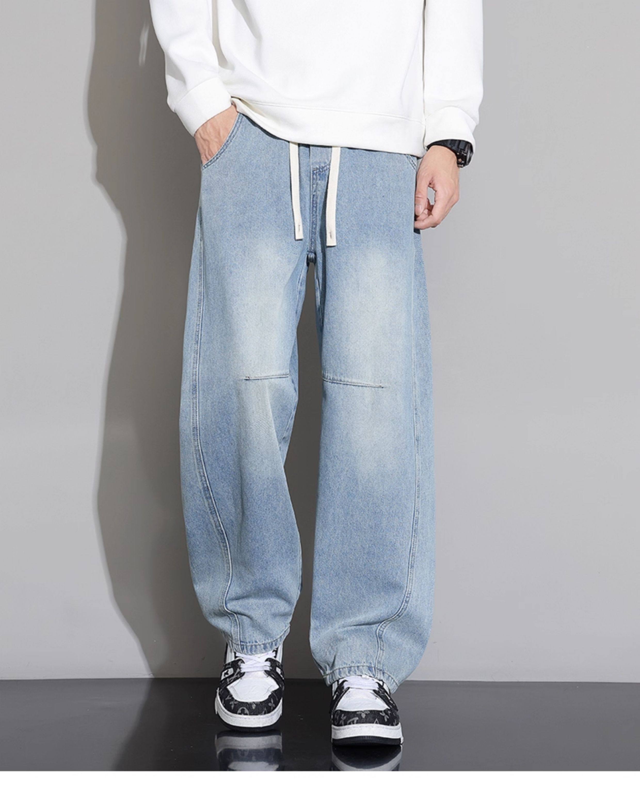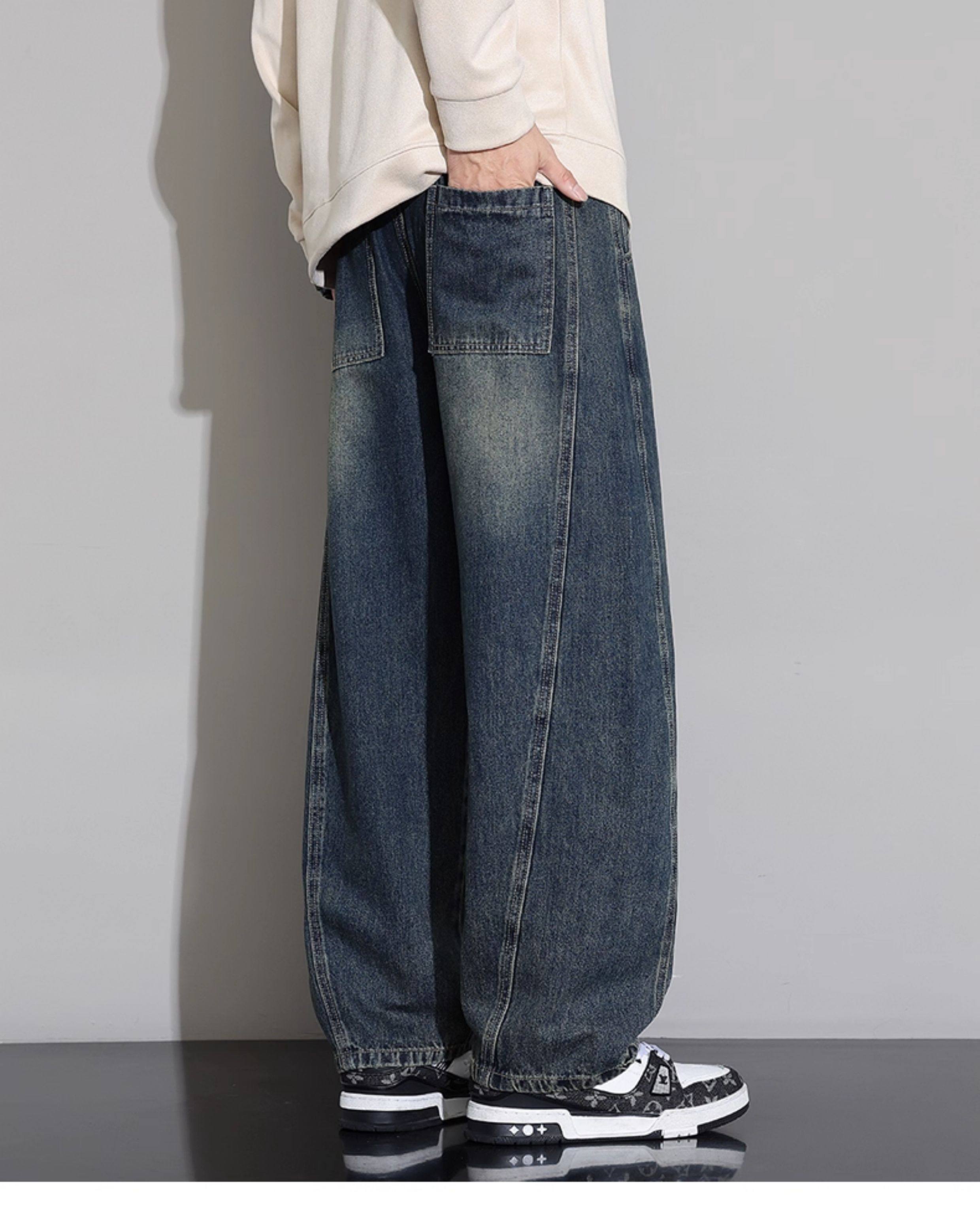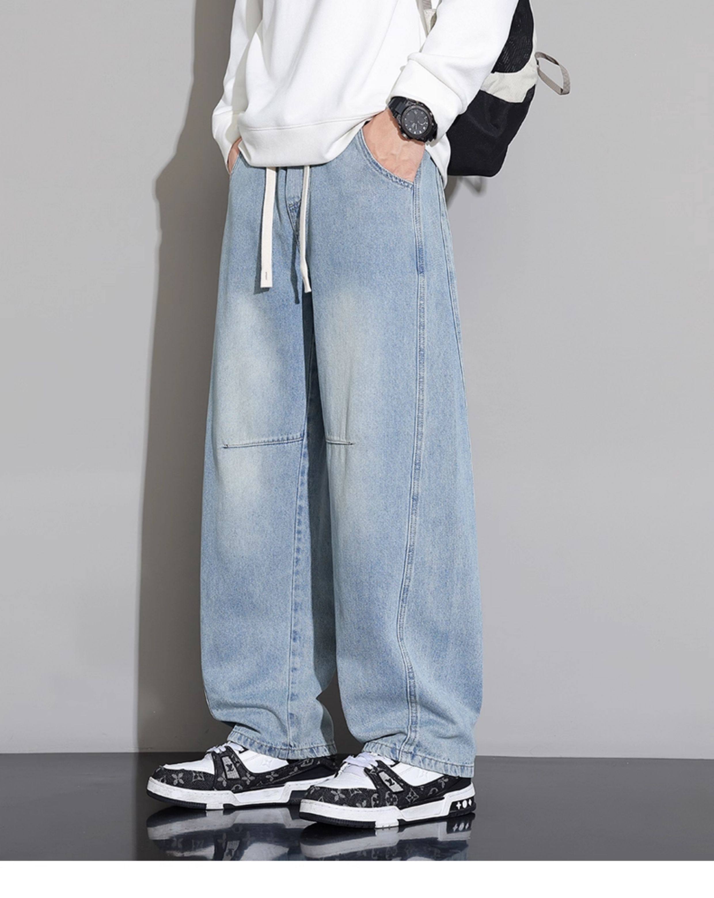 Men's Curved-Leg Jeans, Autumn and Winter 2025 New Style, Loose Straight-Leg Casual Pants, Thickened and Fleece-Lined