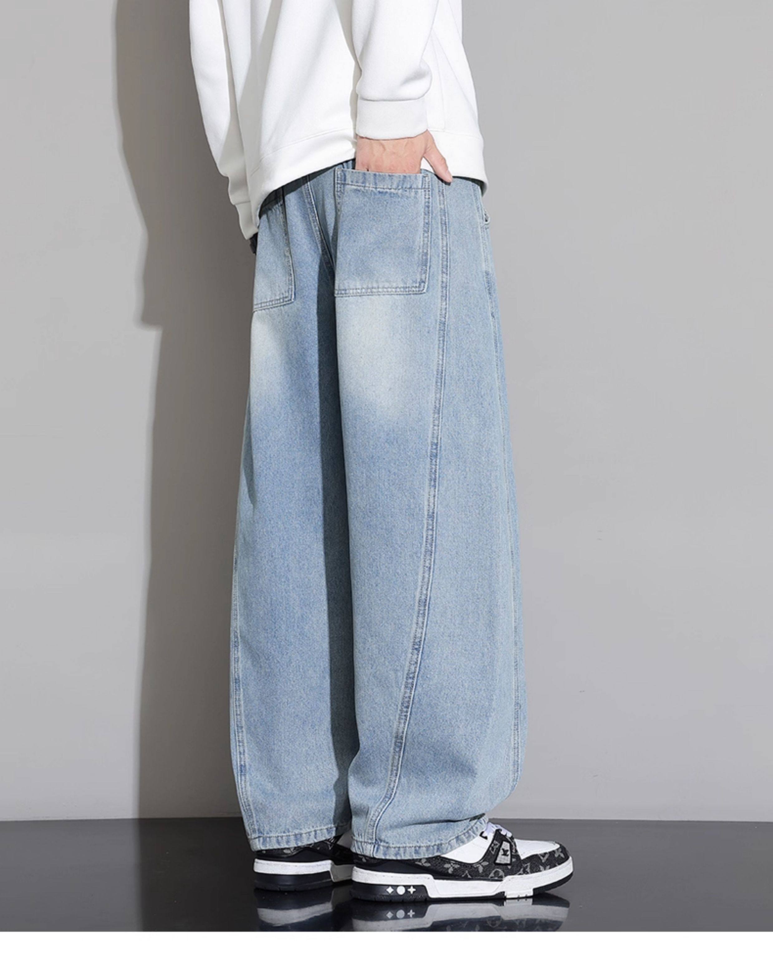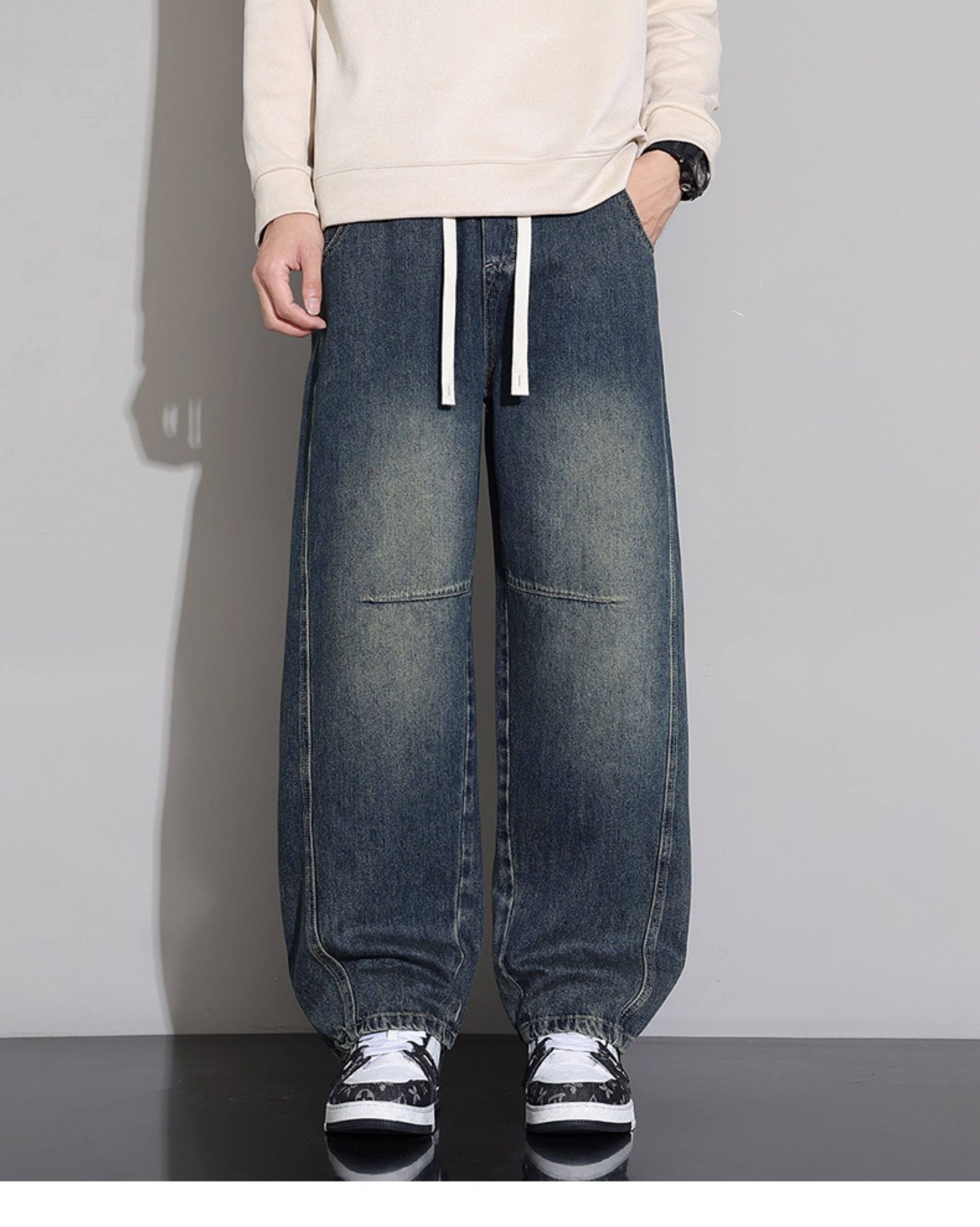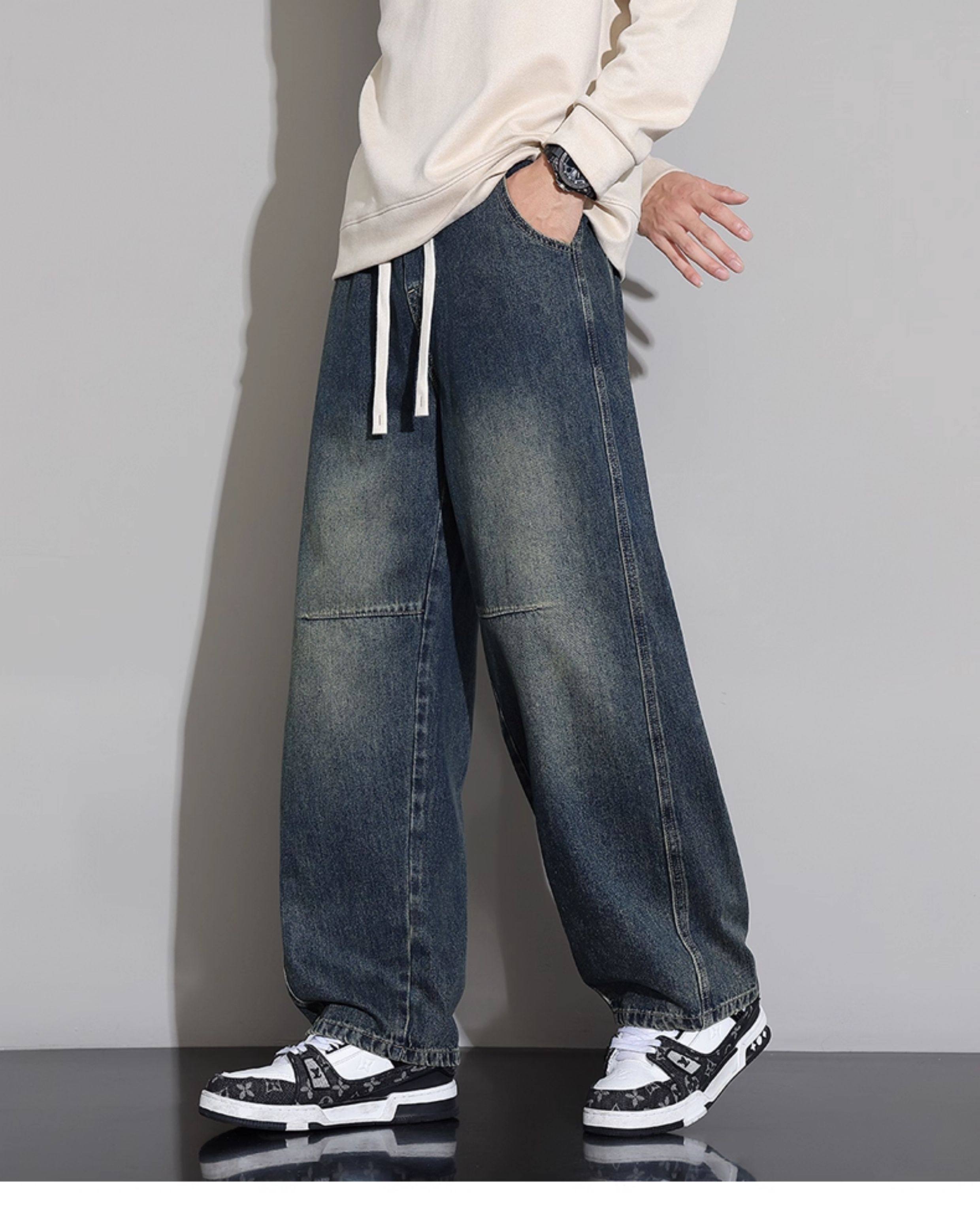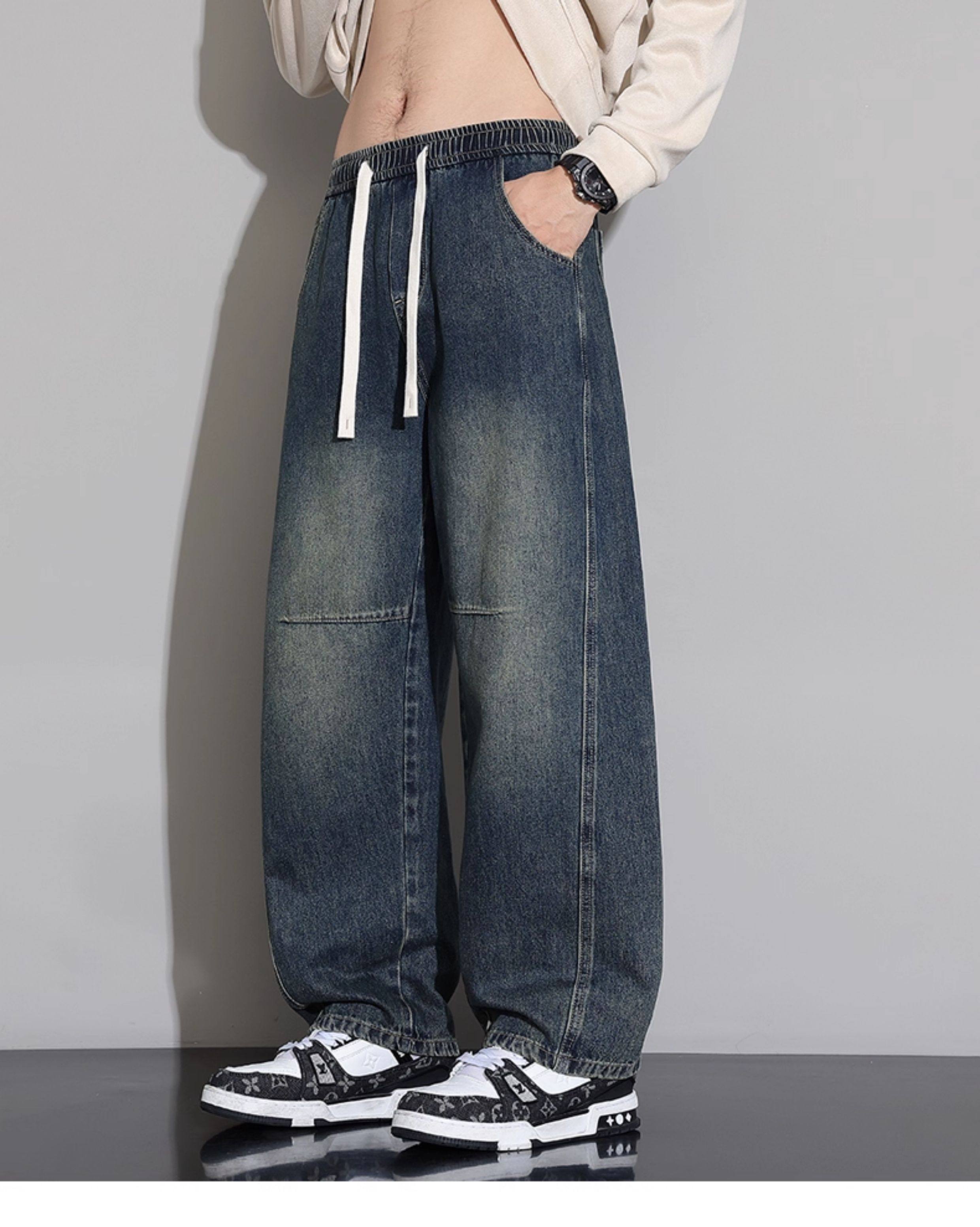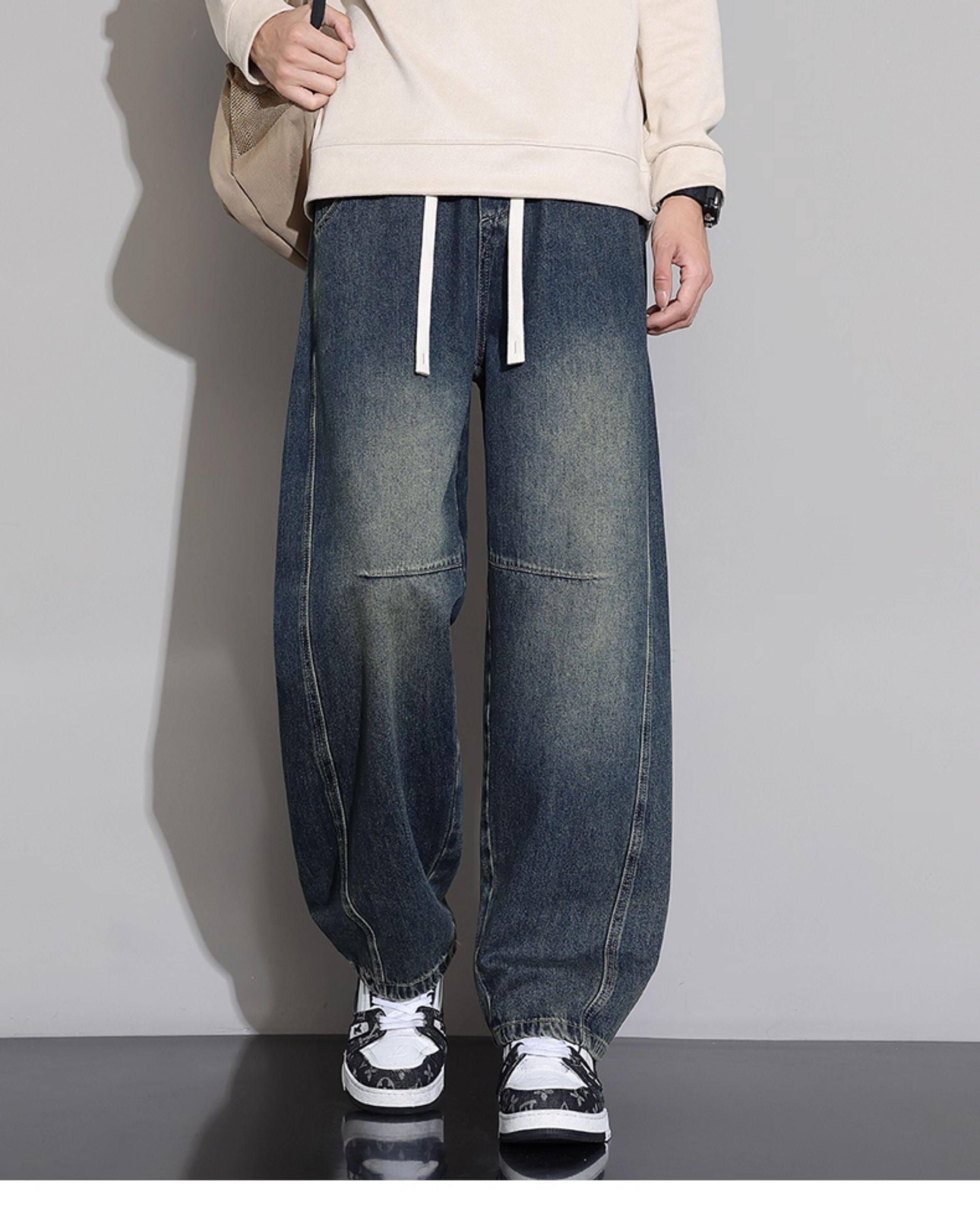 Men's Curved-Leg Jeans, Autumn and Winter 2025 New Style, Loose Straight-Leg Casual Pants, Thickened and Fleece-Lined