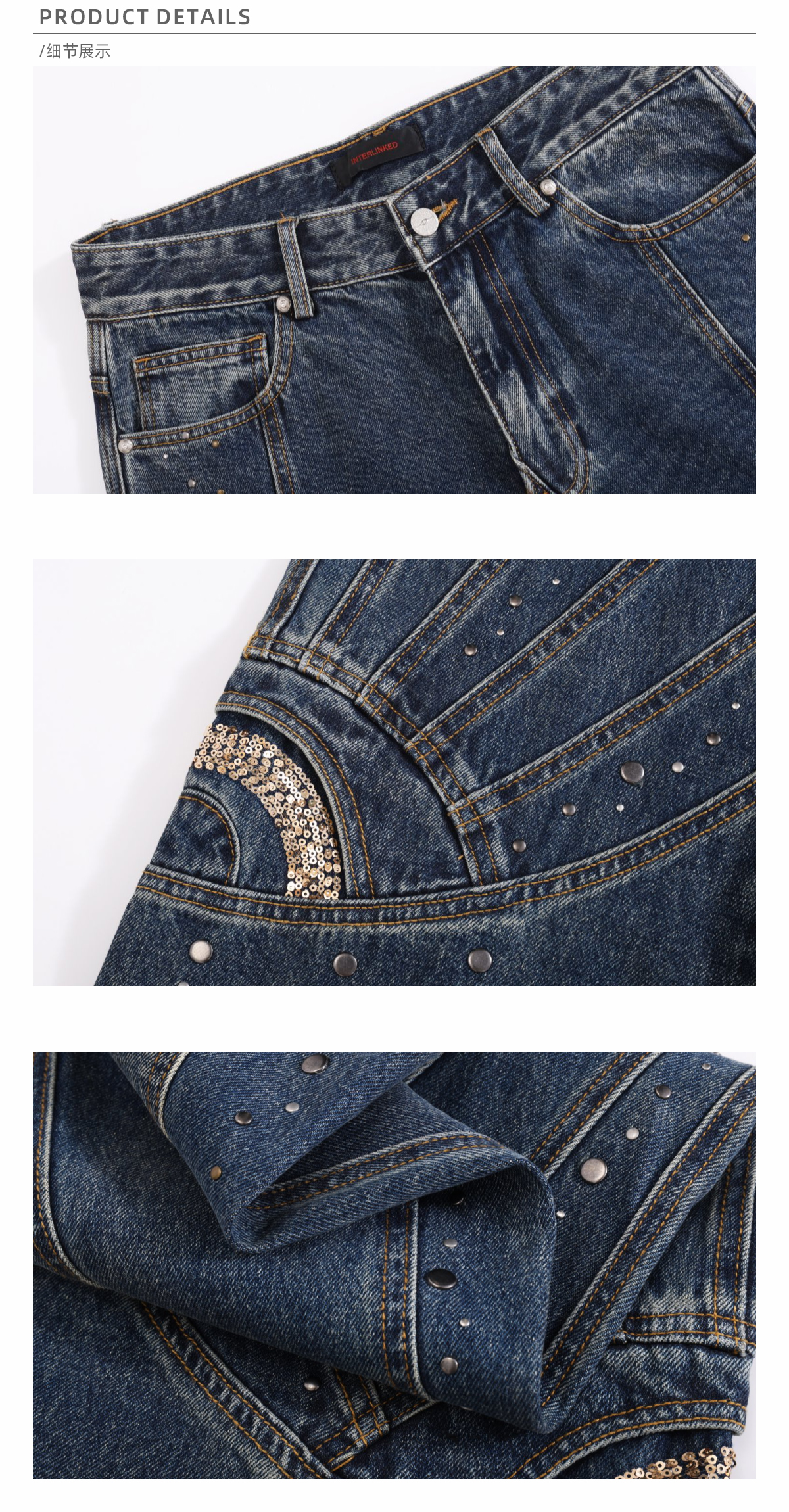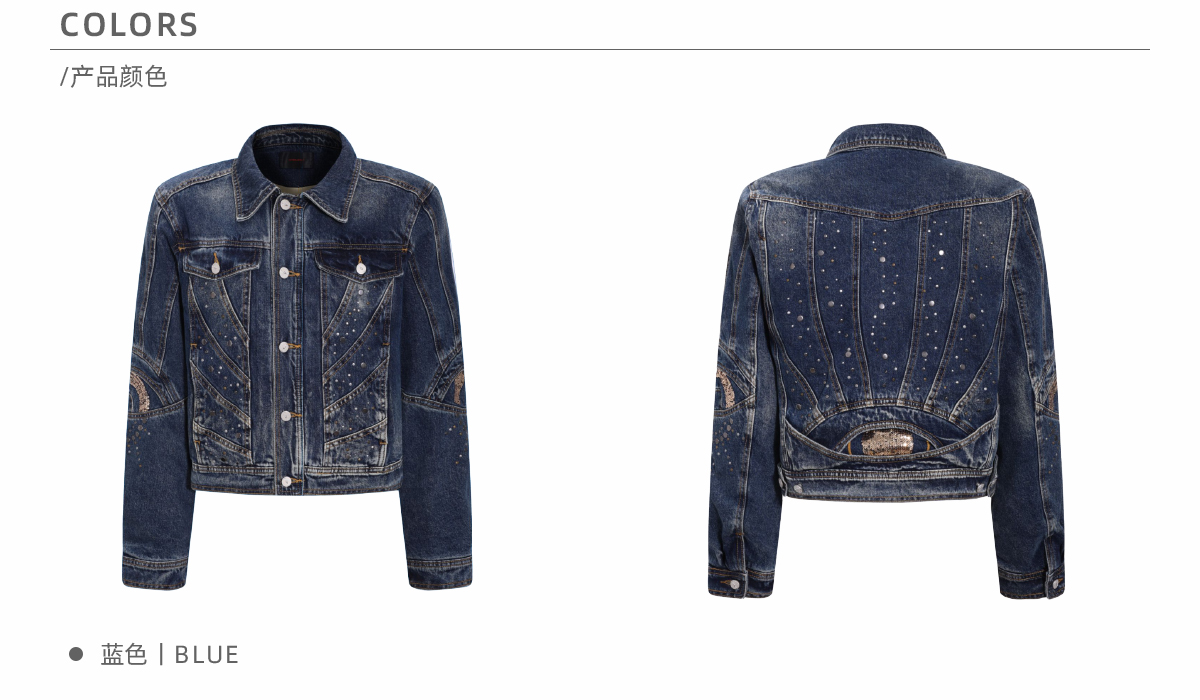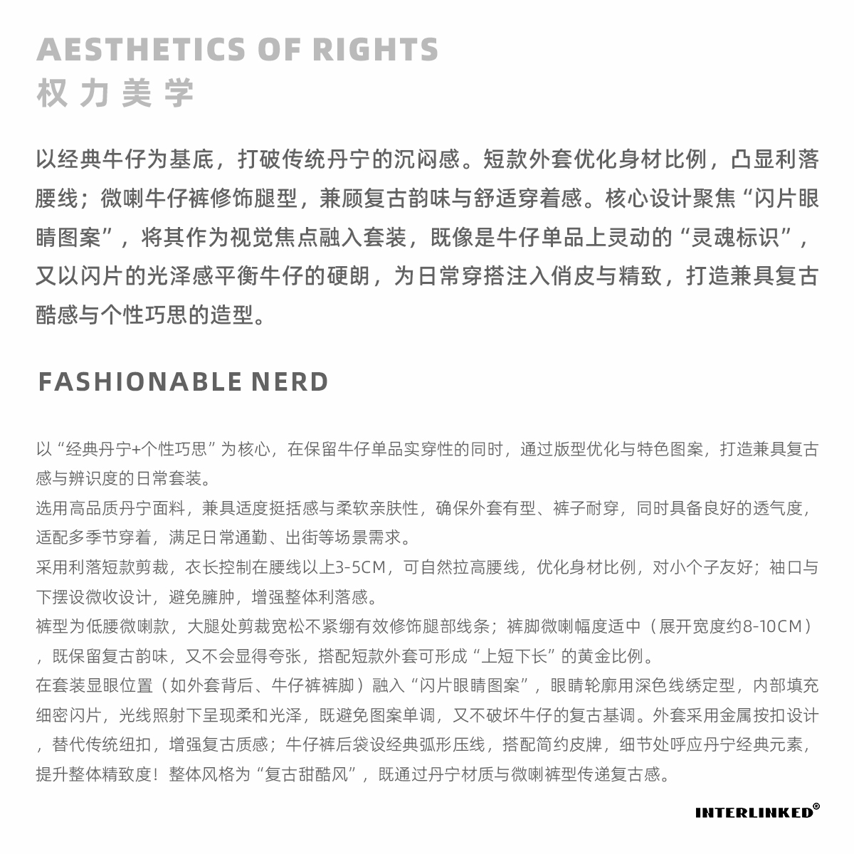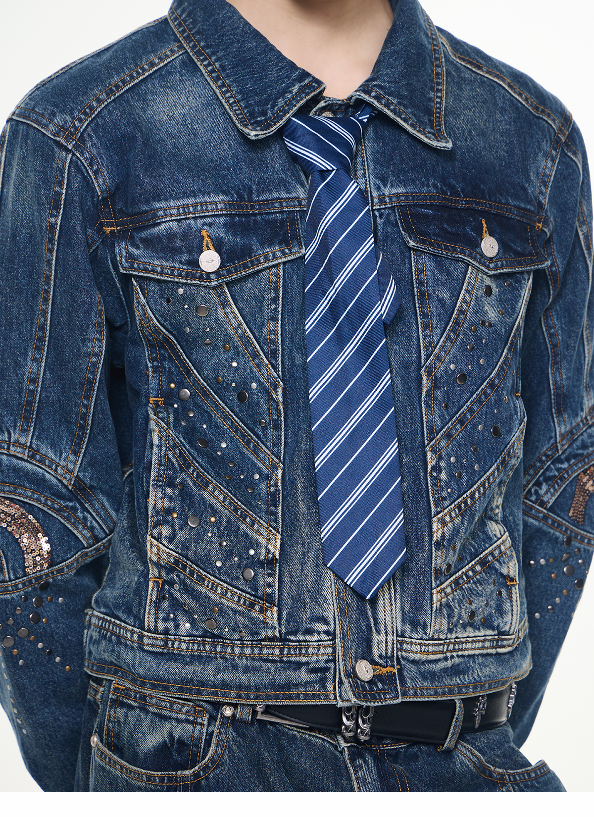 INTERLINKED Retro rivet jacket Outwear distressed Loose Loose pants flash Stylish denim Suit