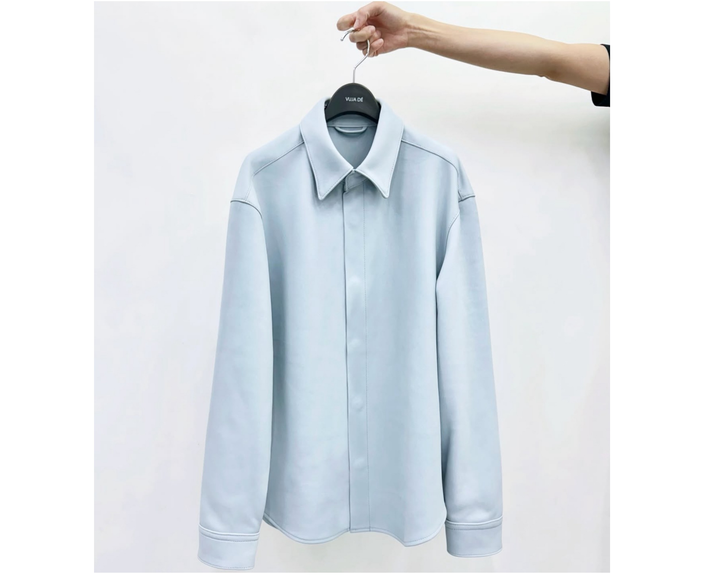 Vujade010-Myer Water-Dyed Blue Sheepskin Leather Jacket, Loose Fit, Versatile for Commuting, Casual and Fashionable Shirt Jacket, Trendy
