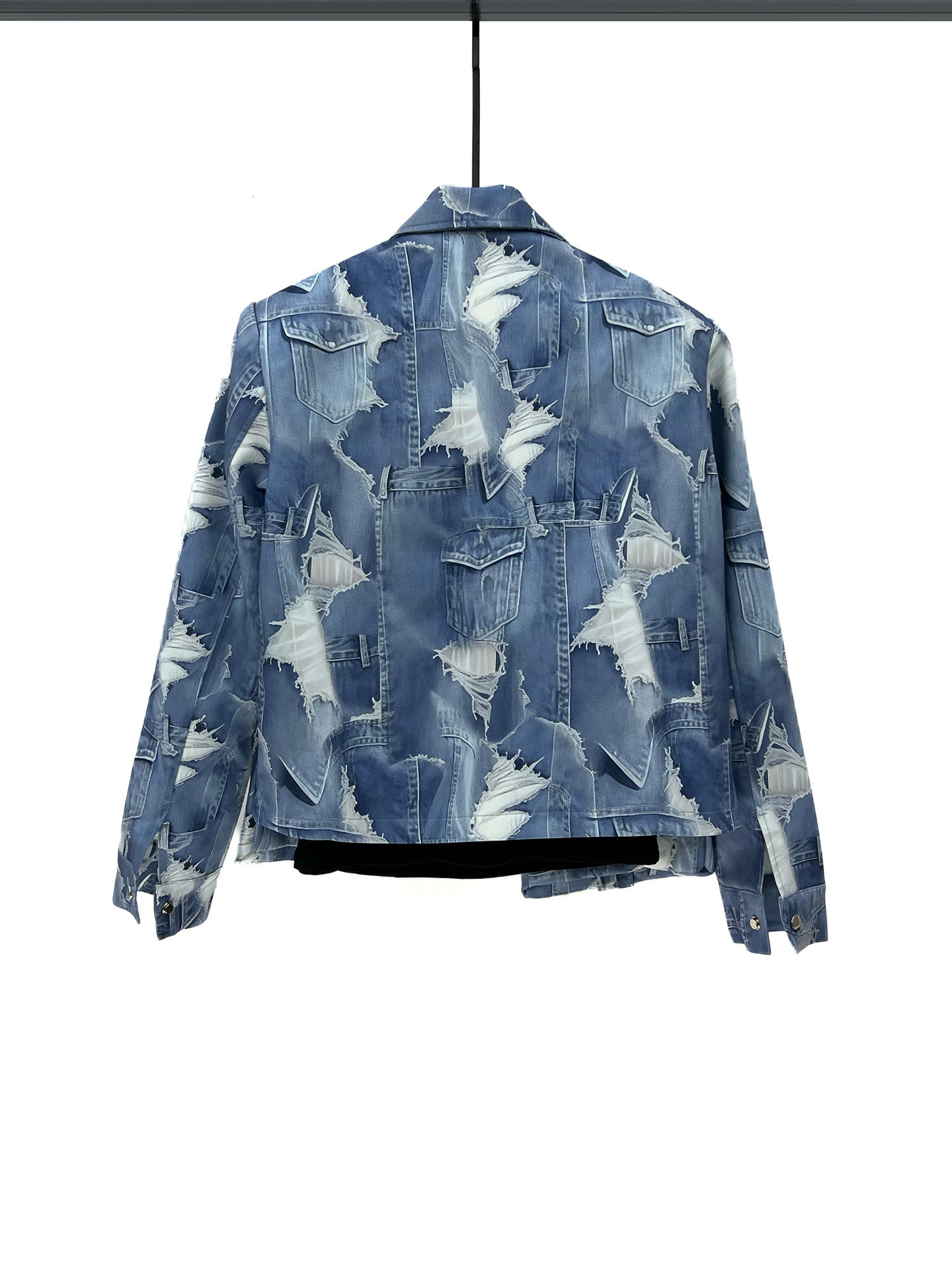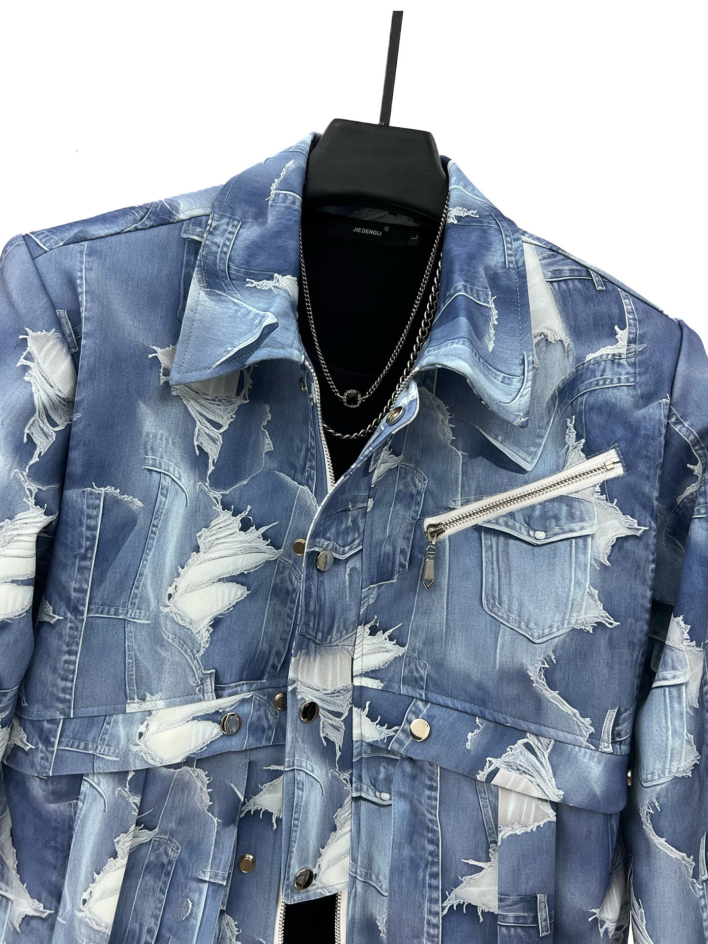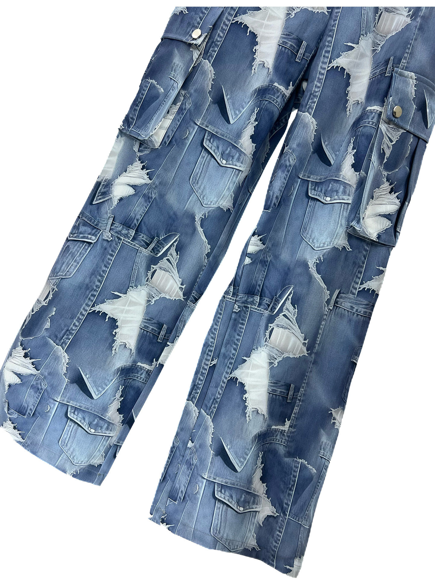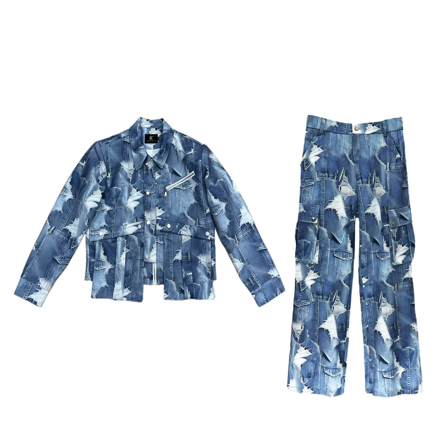 2025 Autumn Gradient Tie-Dye Blue Short Jacket and Straight-Leg Pants Set, Cool and Casual Loose Two-Piece Men's Outfit