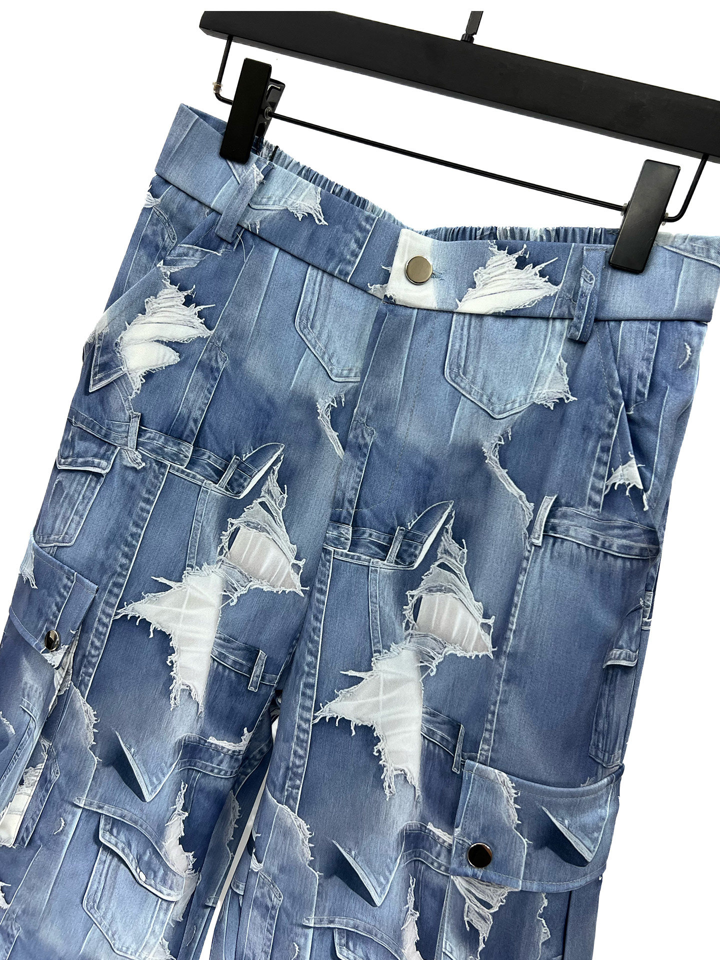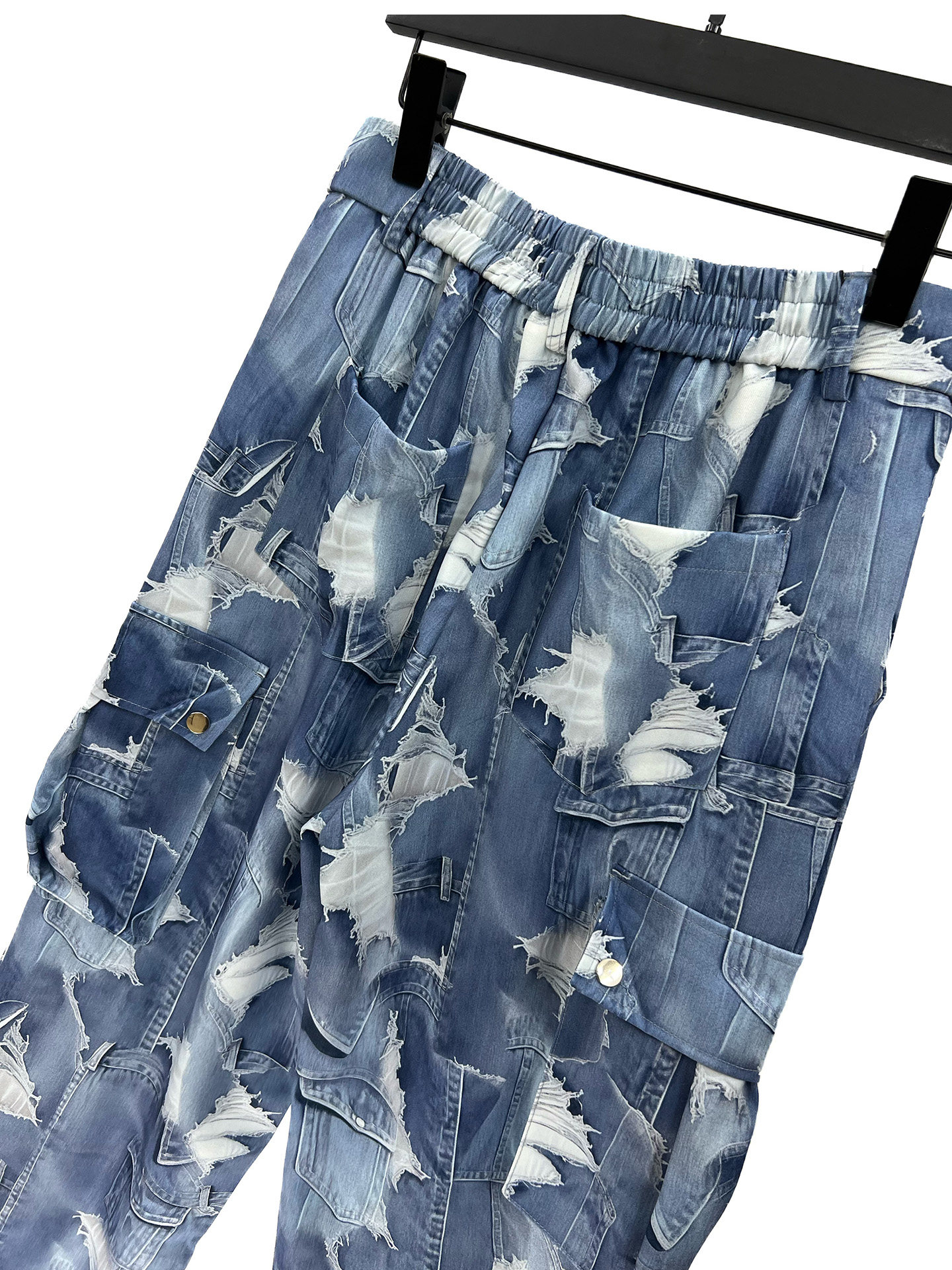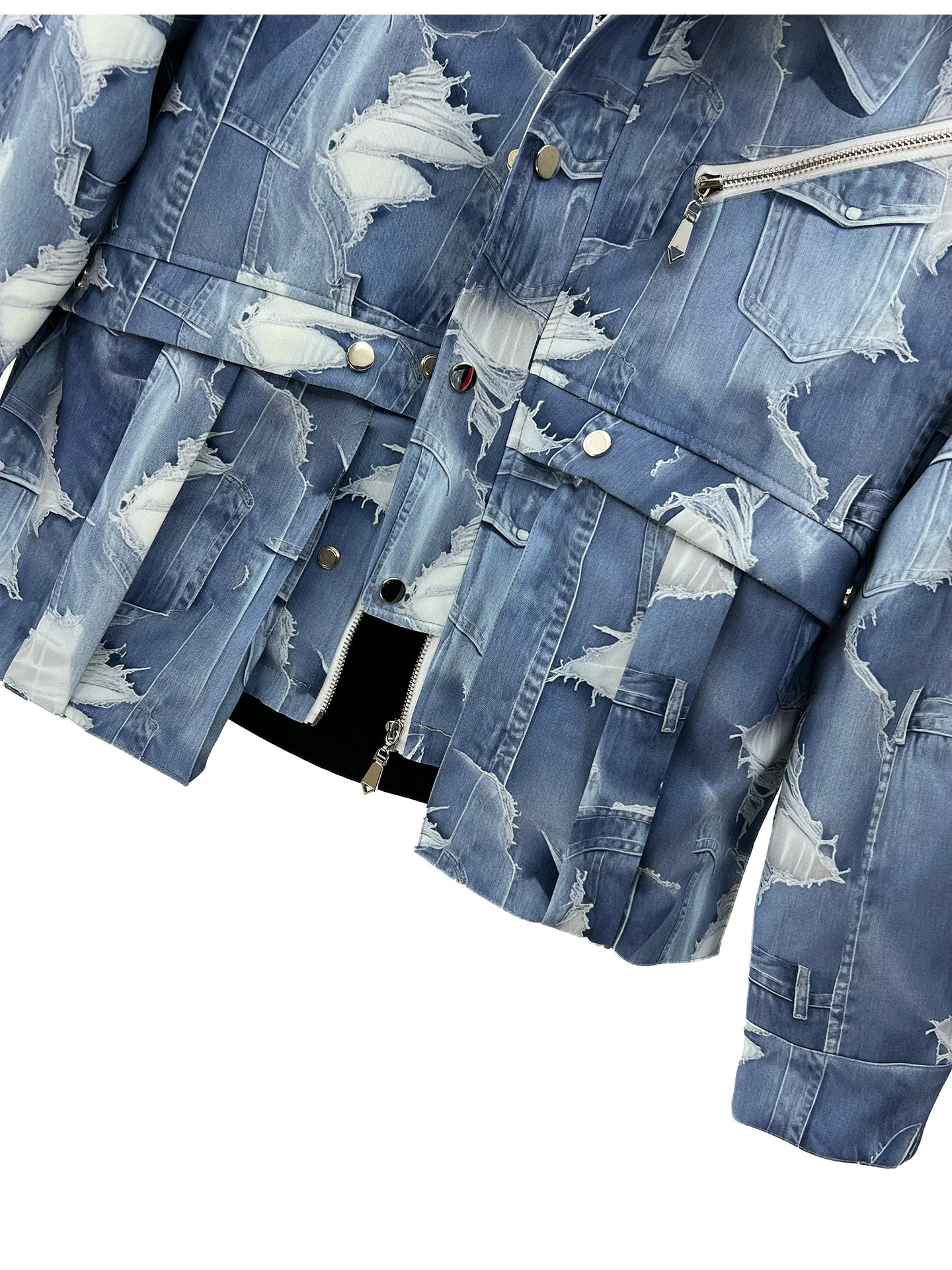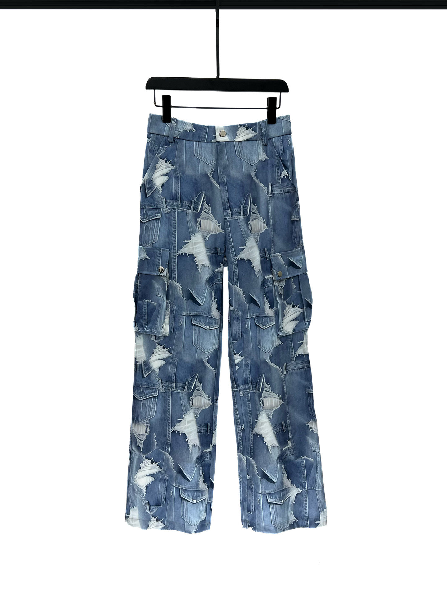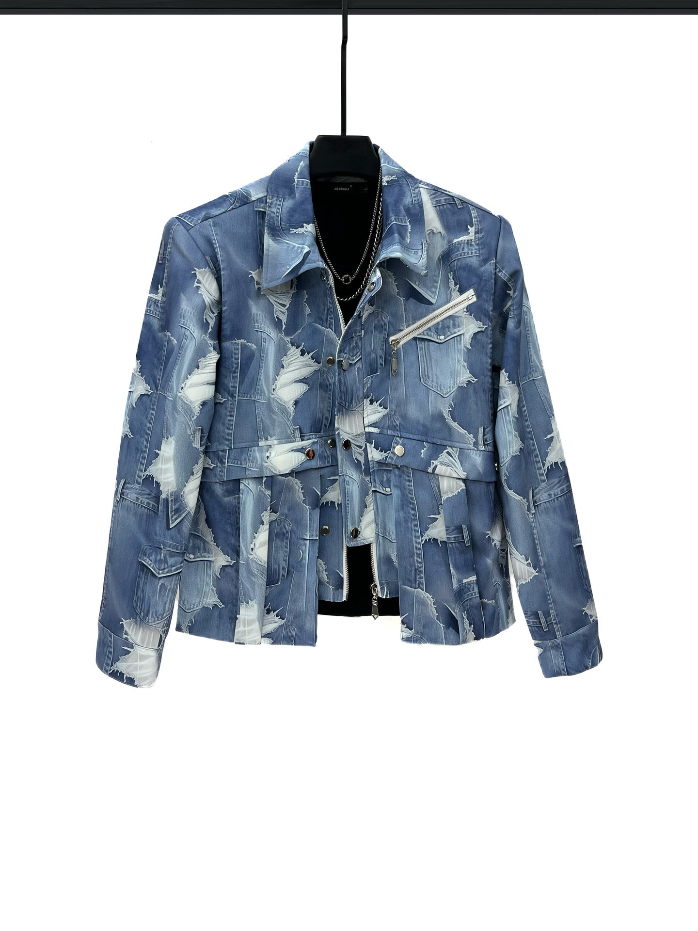2025 Autumn Gradient Tie-Dye Blue Short Jacket and Straight-Leg Pants Set, Cool and Casual Loose Two-Piece Men's Outfit
