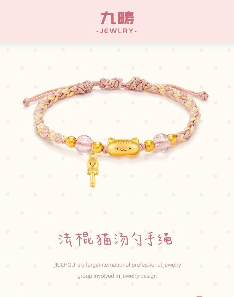 Jiuchou Baguette Cat Bracelet Pure Gold 999 Gold Fortune Bead Bracelet 5D Hard Gold Gift for Girlfriend