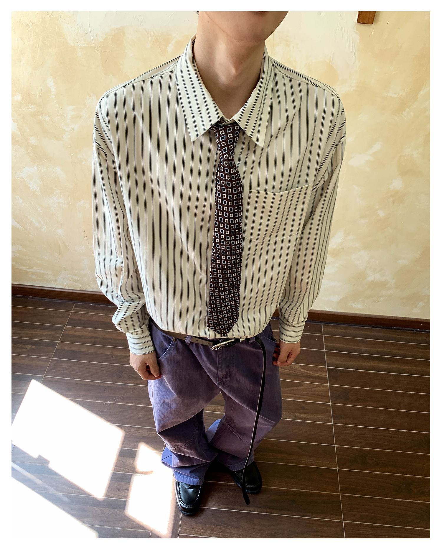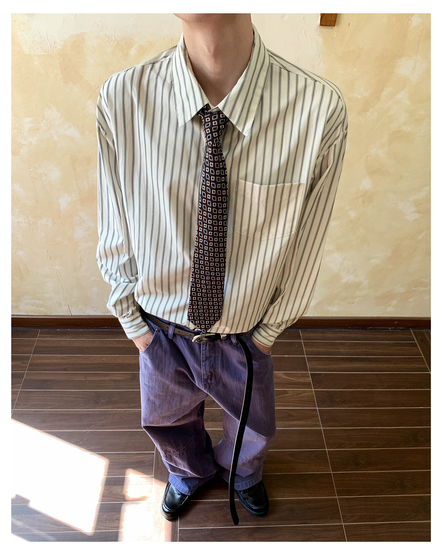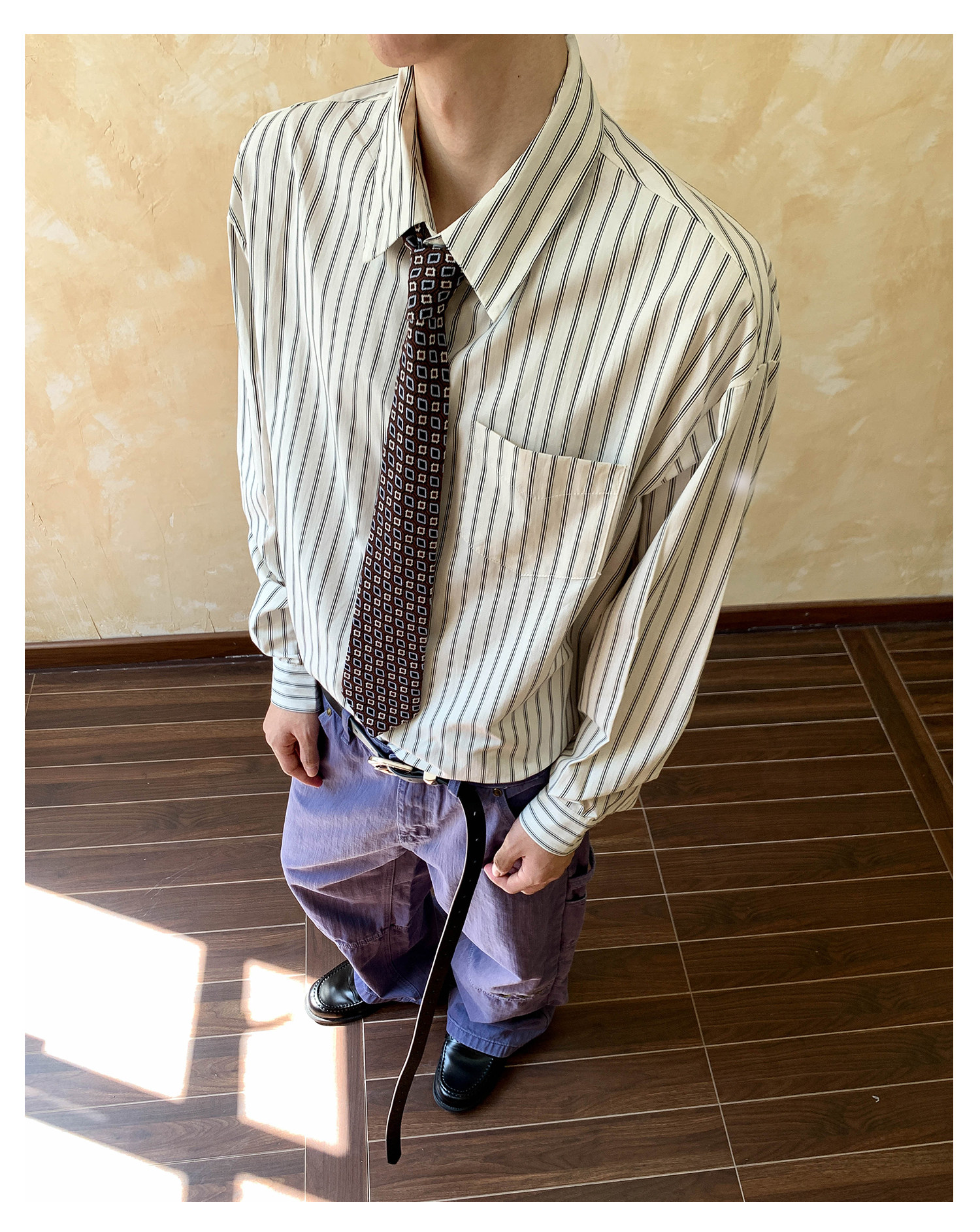 Oalin American-Style Color-Block Striped Simple Lapel Shirt for Men and Women, High-End Vintage Cool Commuter Long-Sleeve Top