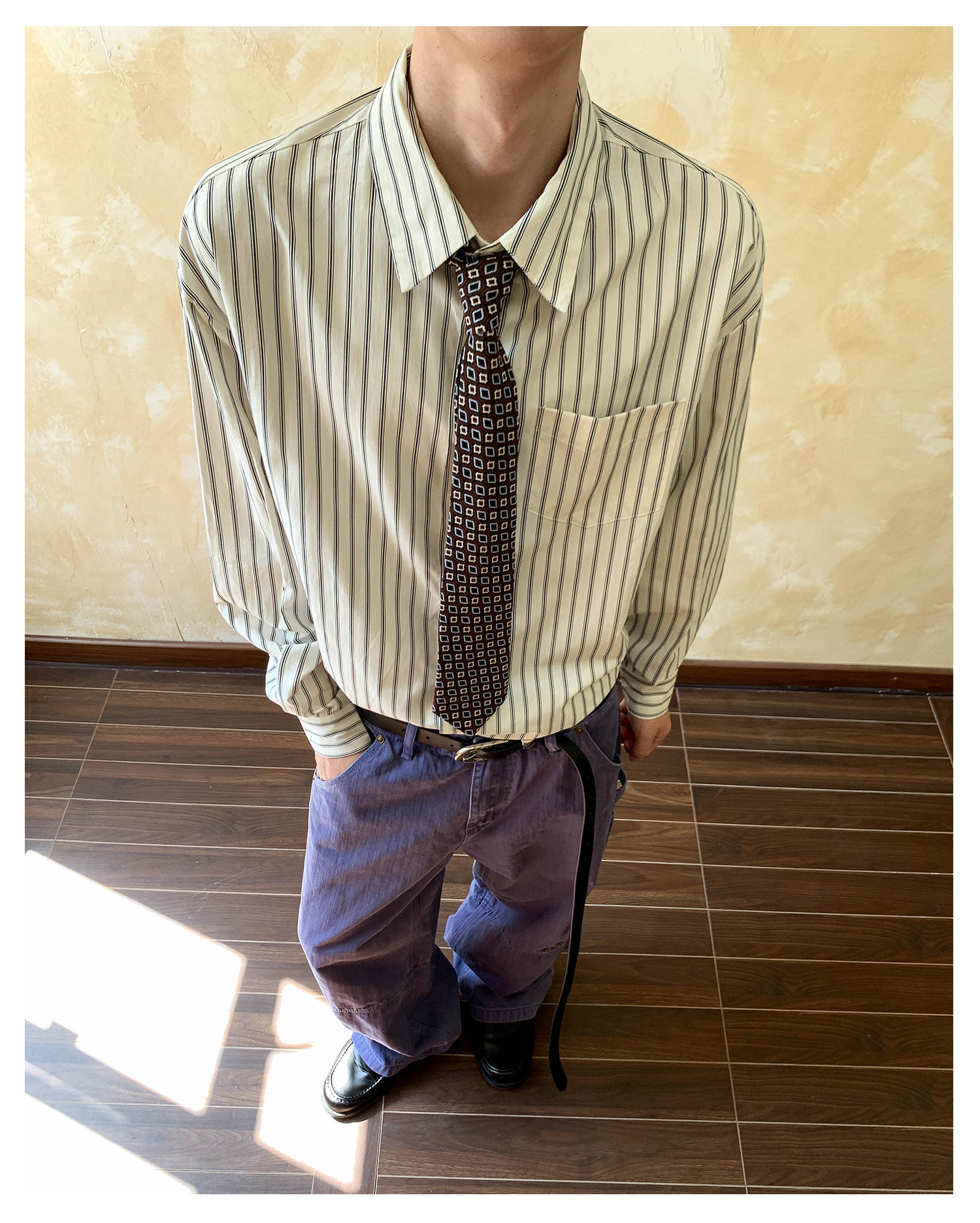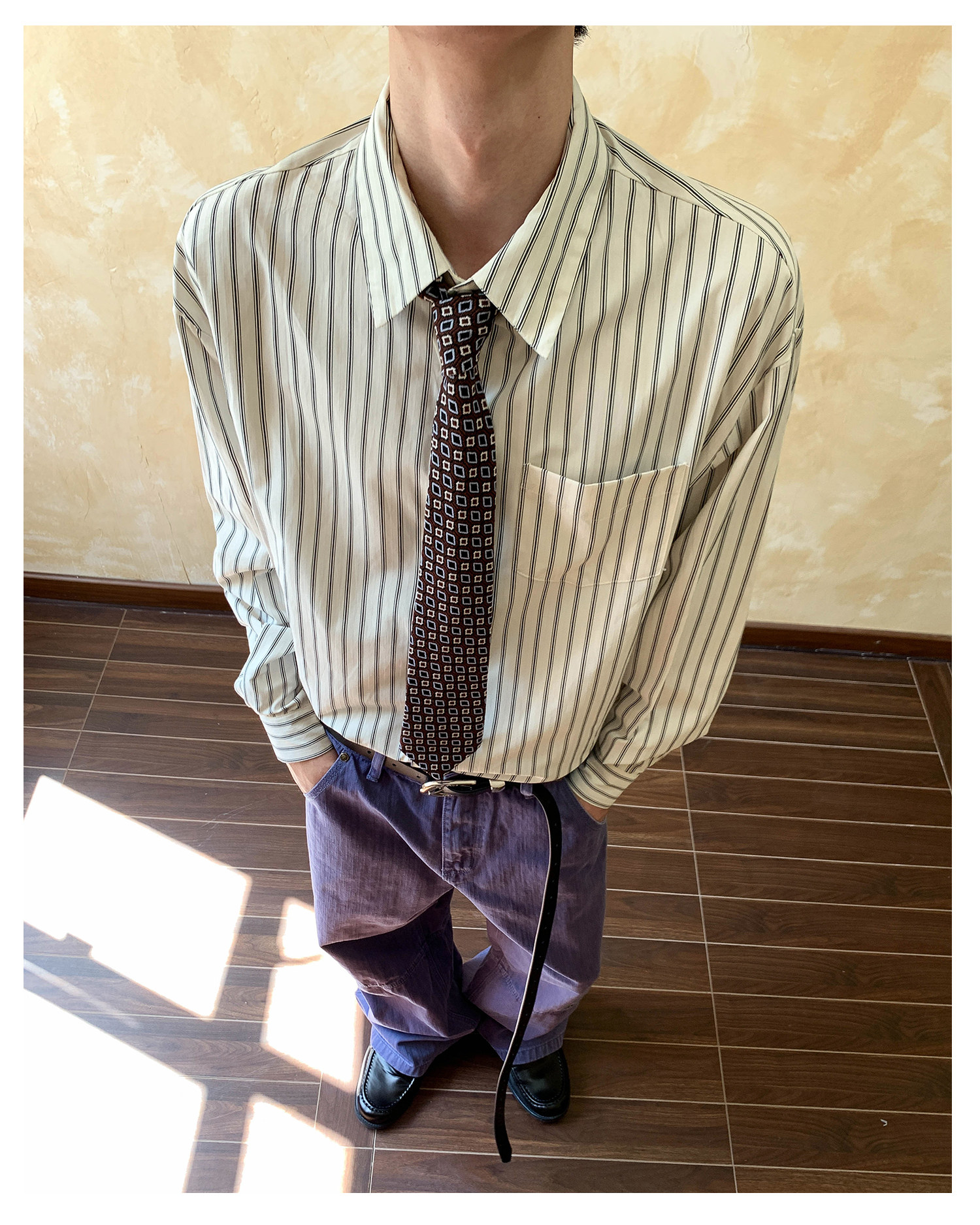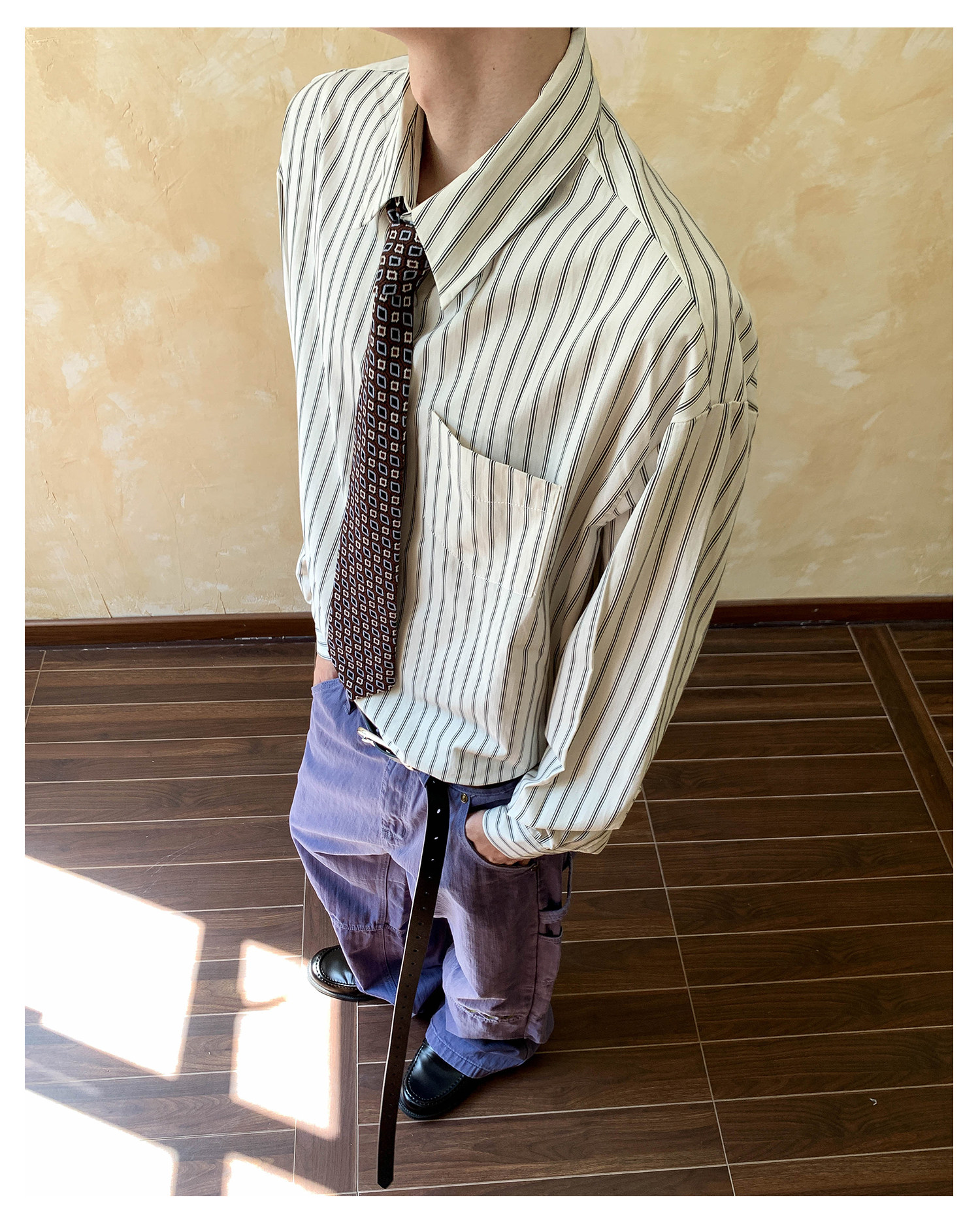 Oalin American-Style Color-Block Striped Simple Lapel Shirt for Men and Women, High-End Vintage Cool Commuter Long-Sleeve Top