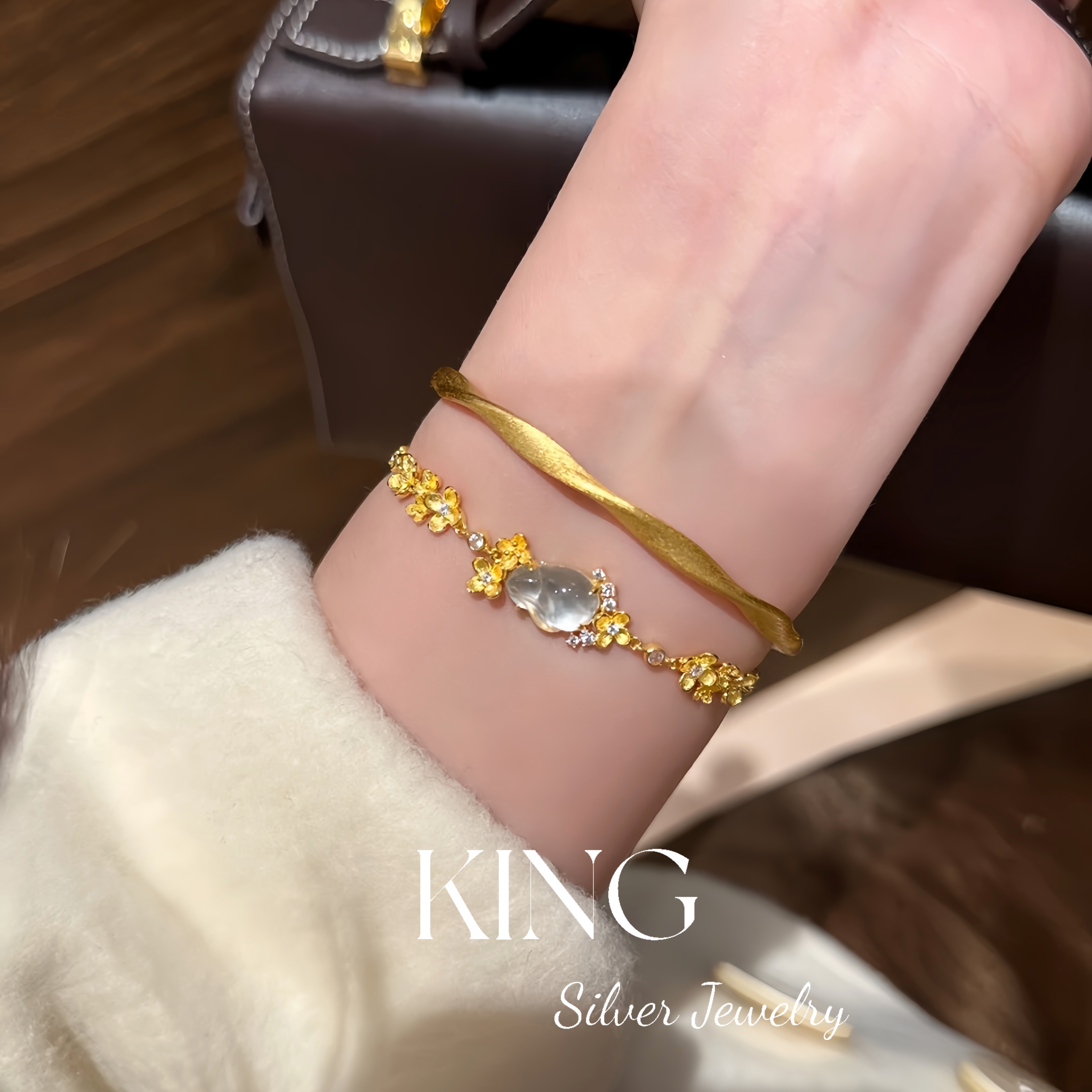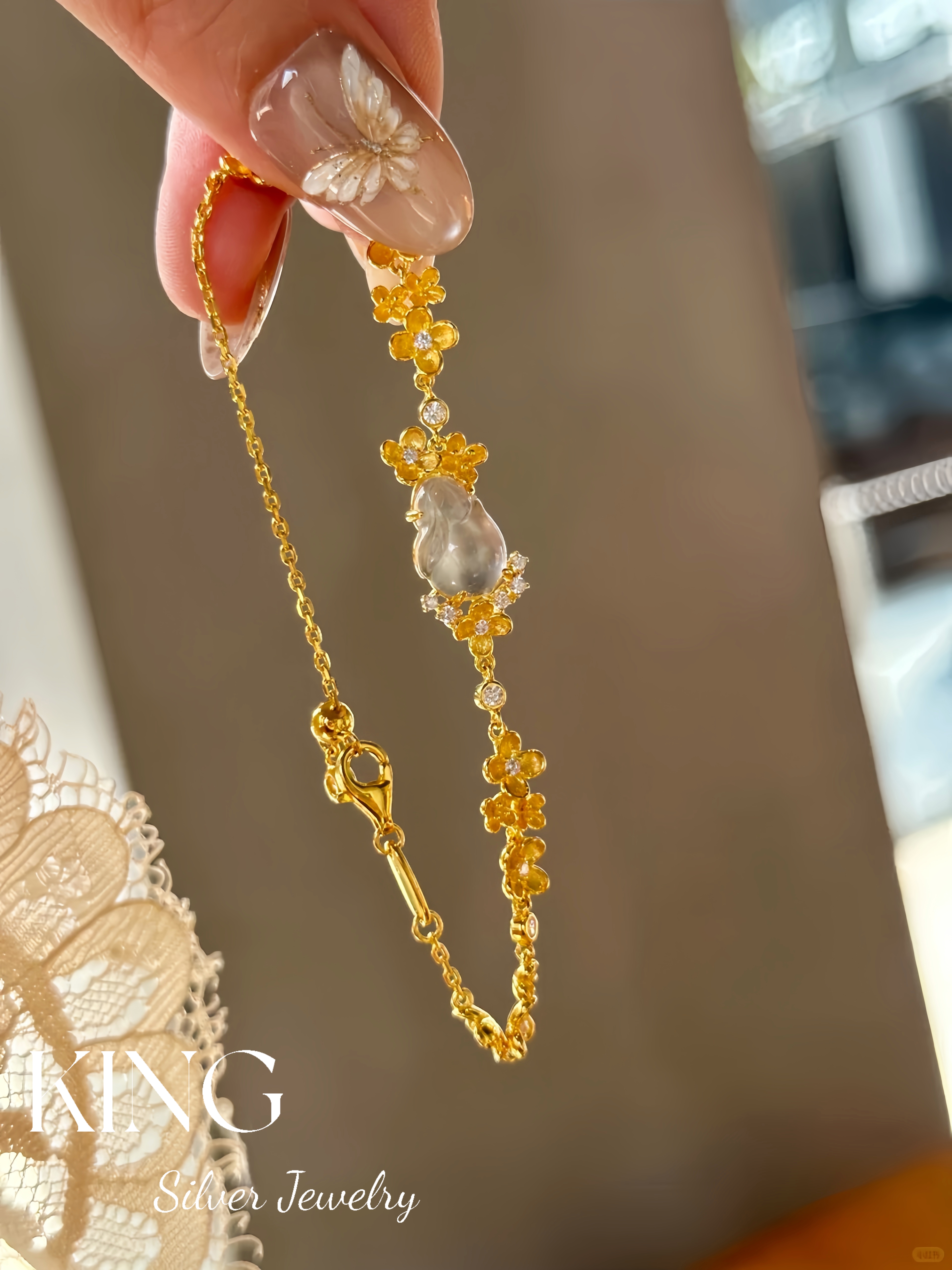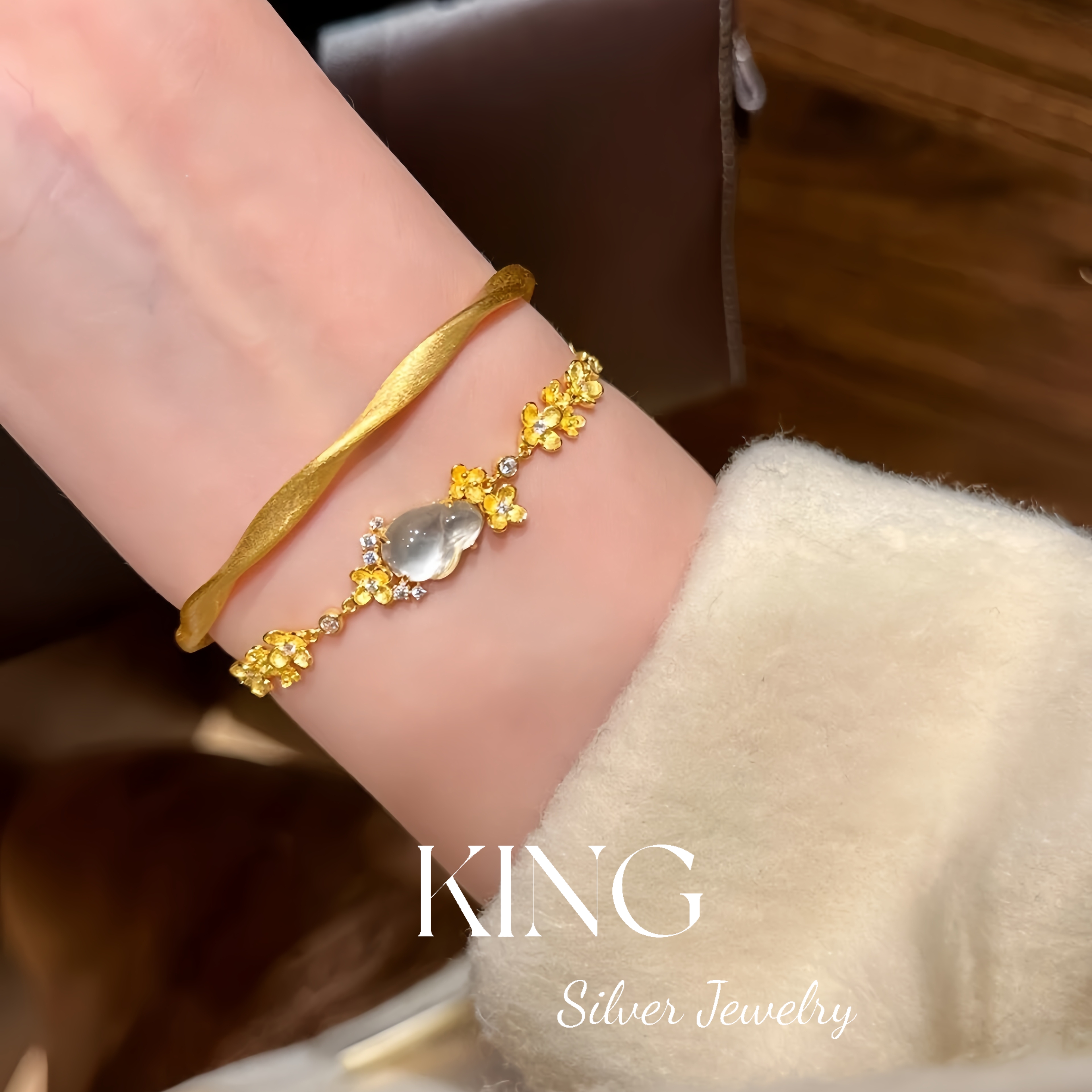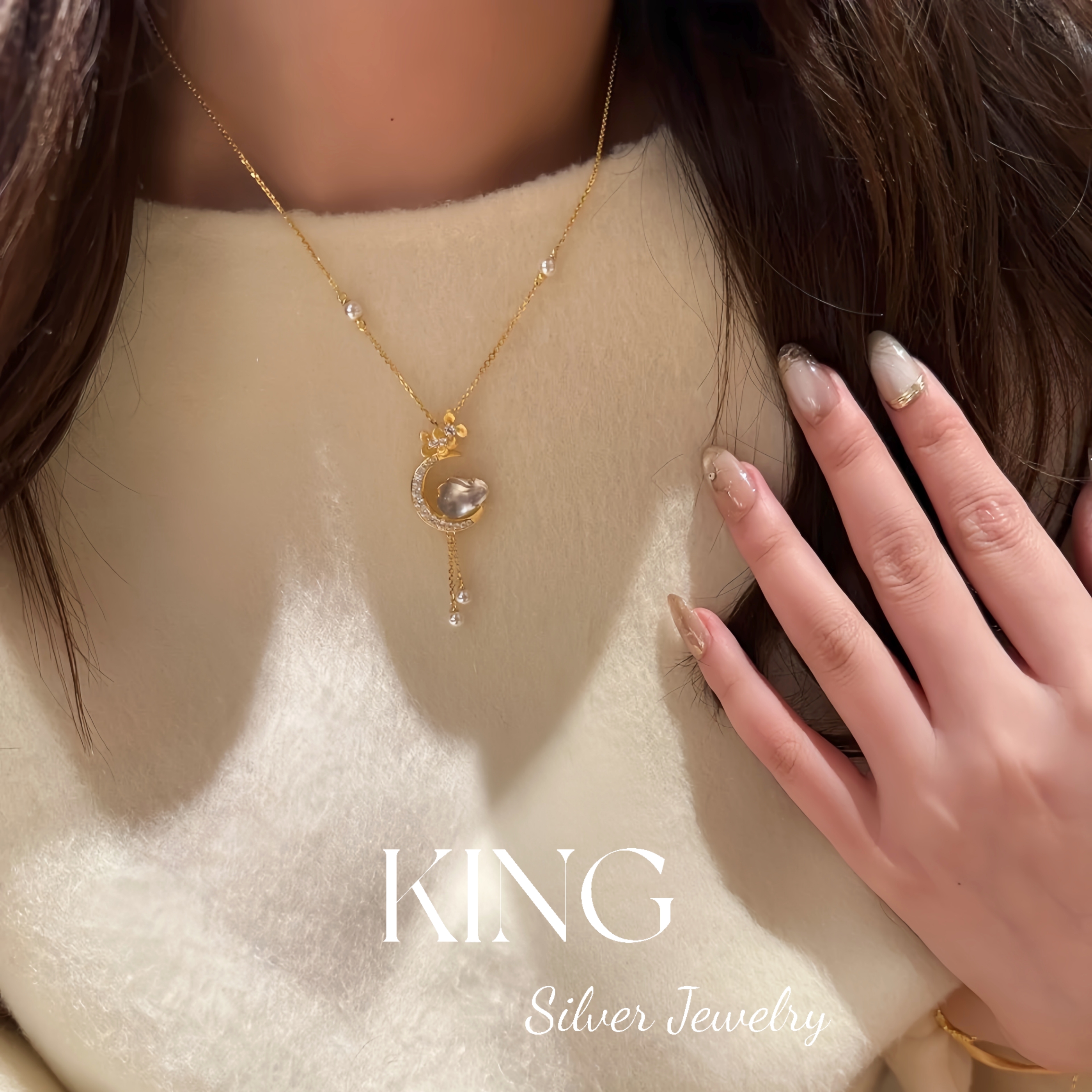 Jade Rabbit Sleeping | king Silver Jewelry Brushed Osmanthus Flowers Shuimo Jade Rabbit Tassel Retro Sterling Silver Necklace Bracelet