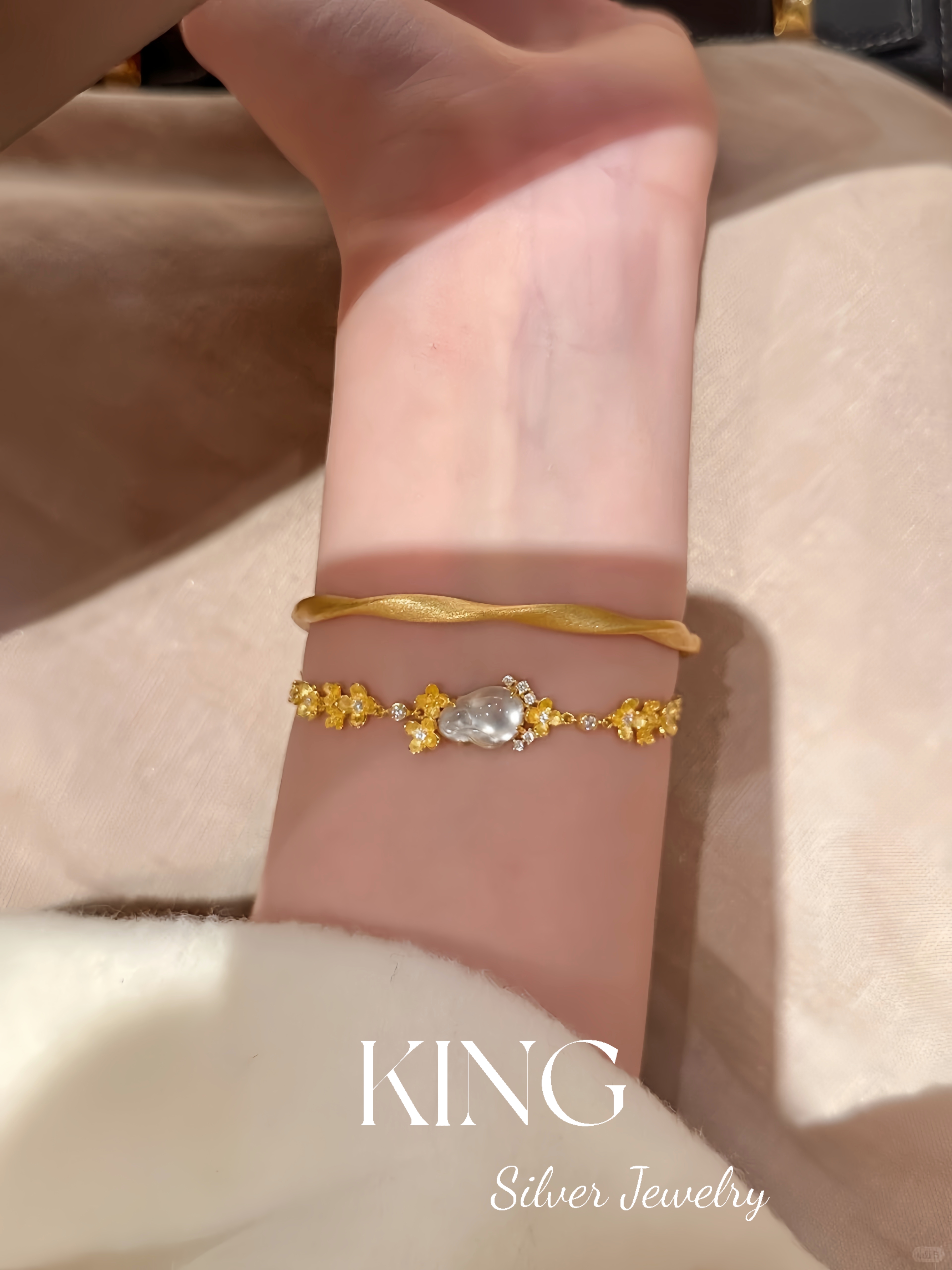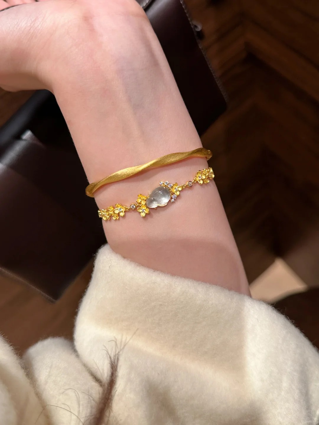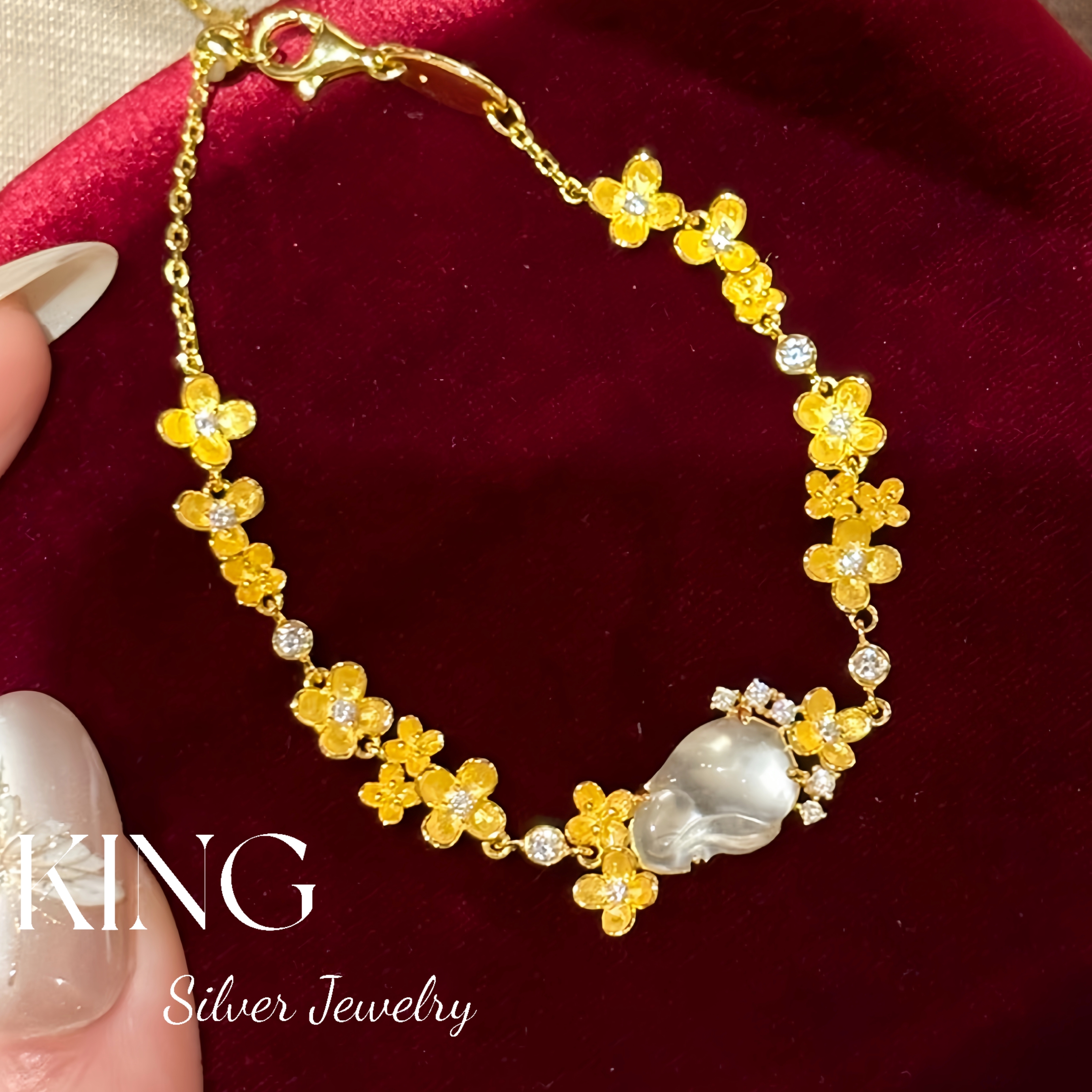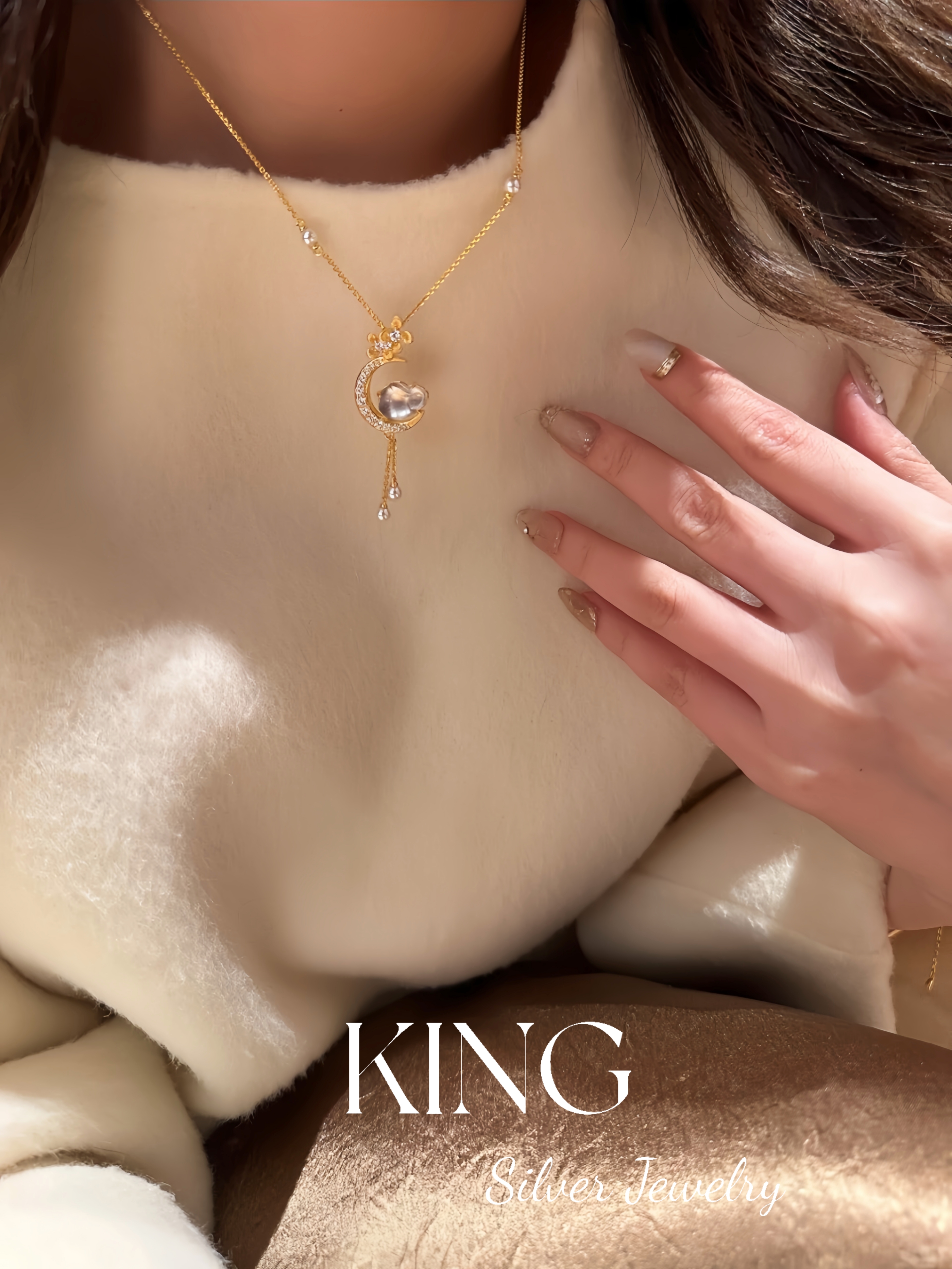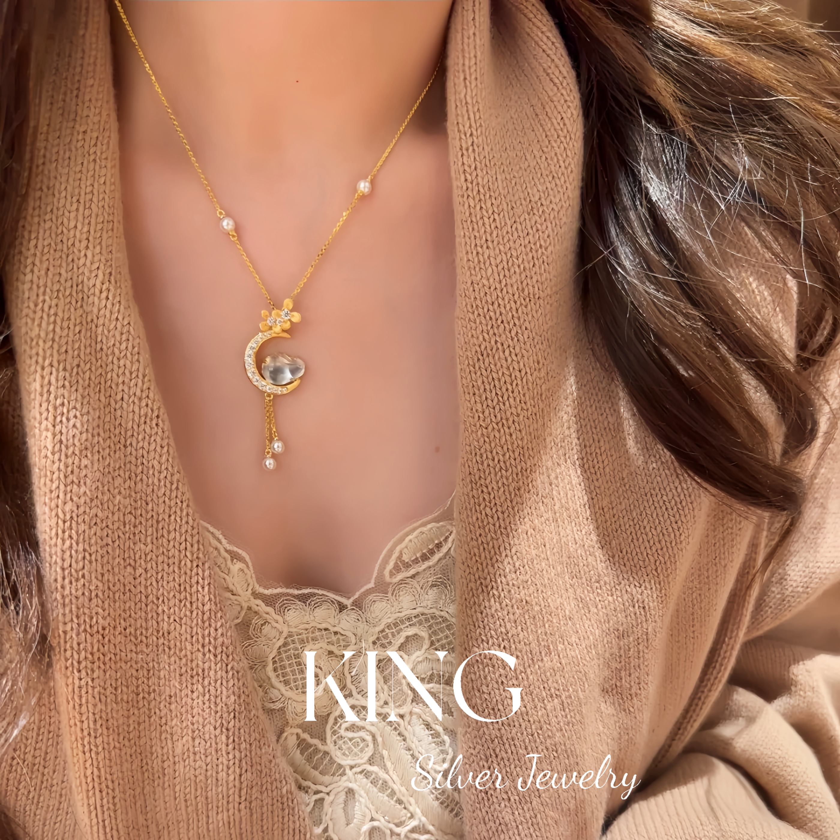 Jade Rabbit Sleeping | king Silver Jewelry Brushed Osmanthus Flowers Shuimo Jade Rabbit Tassel Retro Sterling Silver Necklace Bracelet