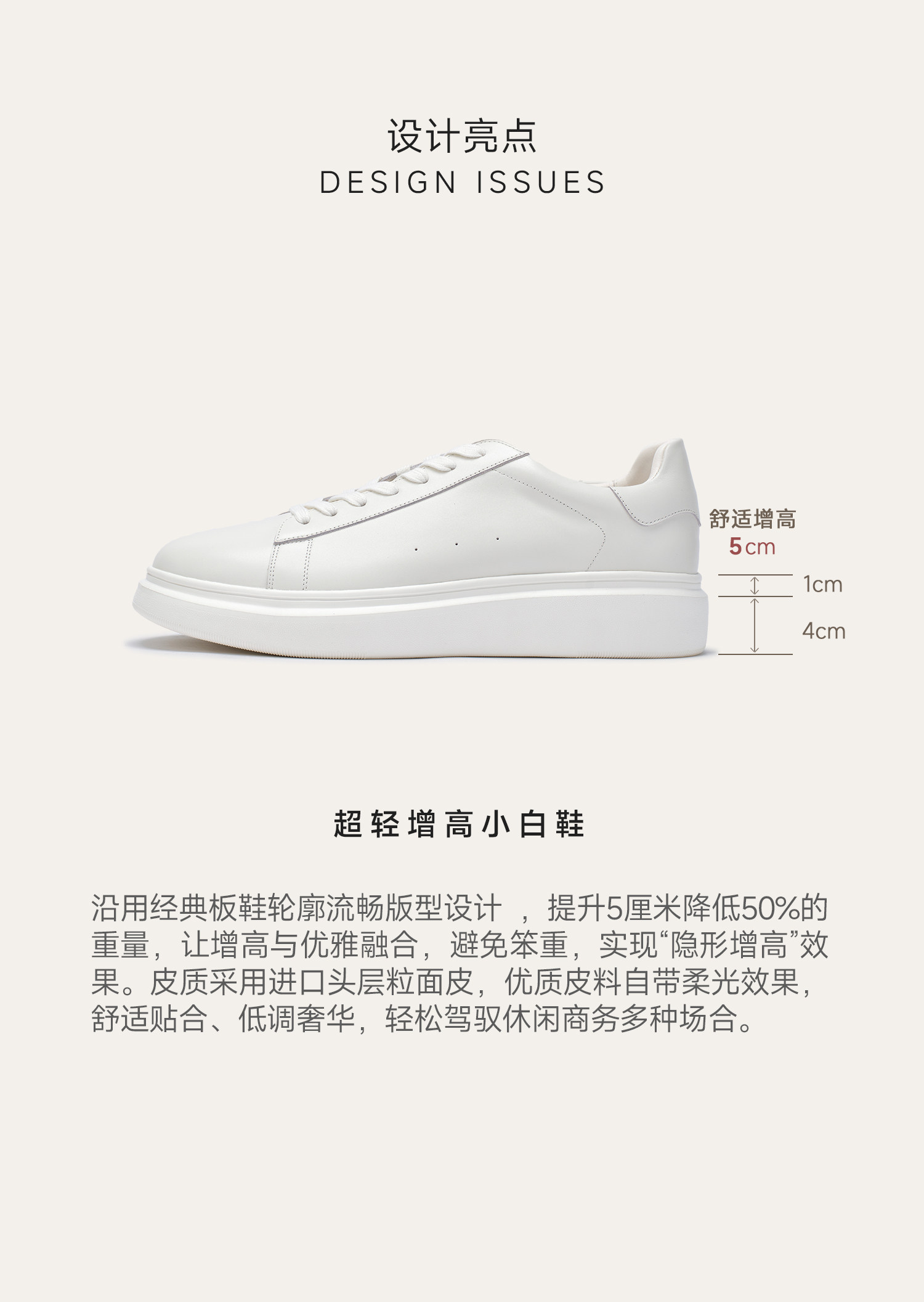 【Lei Jun's Same Style White Sneakers】Chioryn Height-Increasing Lightweight Sneakers Men's Thick-Soled Casual Shoes