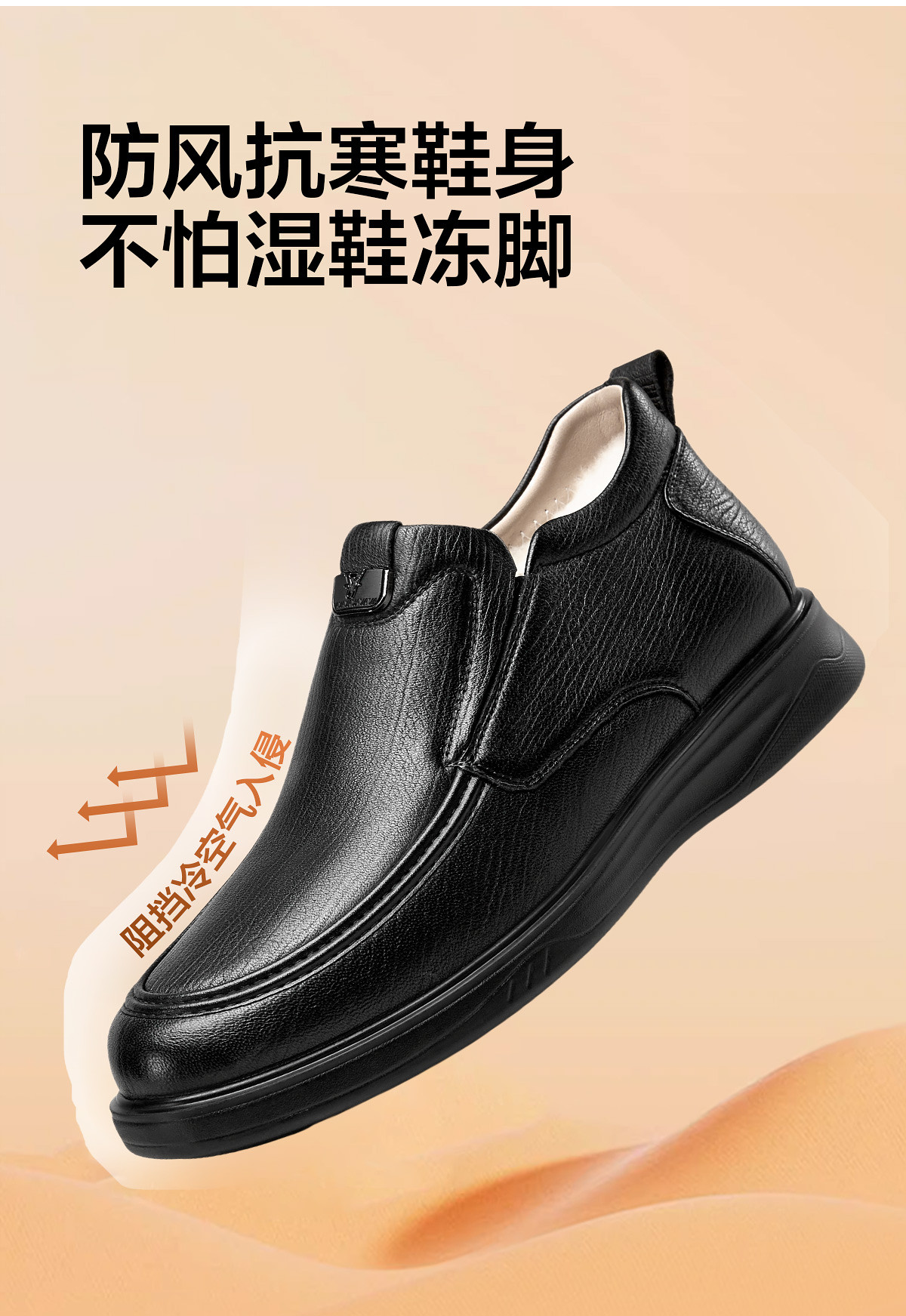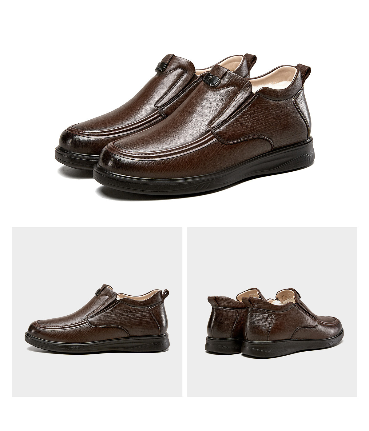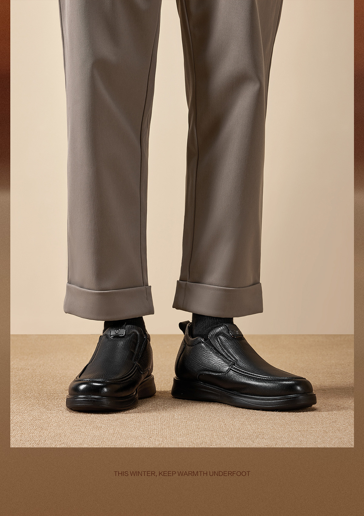 Yierkan Men's Shoes 2025 New Winter Genuine Leather Fleece-Lined Thickened Warm Leather Shoes for Middle-Aged and Elderly Men, Dad's Cotton Shoes