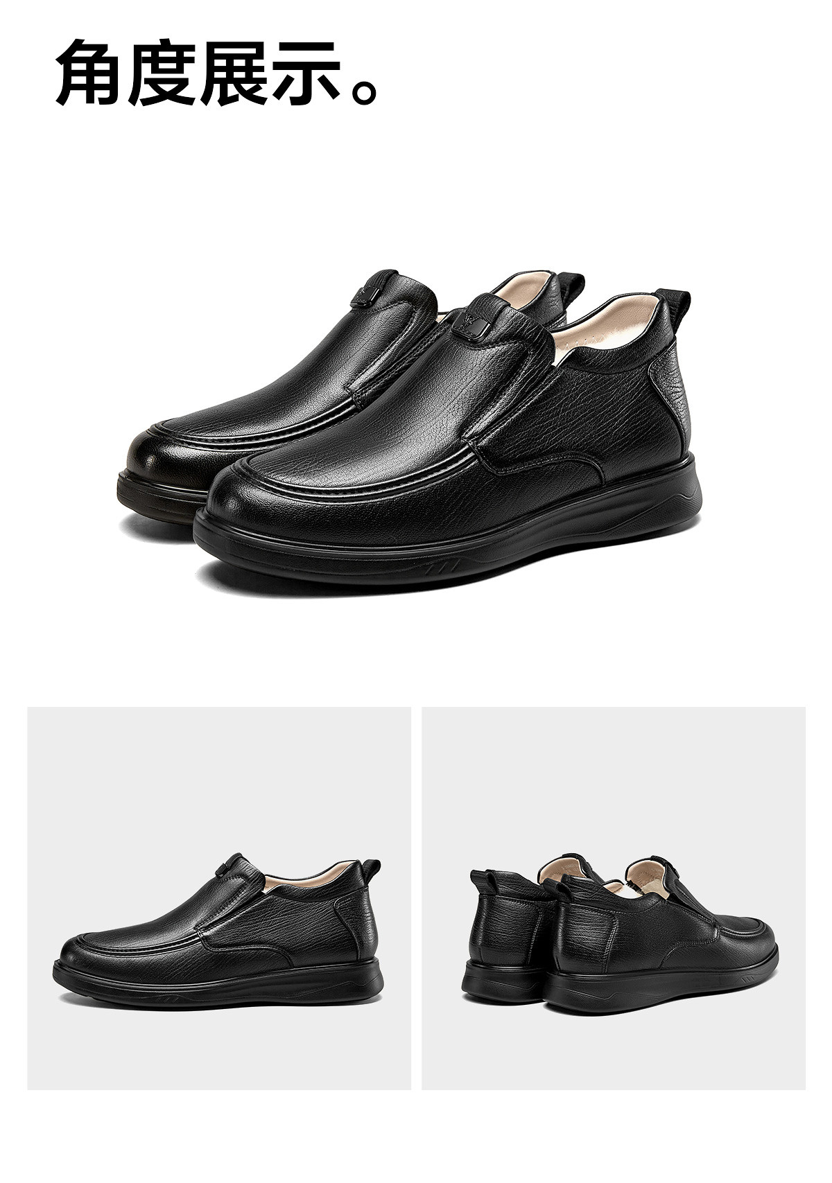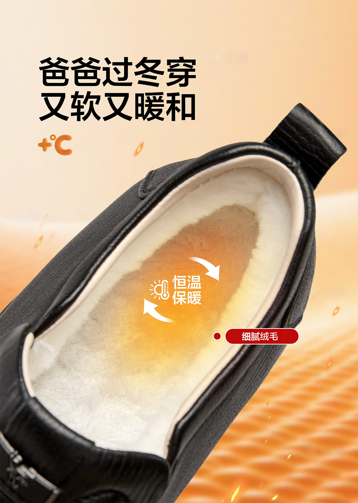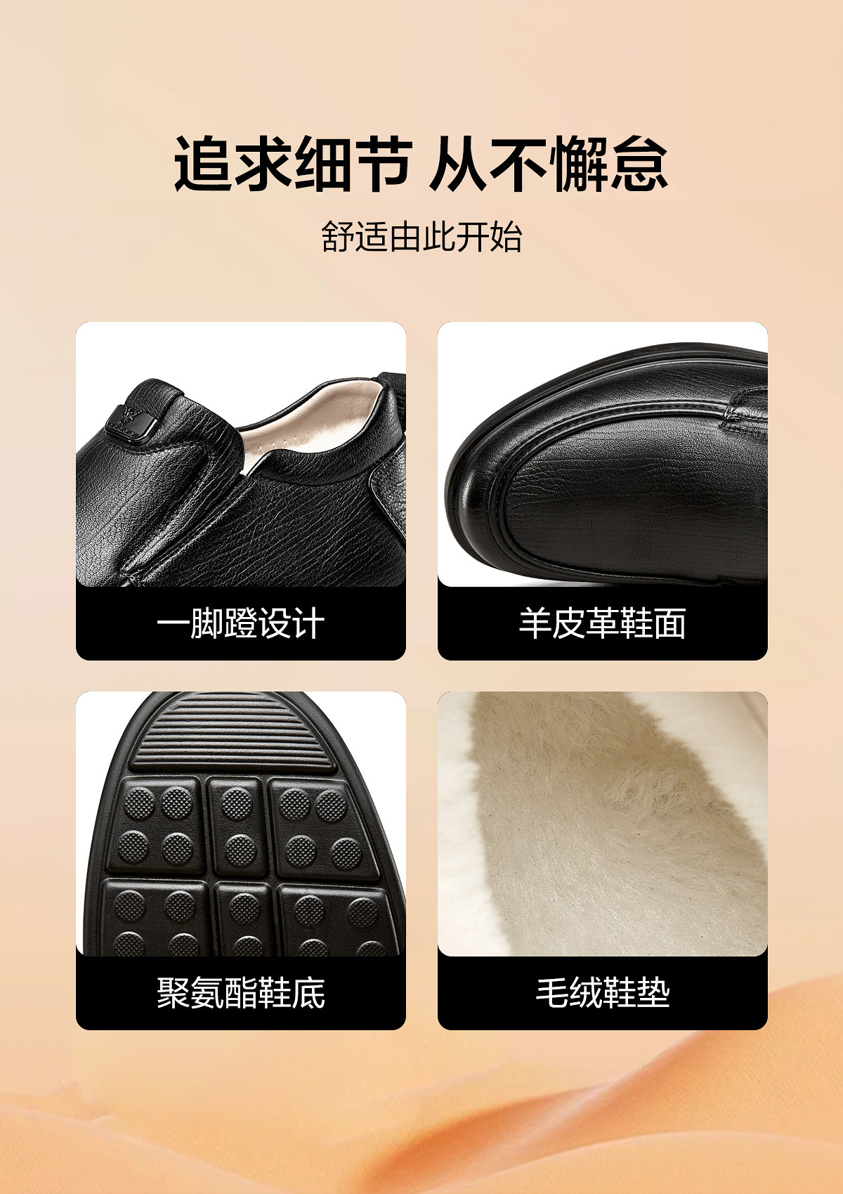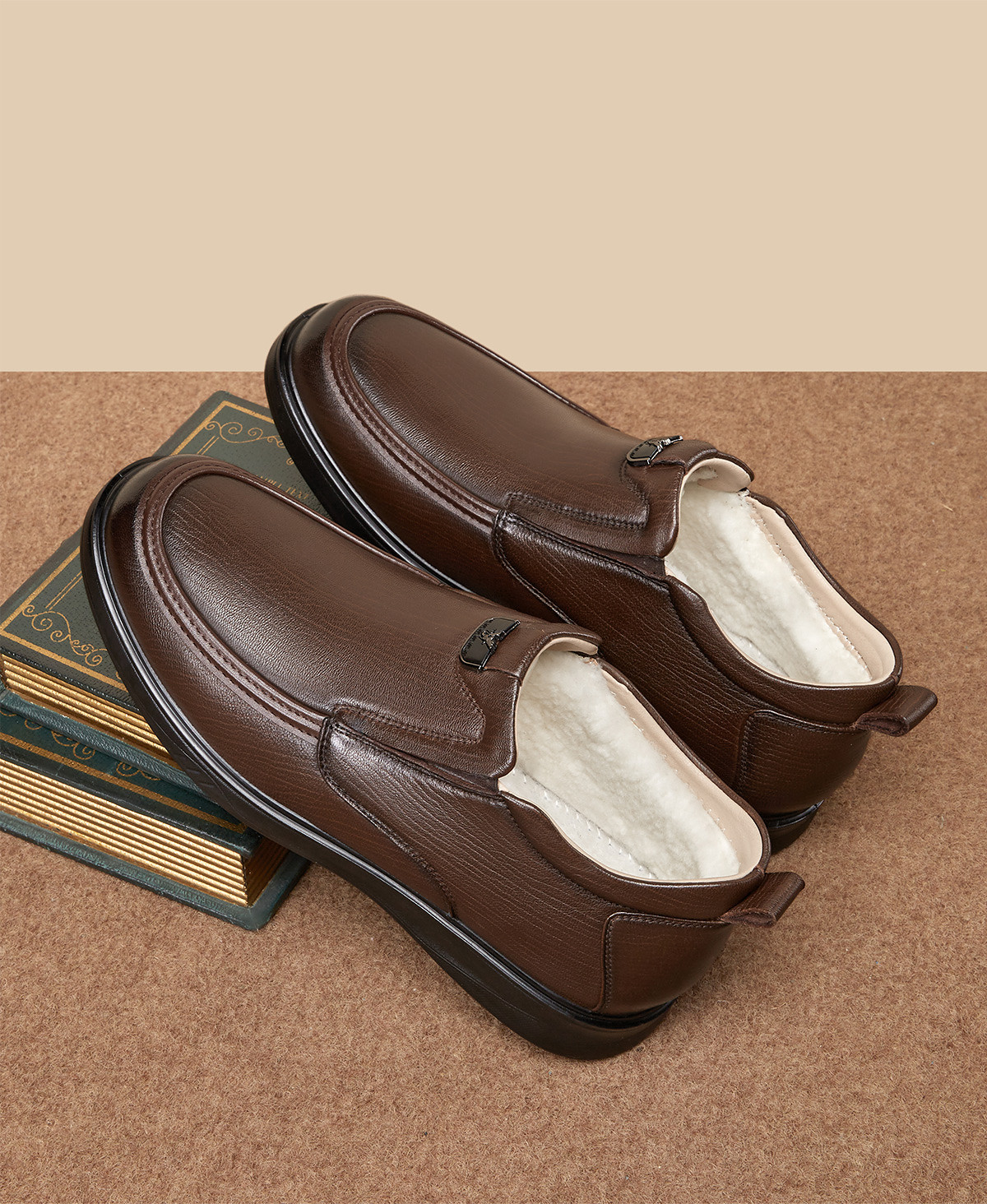 Yierkan Men's Shoes 2025 New Winter Genuine Leather Fleece-Lined Thickened Warm Leather Shoes for Middle-Aged and Elderly Men, Dad's Cotton Shoes