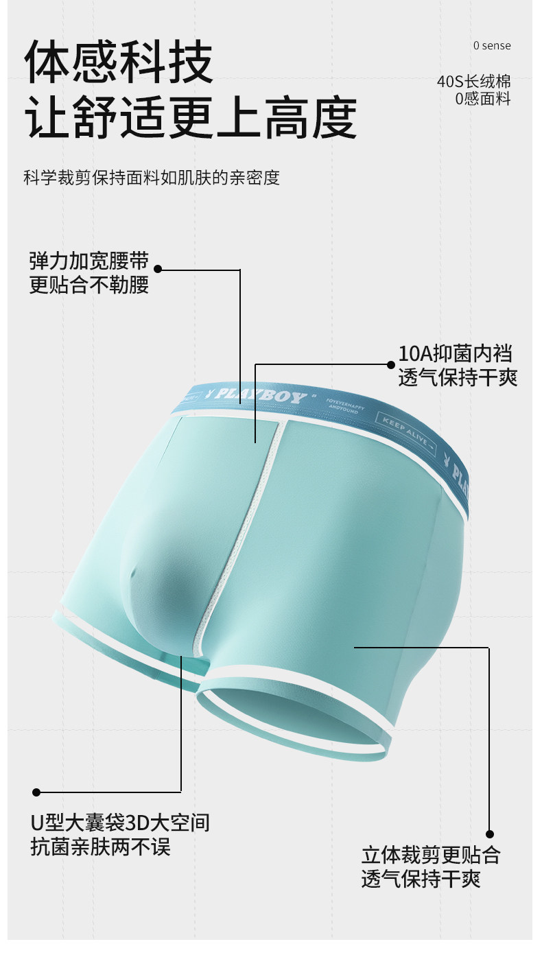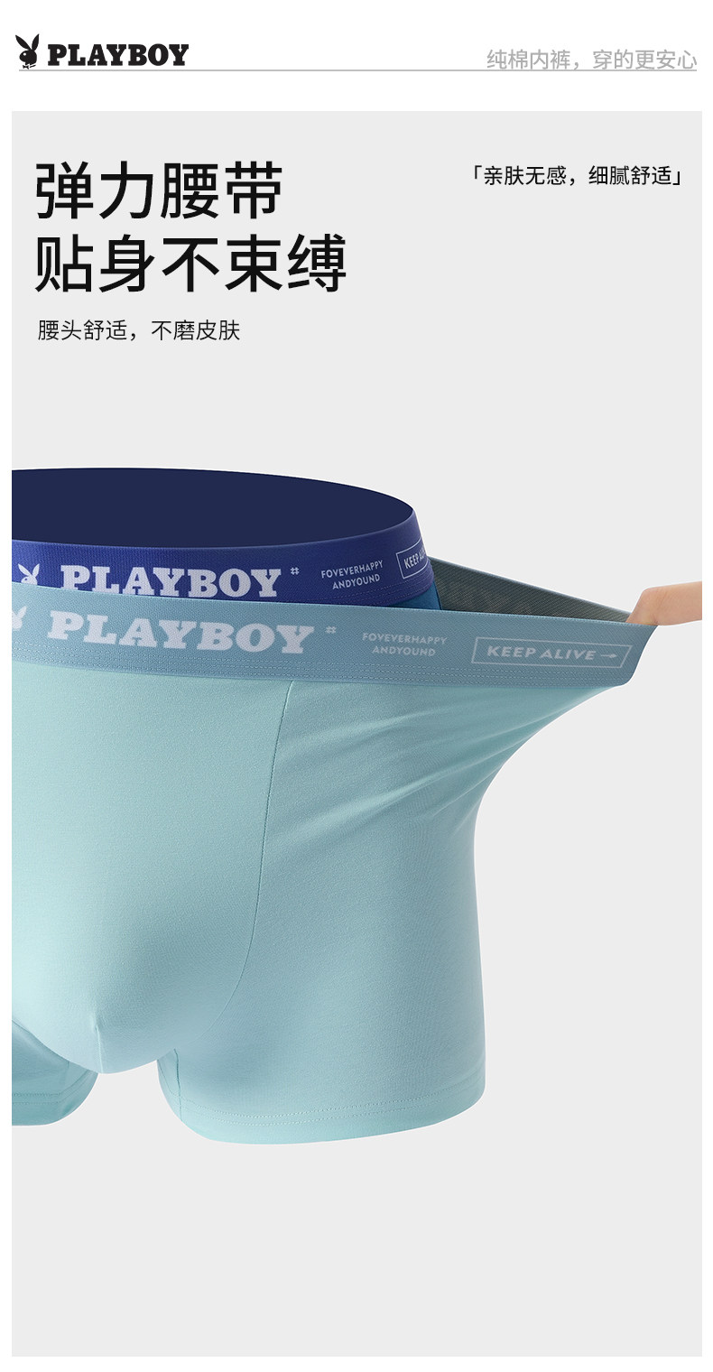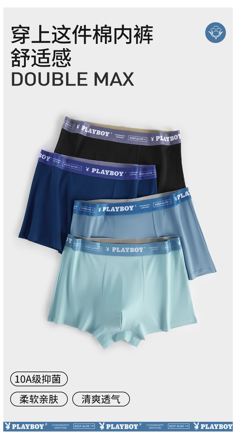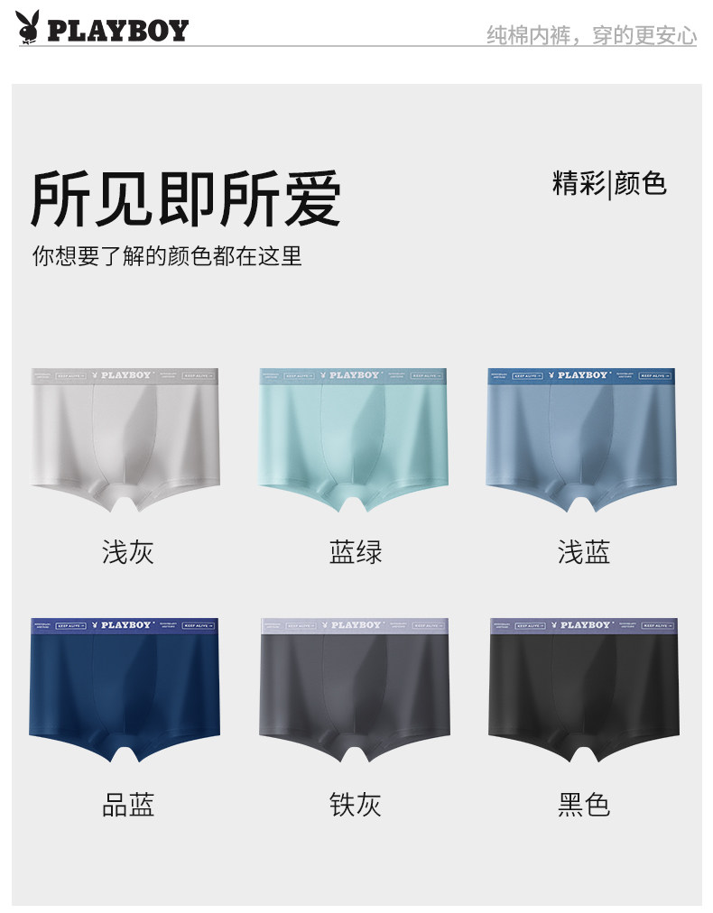 Playboy Men's Underwear Pure Cotton Boxer Shorts Men's Cotton Boxer Briefs Breathable Antibacterial Large Size
