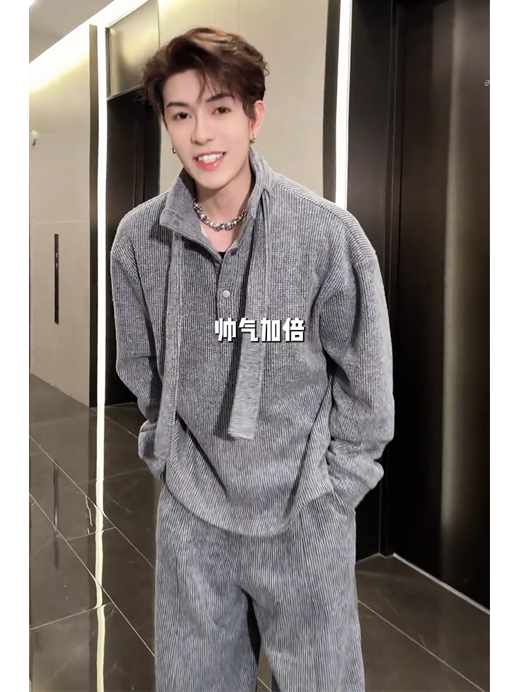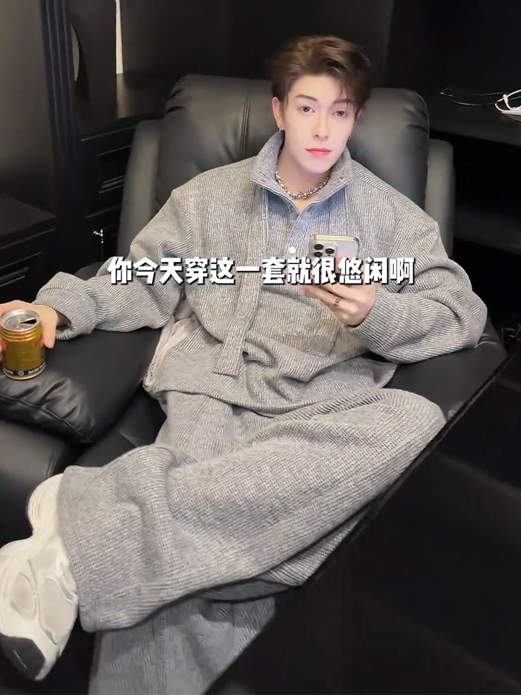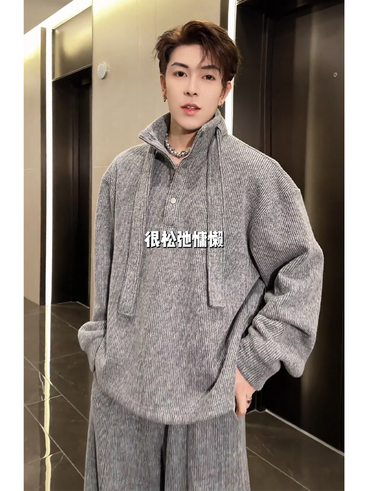 Lazy and Relaxed Knitted Sweatshirt Suit for Men, Autumn High-End Style Outfit, Complete Set of Top and Casual Pants