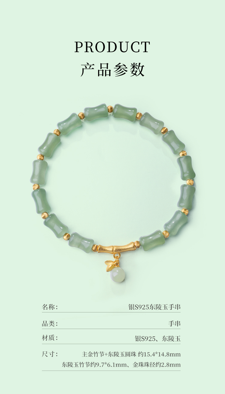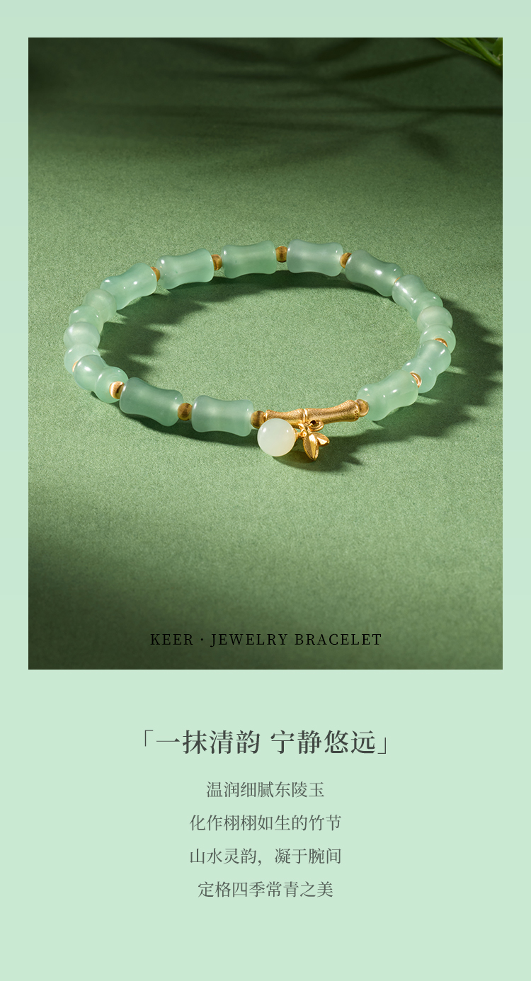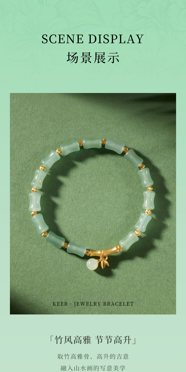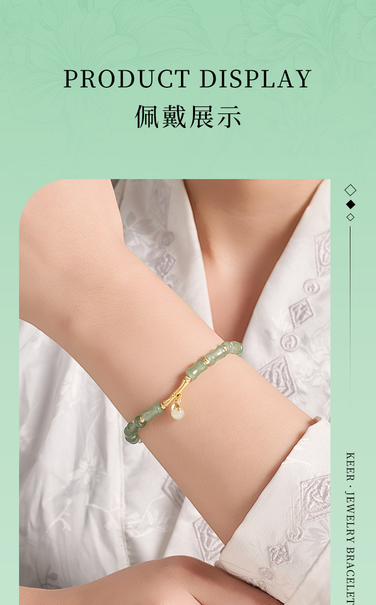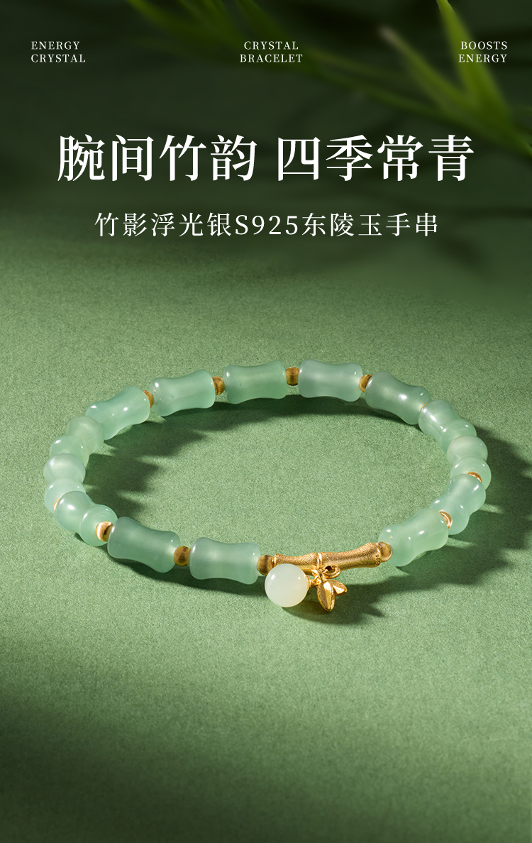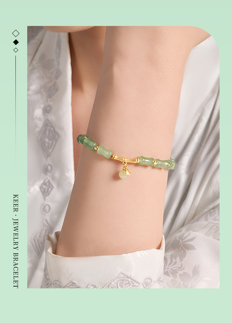 Chiba Jewelry Silver S925 Aventurine Bracelet Bamboo Shadow Floating Light Elegant Ancient Style Layered Jewelry Gift for Girlfriend