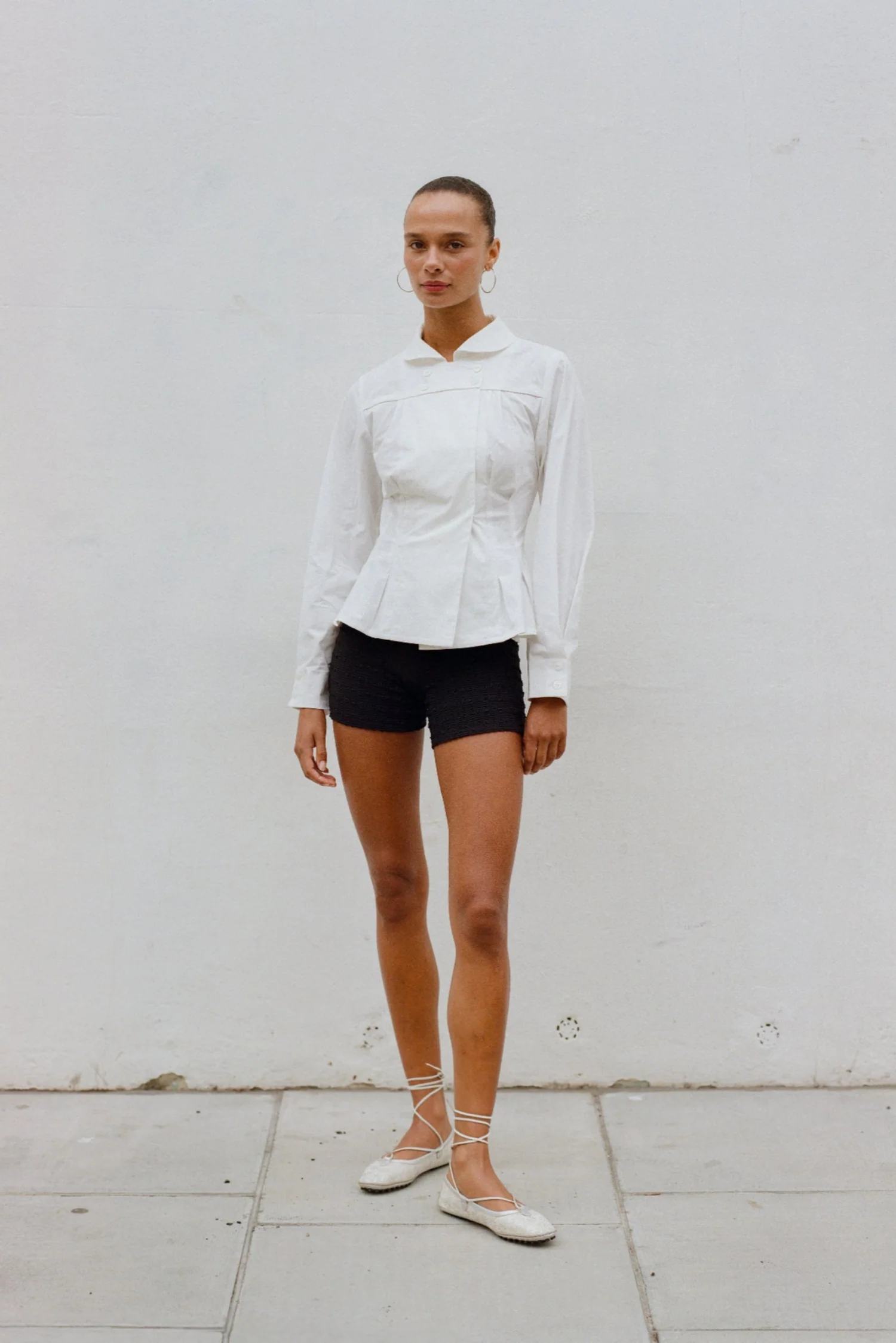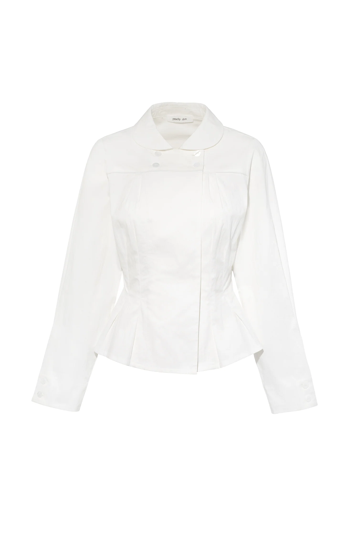 Peachydon Doll Collar White Shirt Long Sleeve Stunning Waist-Cinching Slim-Fit Stretchy Top Shirt